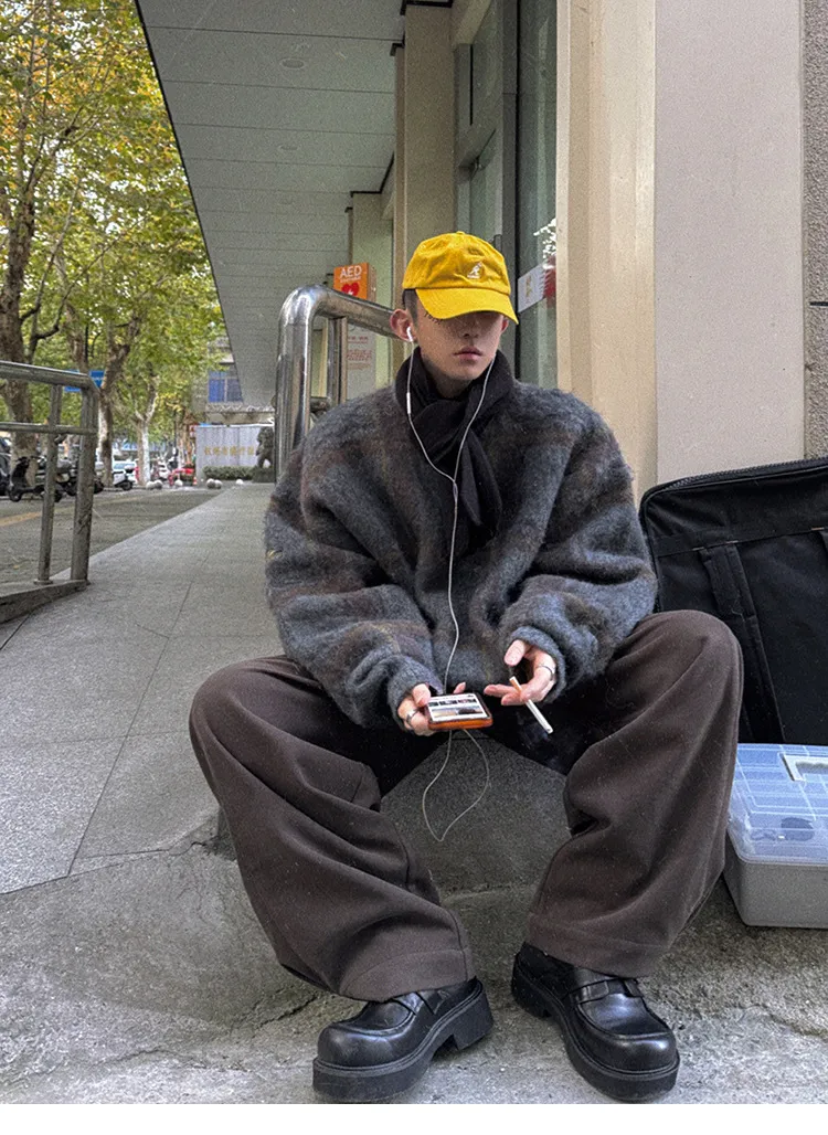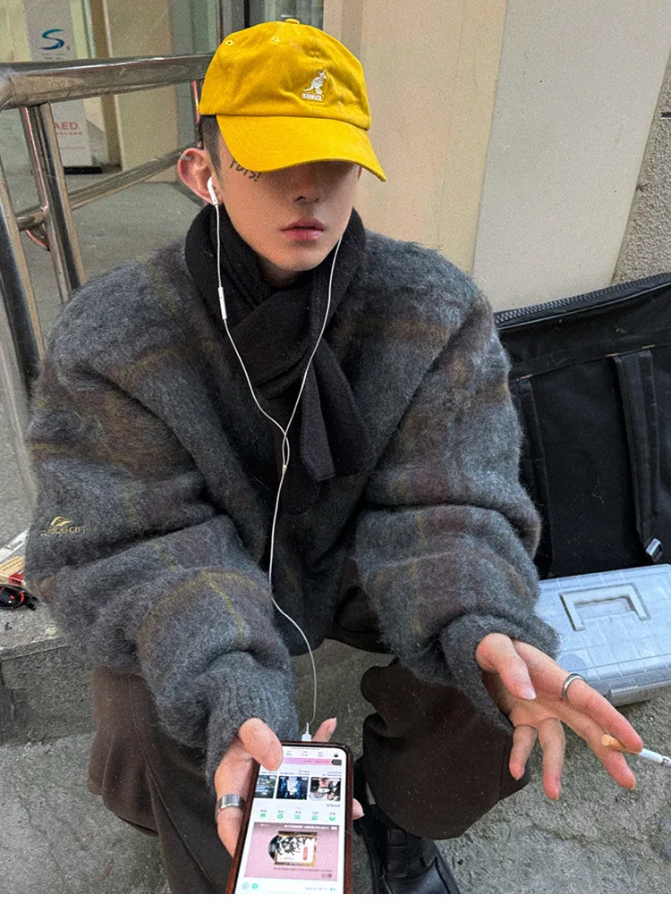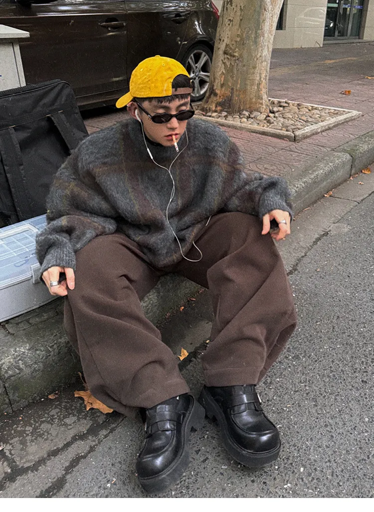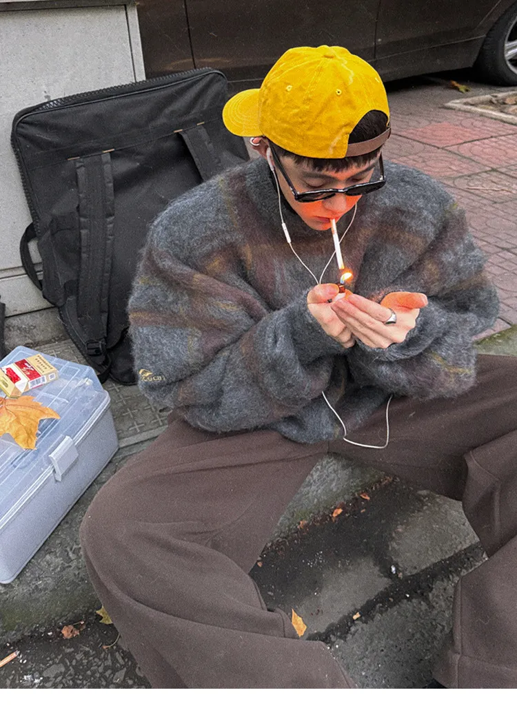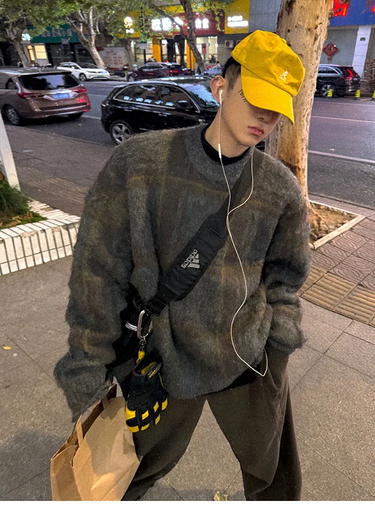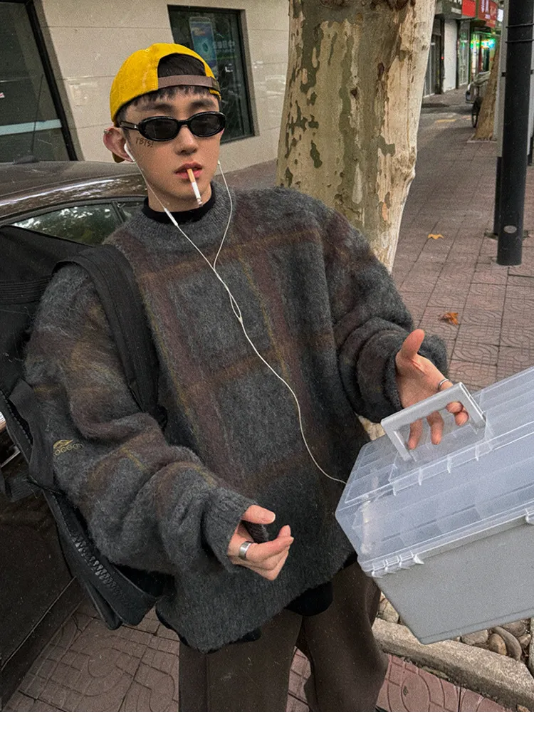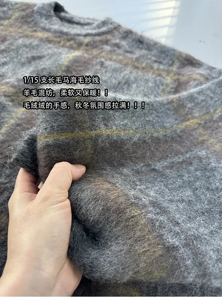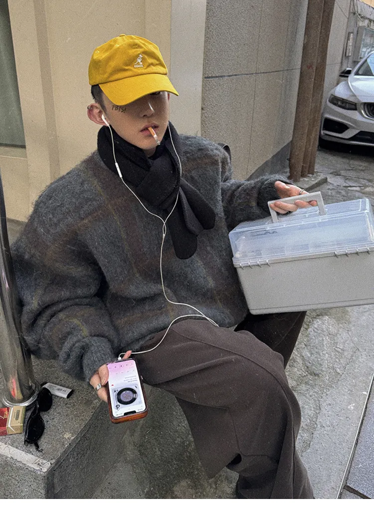 AUROCEAN 馬海毛 格紋 毛衣(灰咖色)