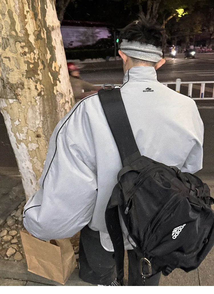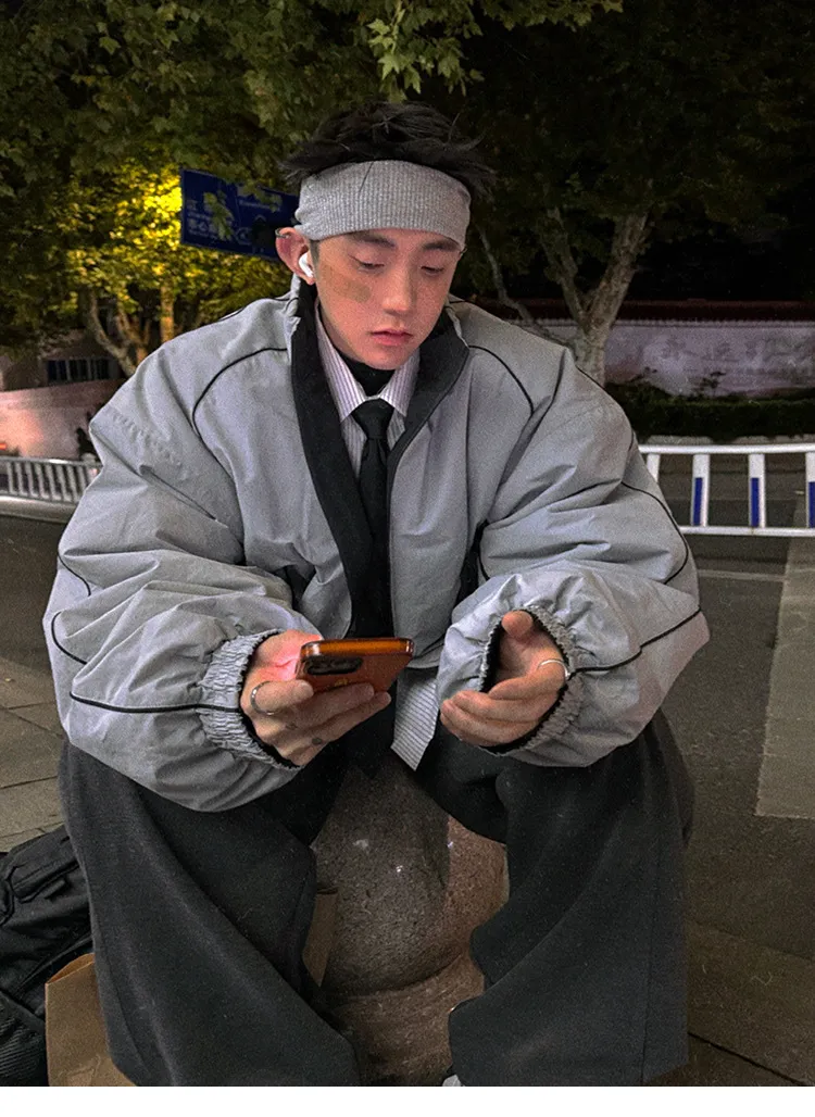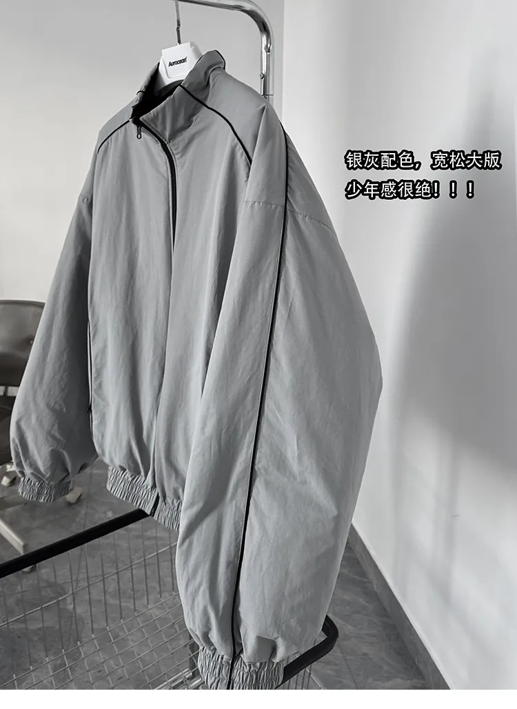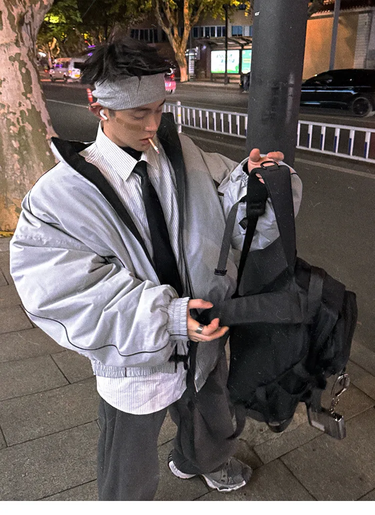 AUROCEAN 復古流線 雙面穿 廓形 外套(黑灰)
