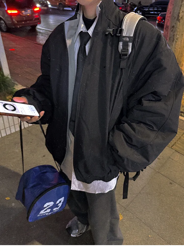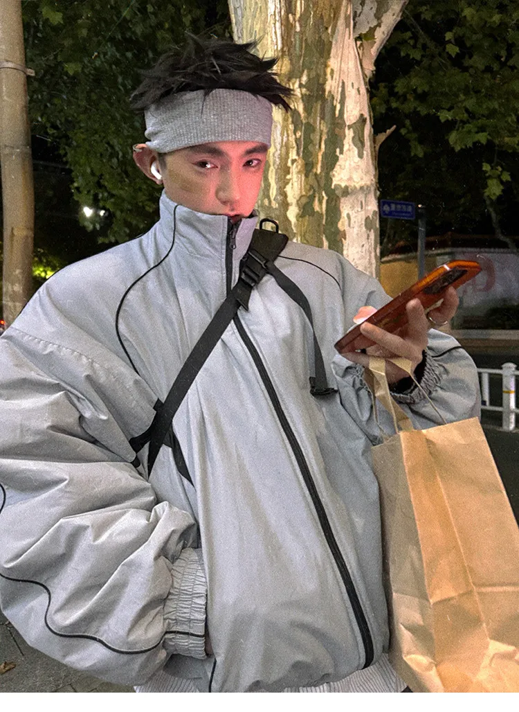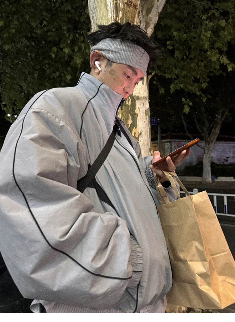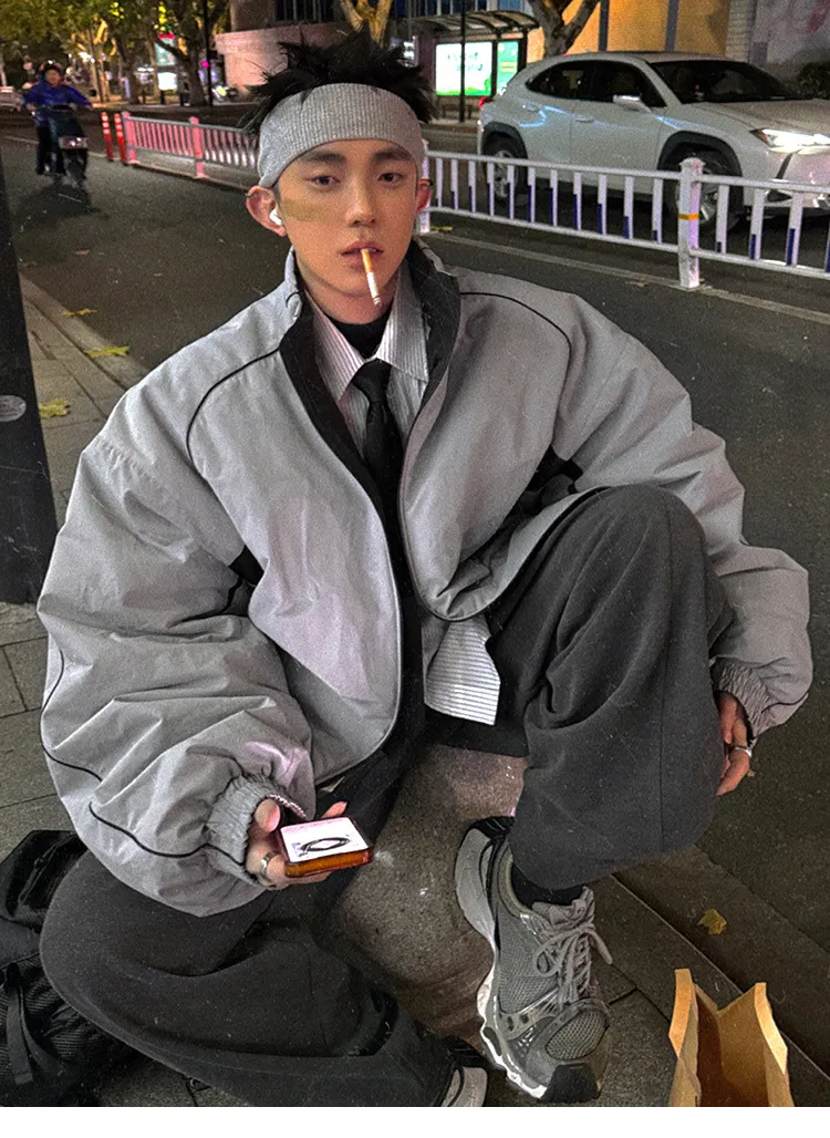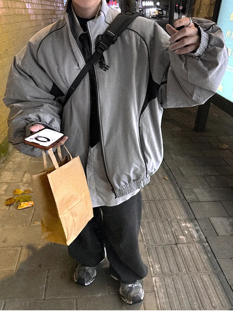 AUROCEAN 復古流線 雙面穿 廓形 外套(黑灰)