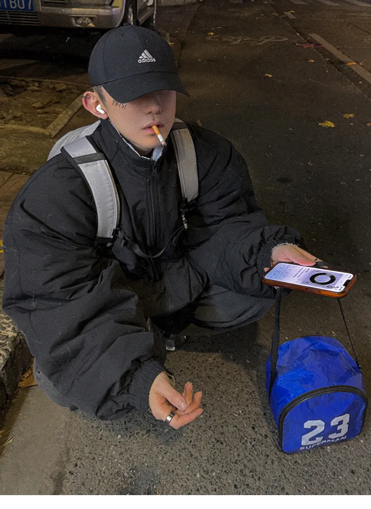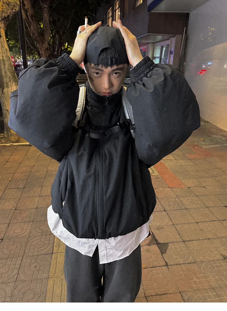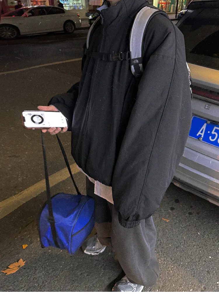 AUROCEAN 寬短 連帽 重磅 外套(水洗黑)