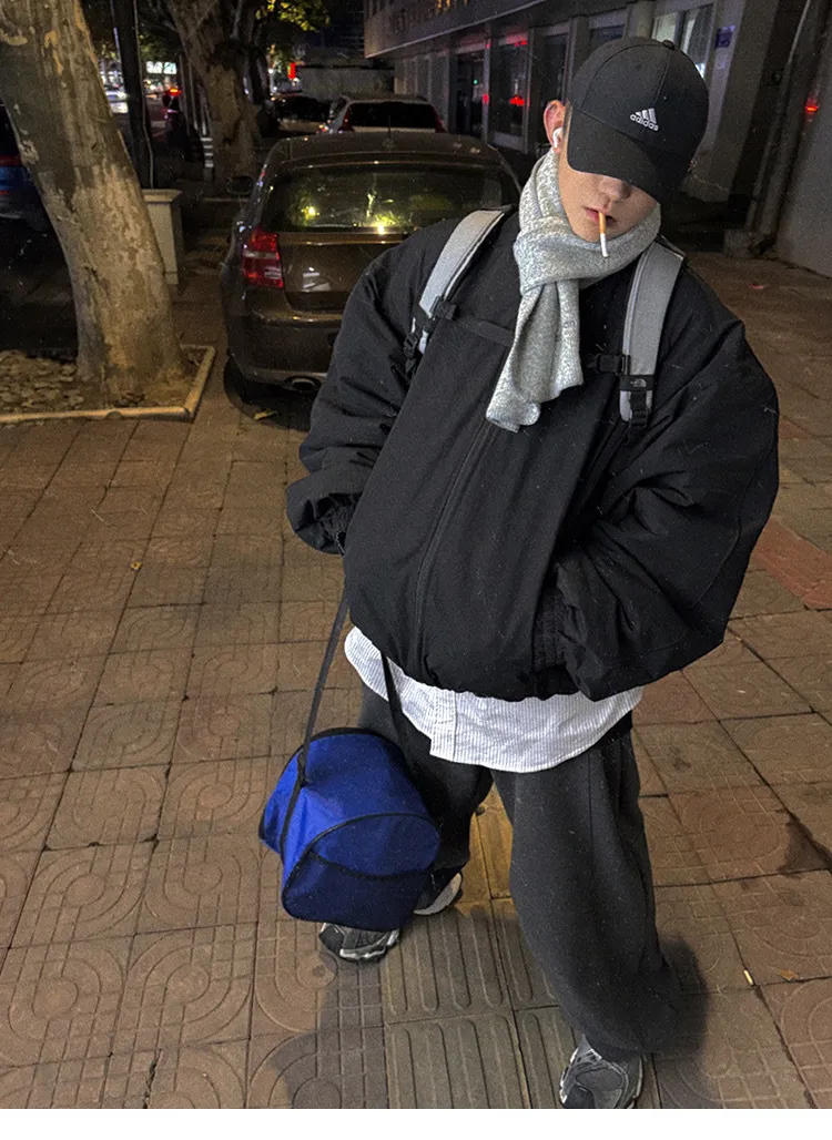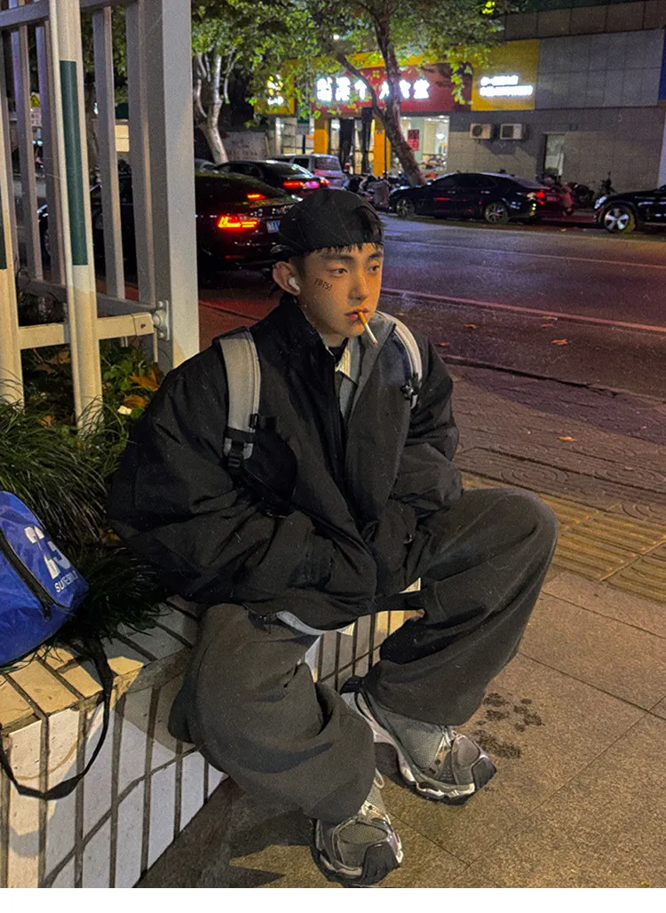 AUROCEAN 加厚磨毛 學院 收褶堆疊 西裝褲 (深灰)