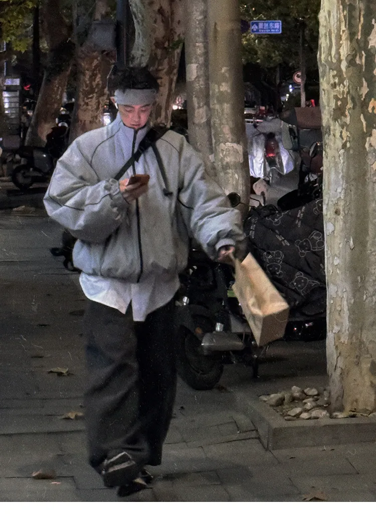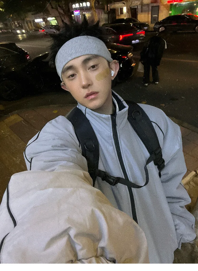 AUROCEAN 寬短 連帽 重磅 外套(灰白)