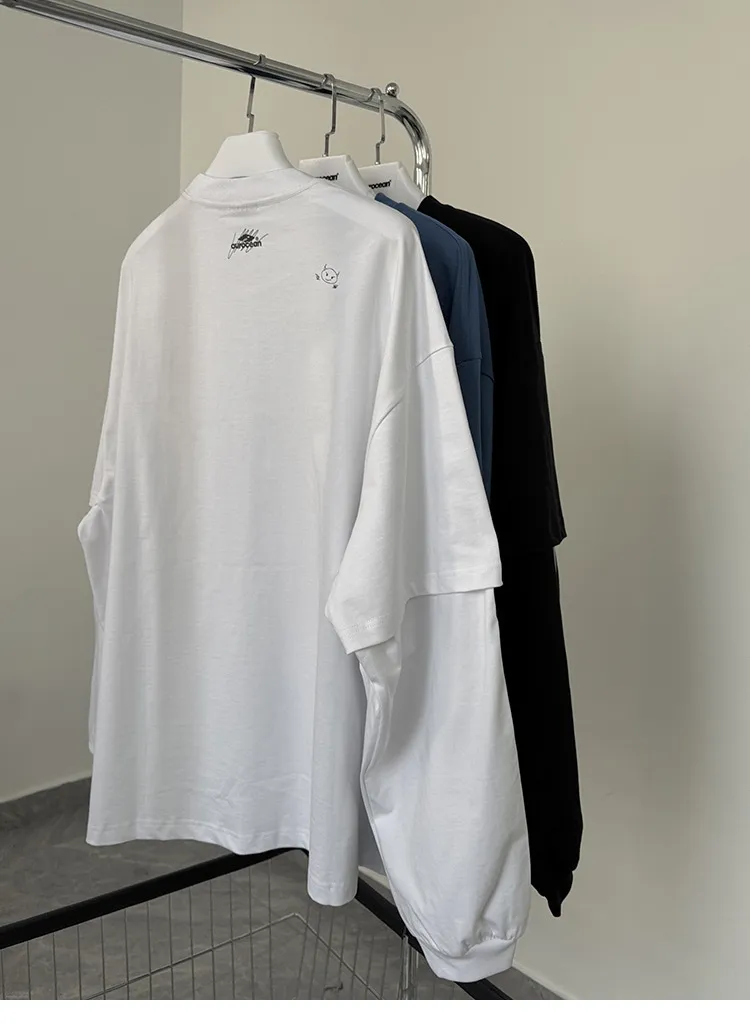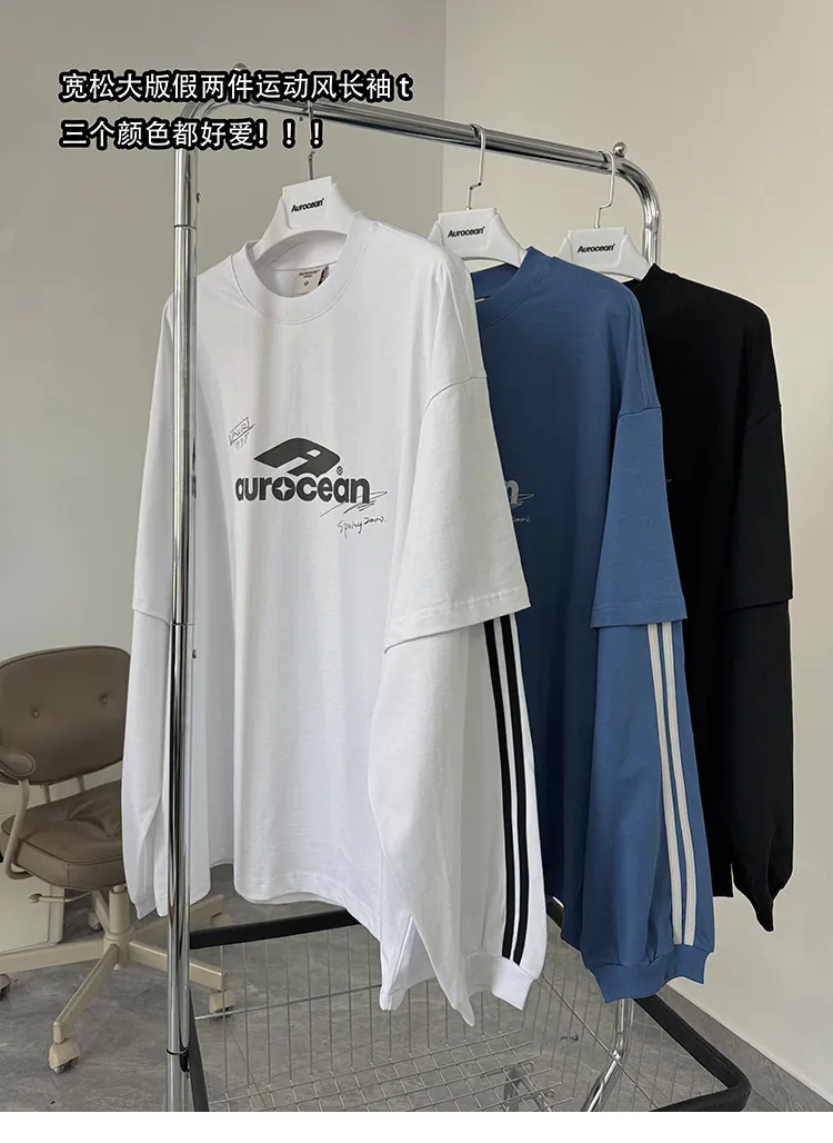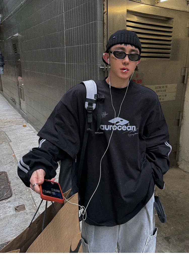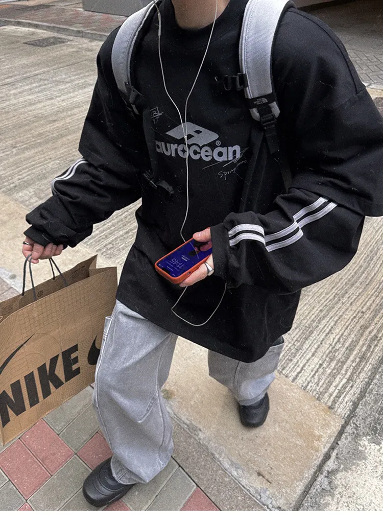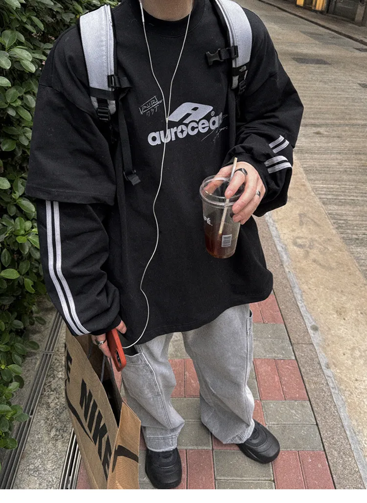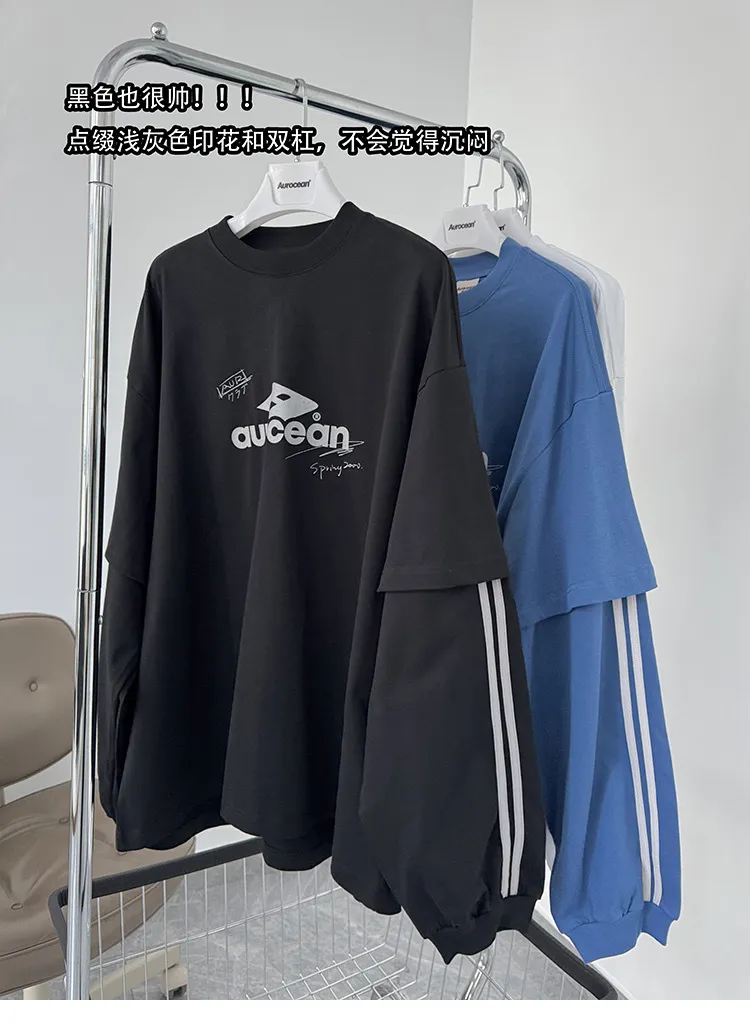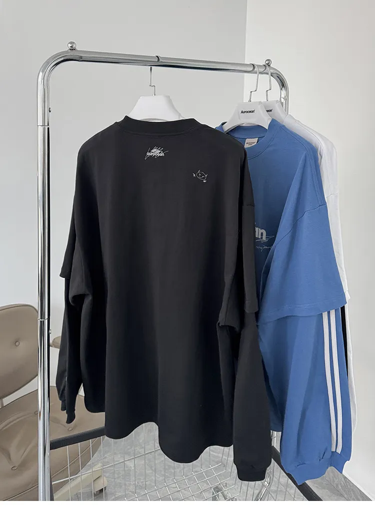 AUROCEAN 假兩件 手繪塗鴉 長袖 (黑色)
