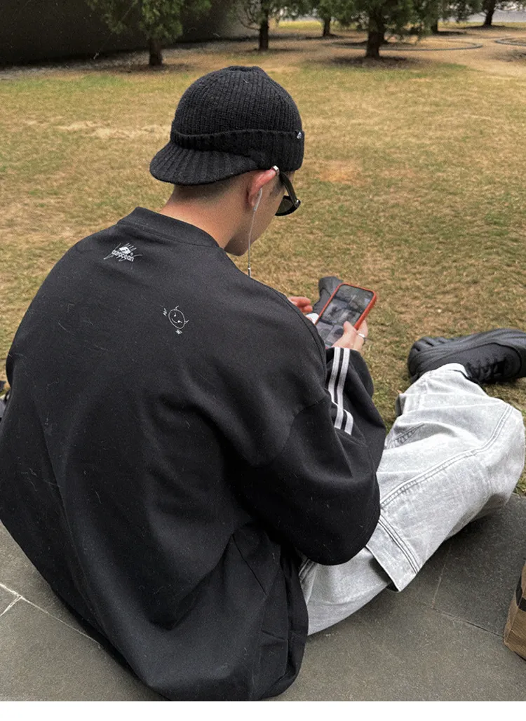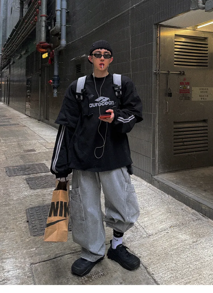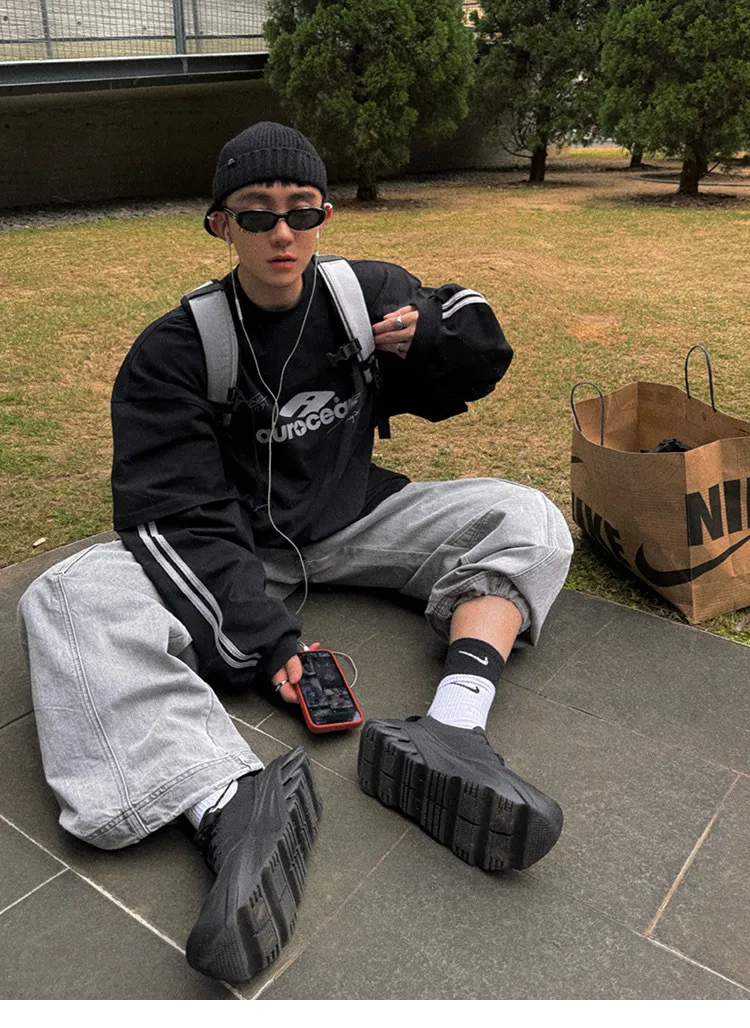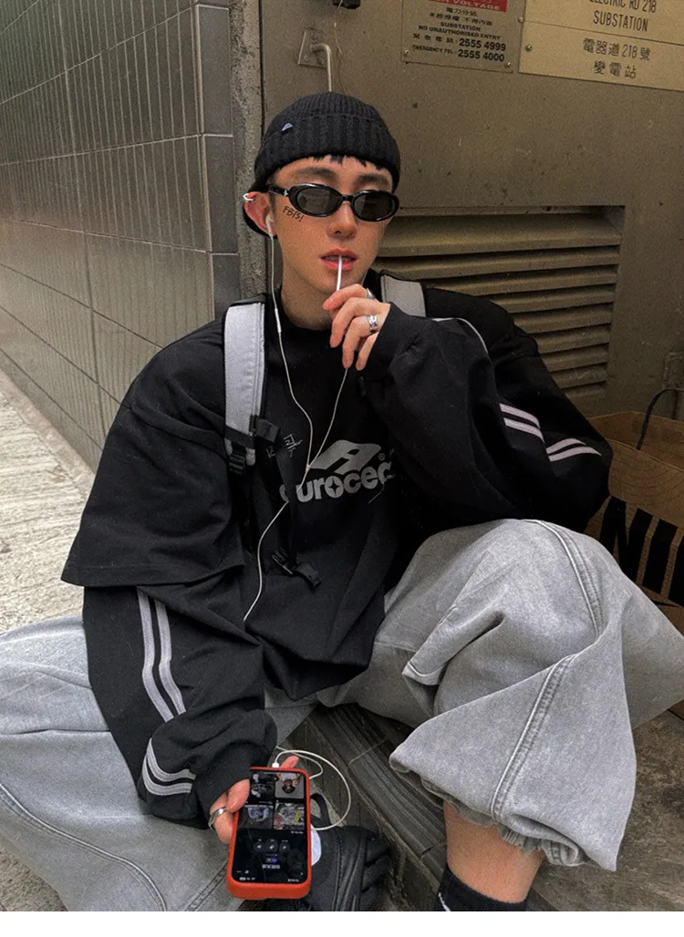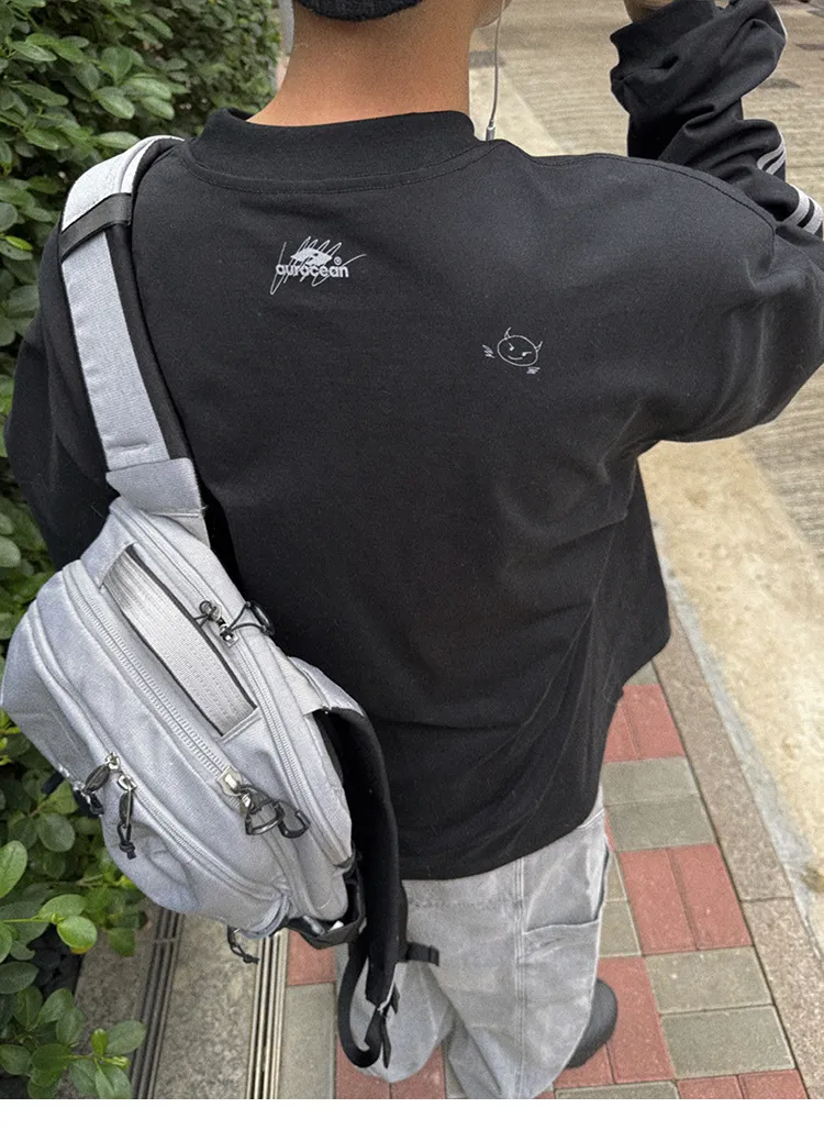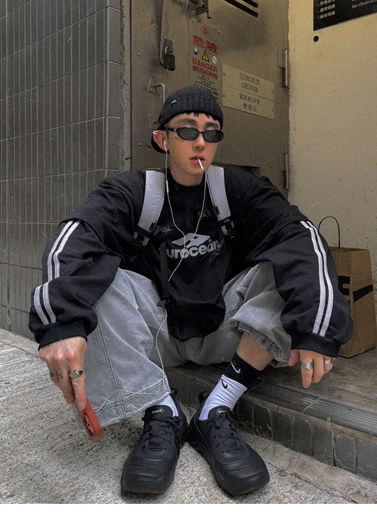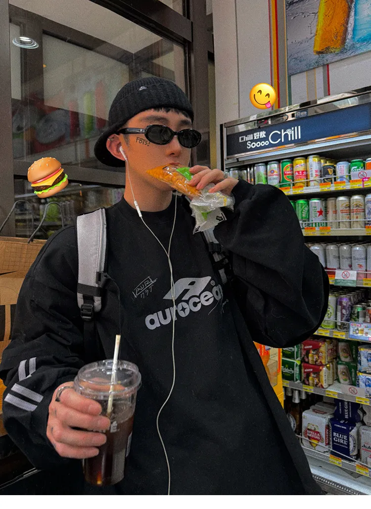 AUROCEAN 假兩件 手繪塗鴉 長袖 (黑色)