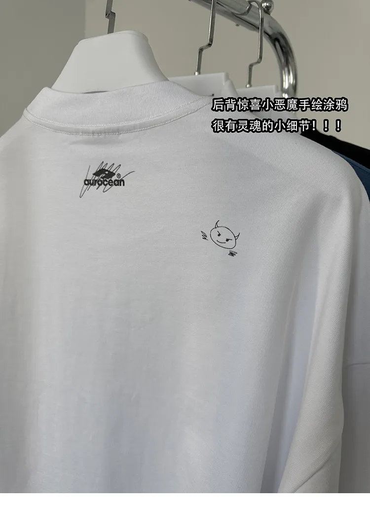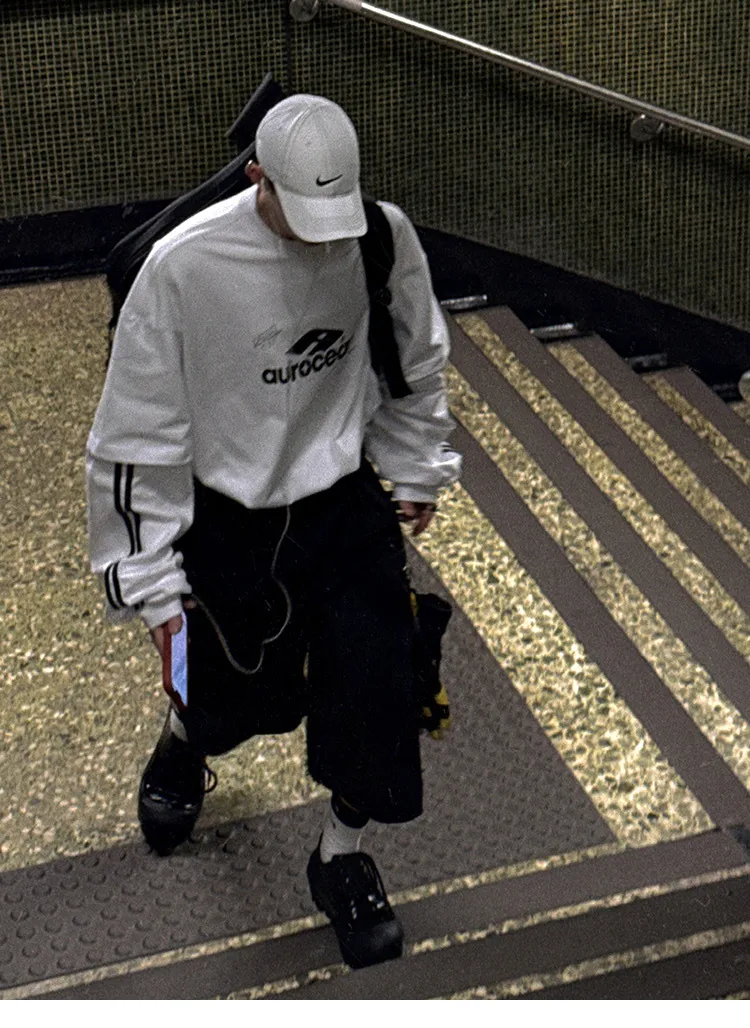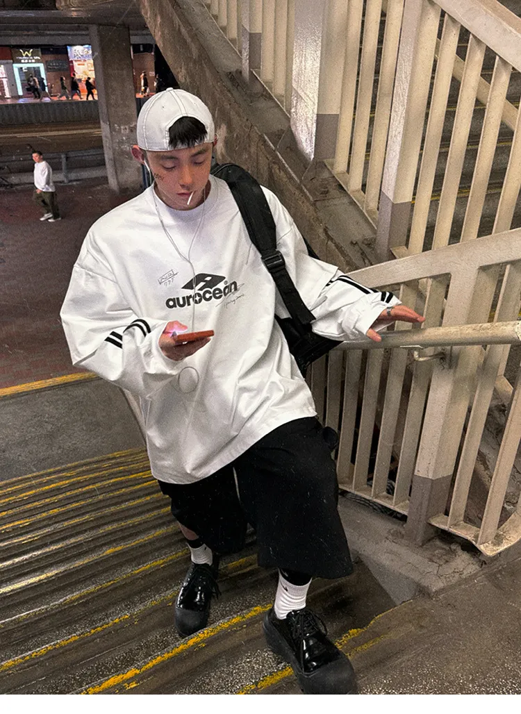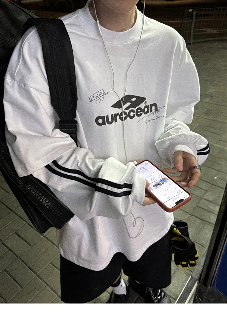 AUROCEAN 假兩件 手繪塗鴉 長袖 (白色)