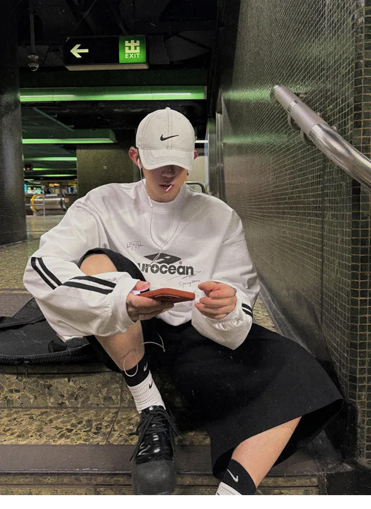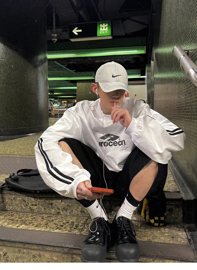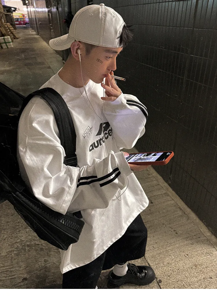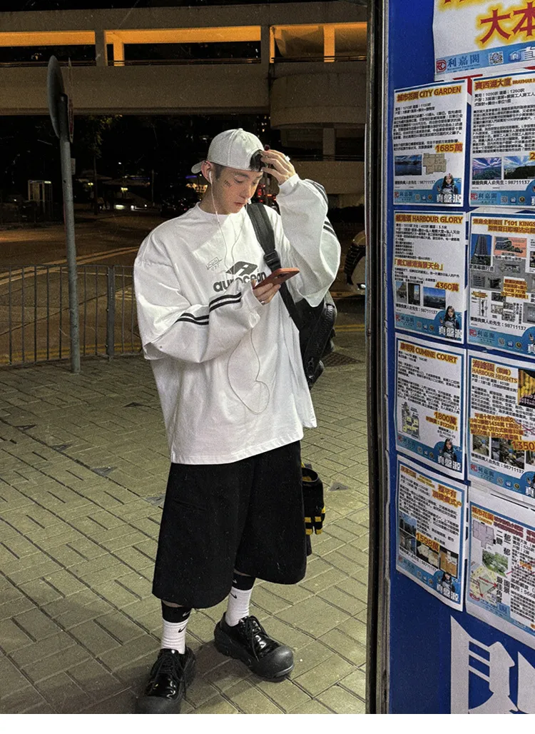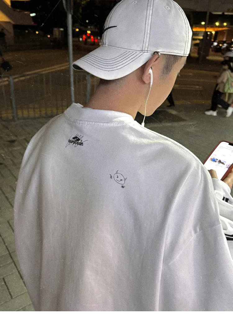 AUROCEAN 假兩件 手繪塗鴉 長袖 (白色)