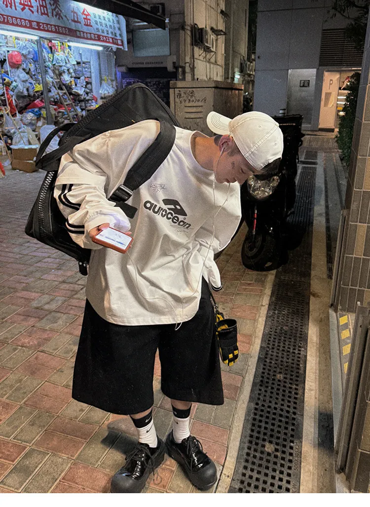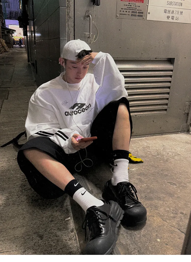 AUROCEAN 假兩件 手繪塗鴉 長袖 (黑色)