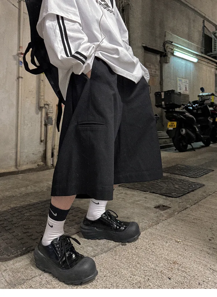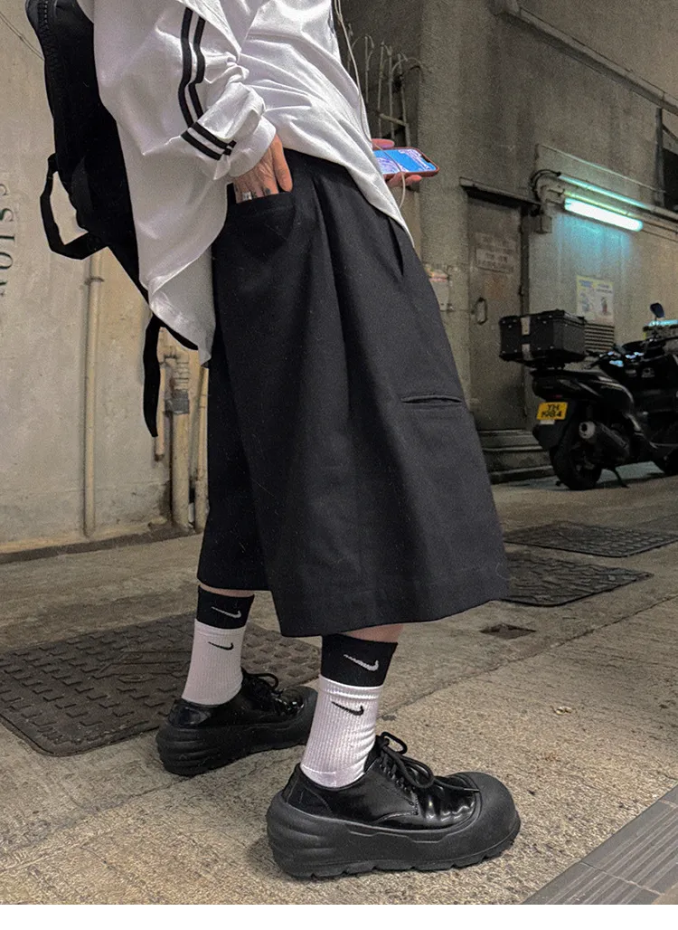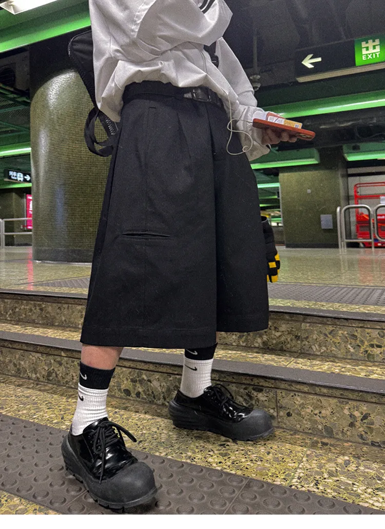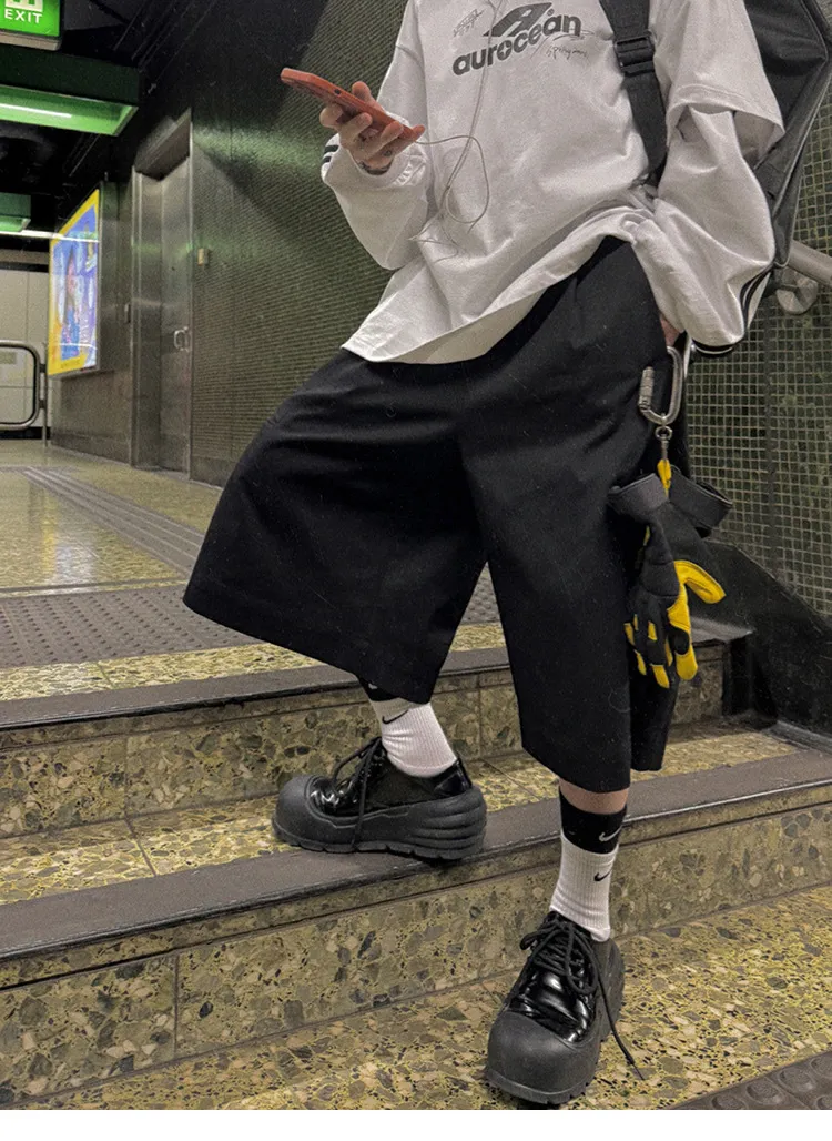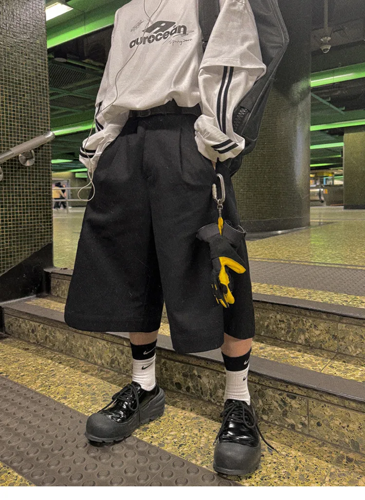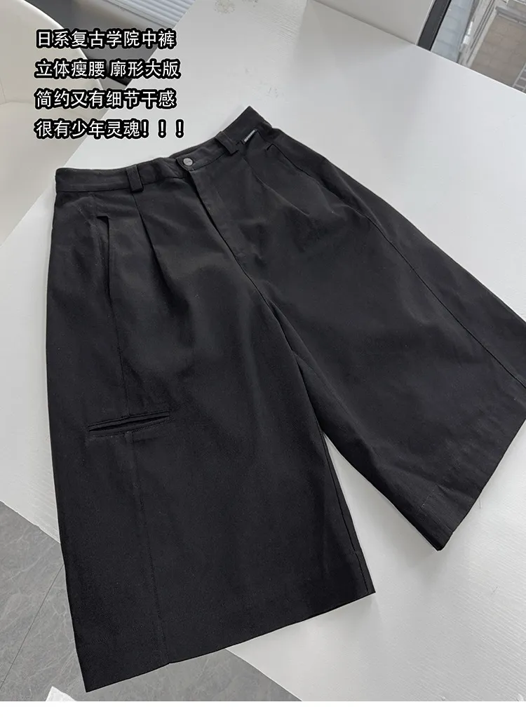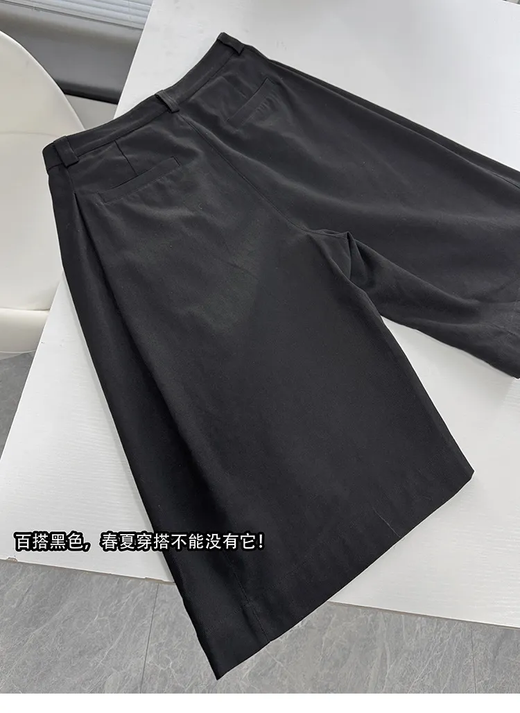 AUROCEAN 廓形 簡約 西裝七分褲 短褲(黑色)