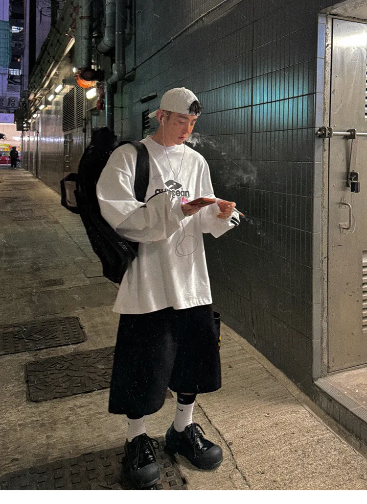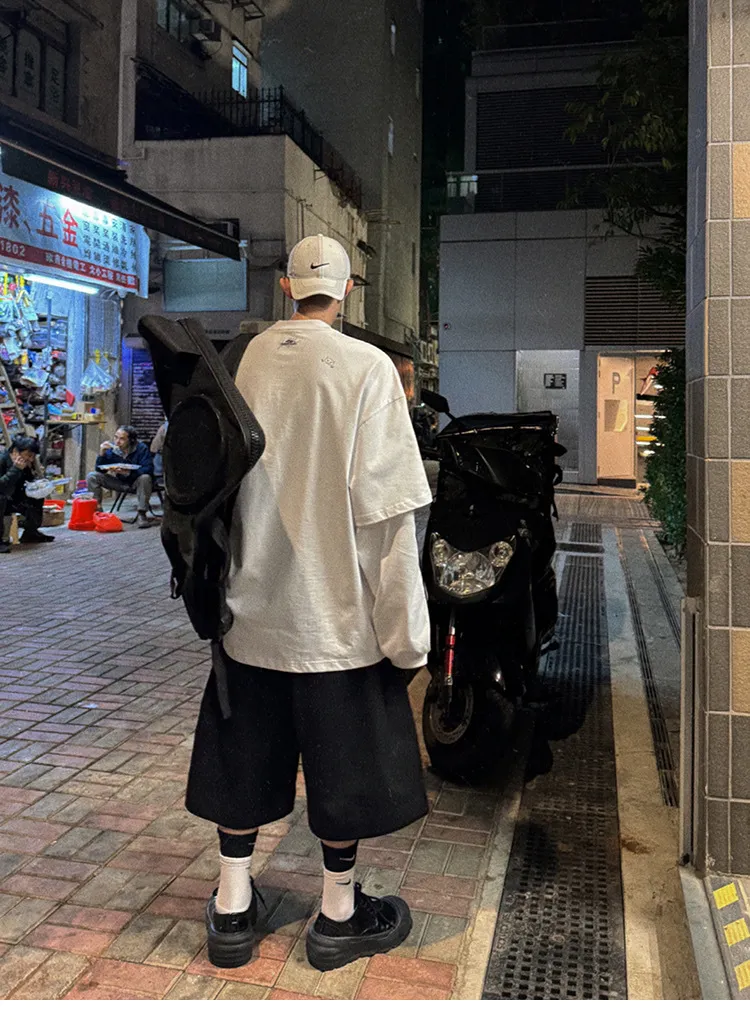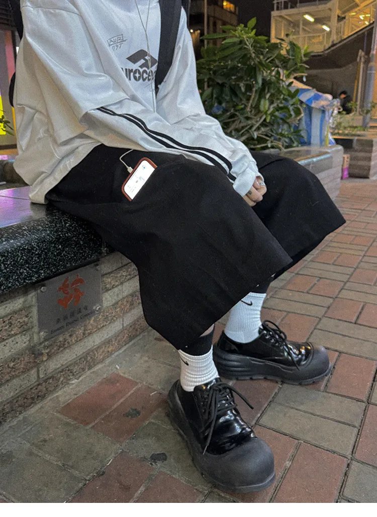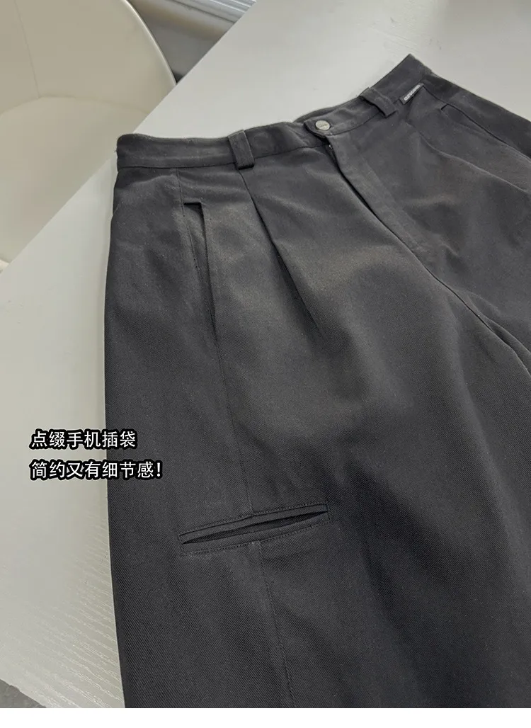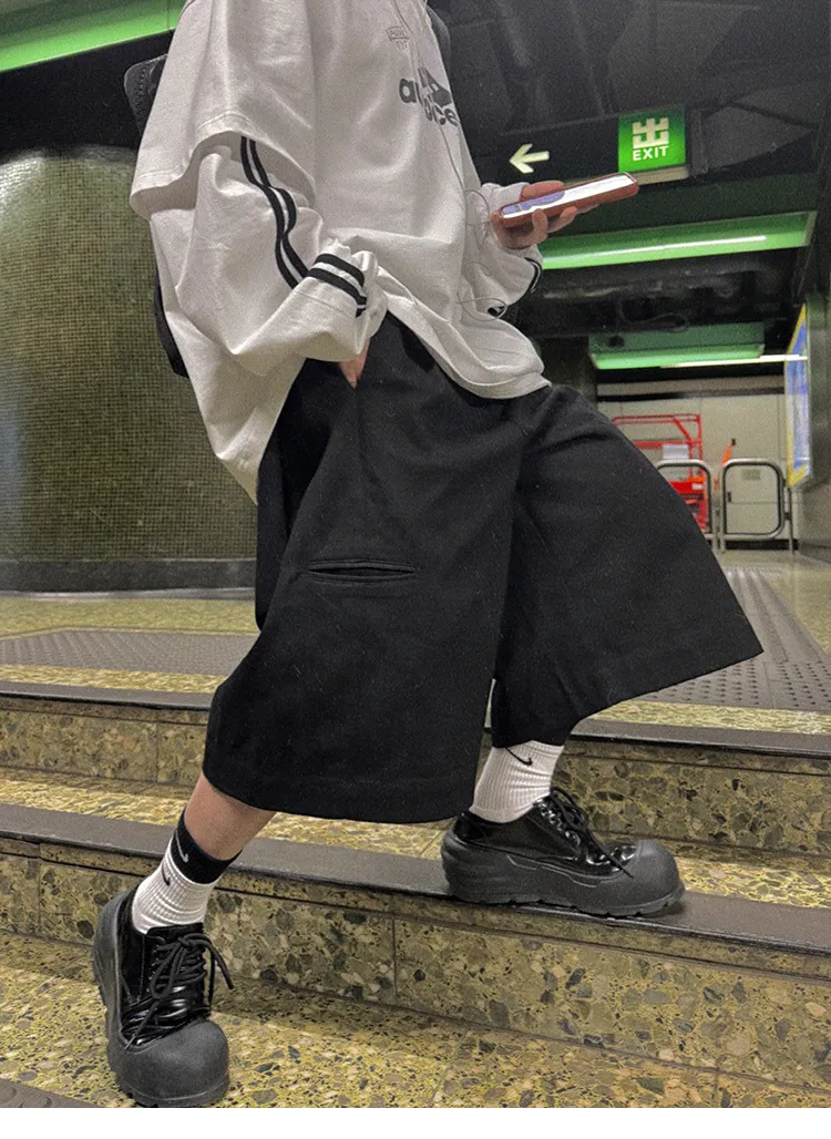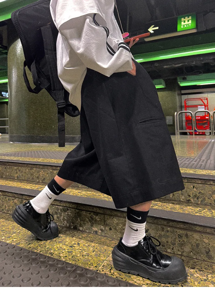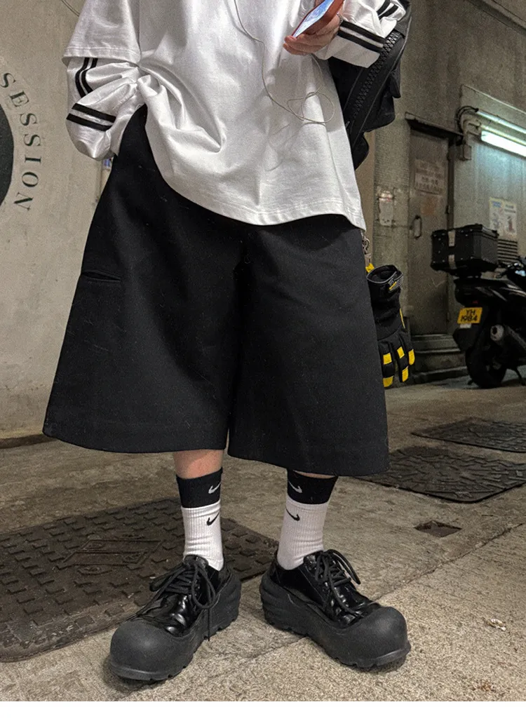 AUROCEAN 廓形 簡約 西裝七分褲 短褲(黑色)