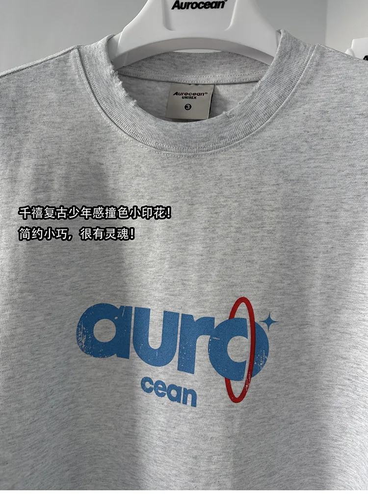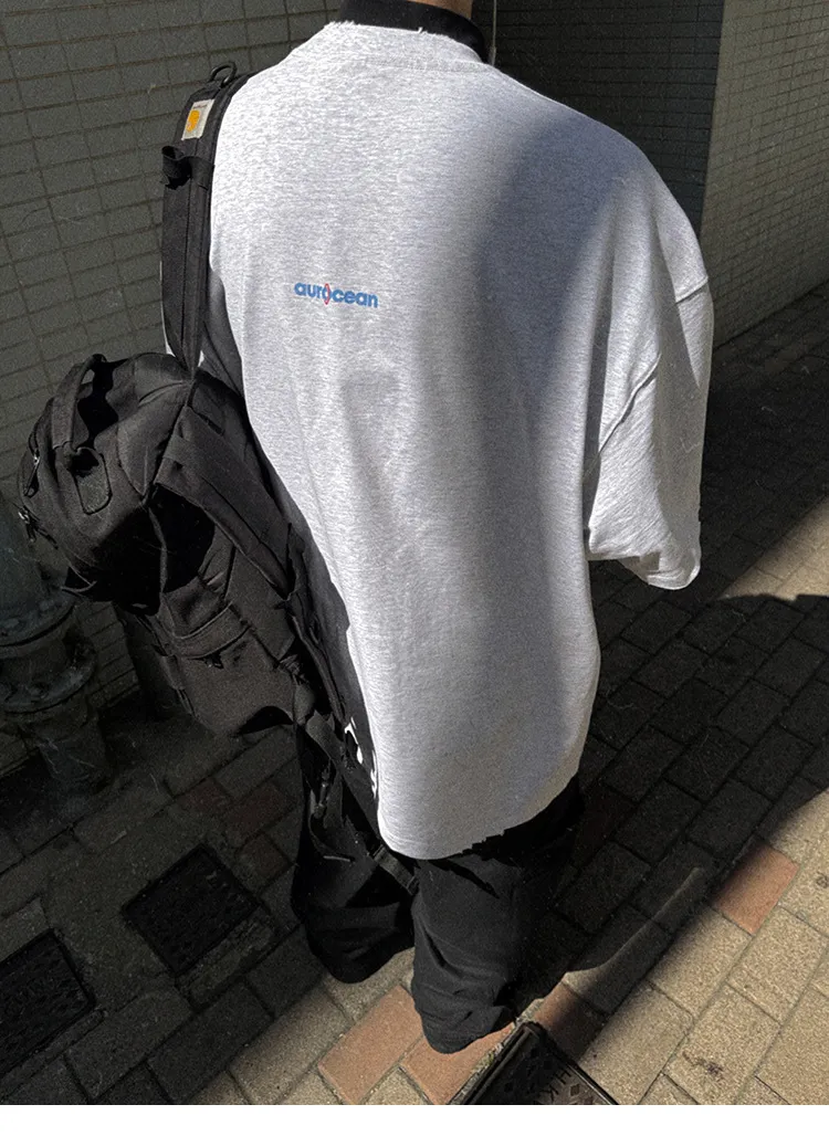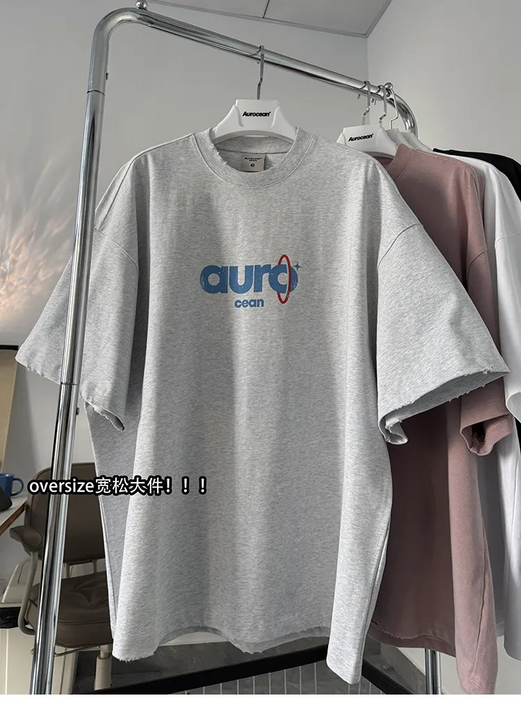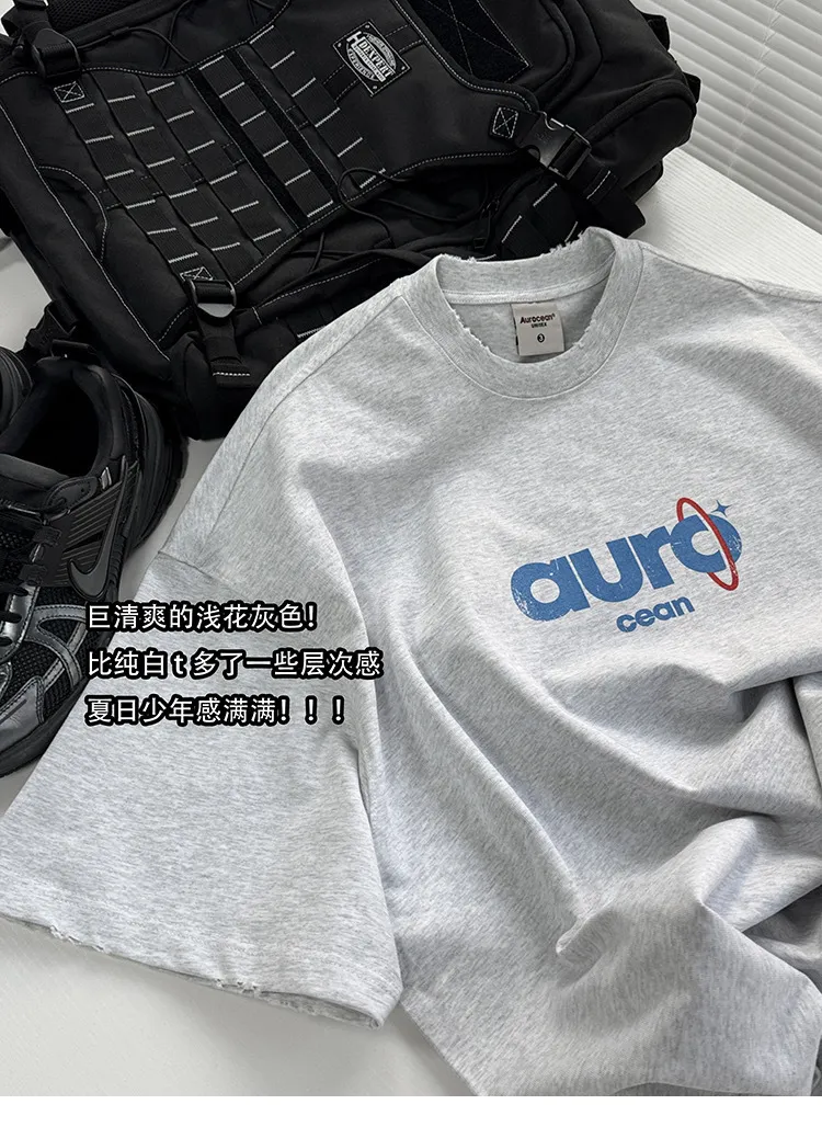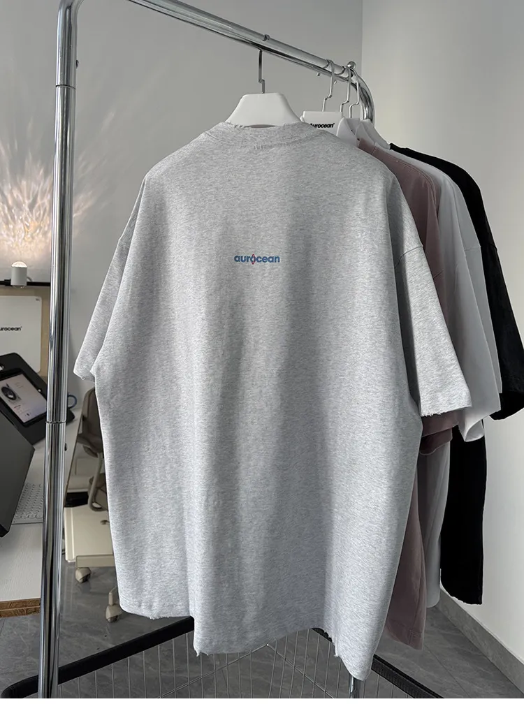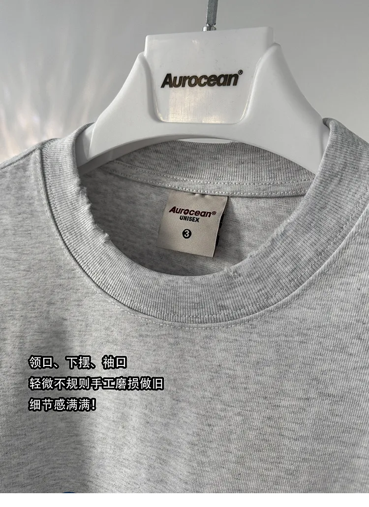 AUROCEAN 水洗做舊 油墨印花 OS 短袖(淺花灰)