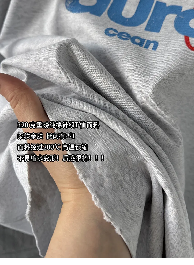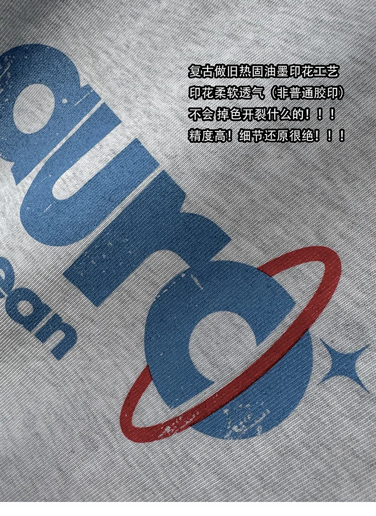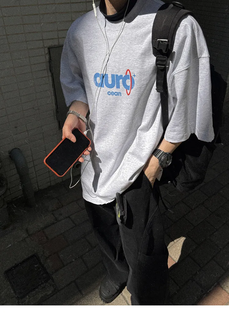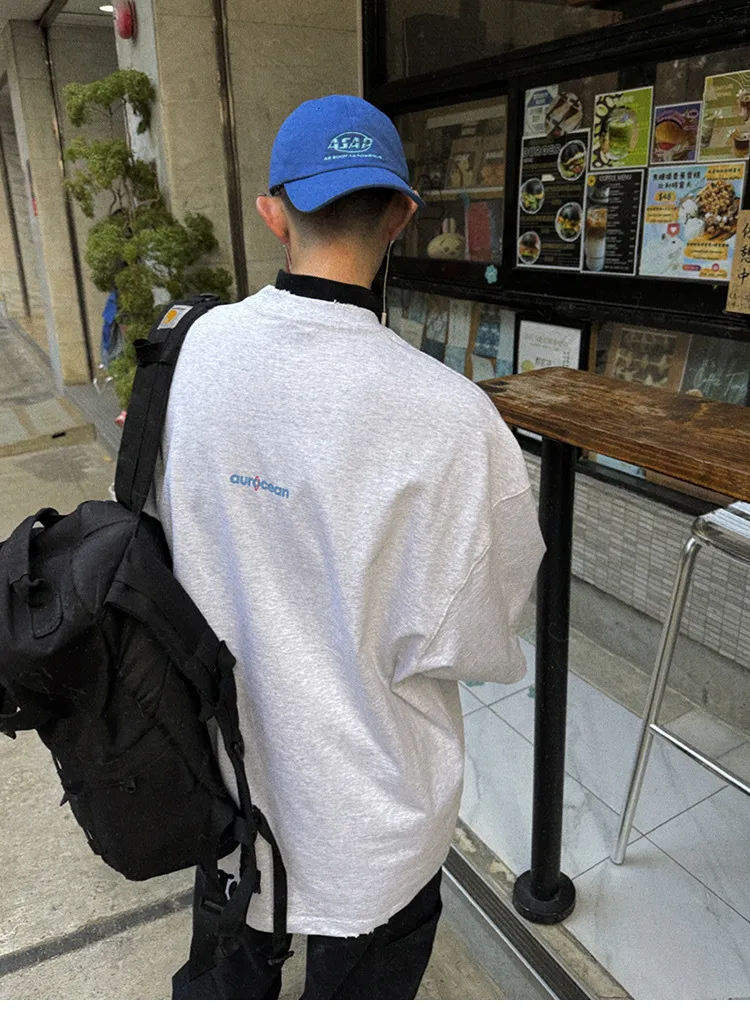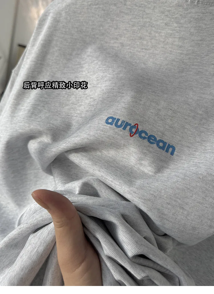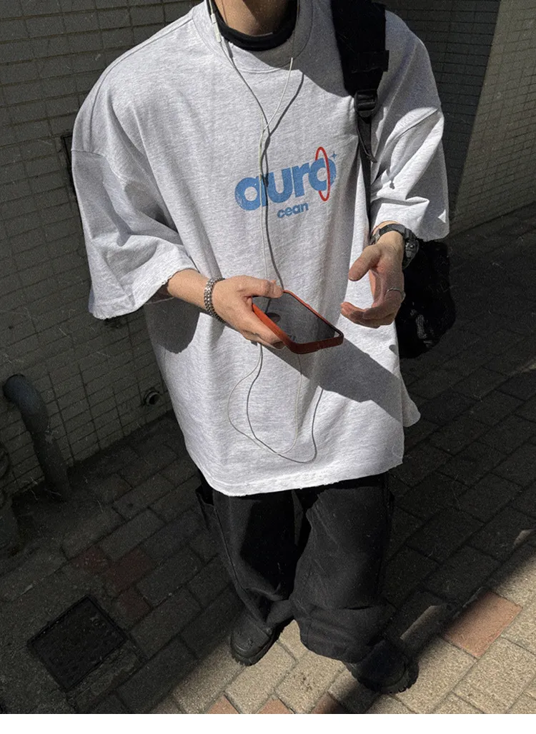 AUROCEAN 水洗做舊 油墨印花 OS 短袖(淺花灰)