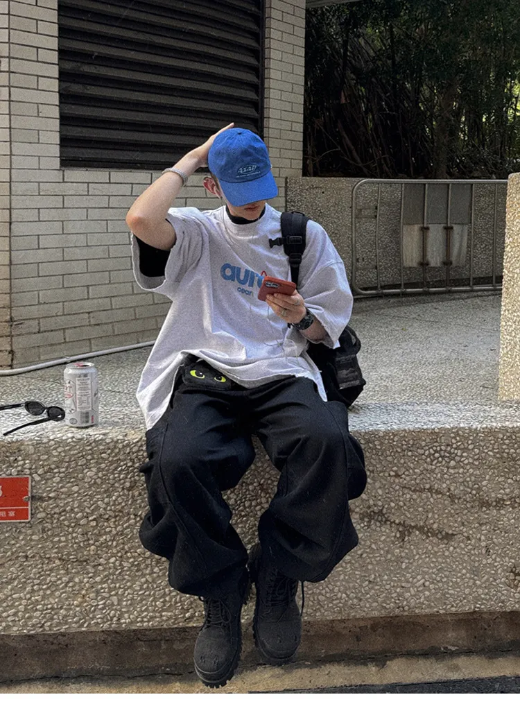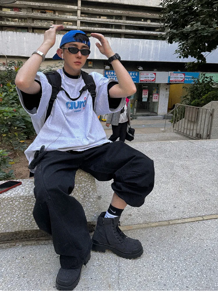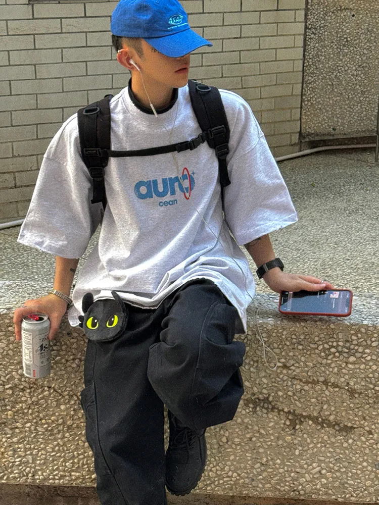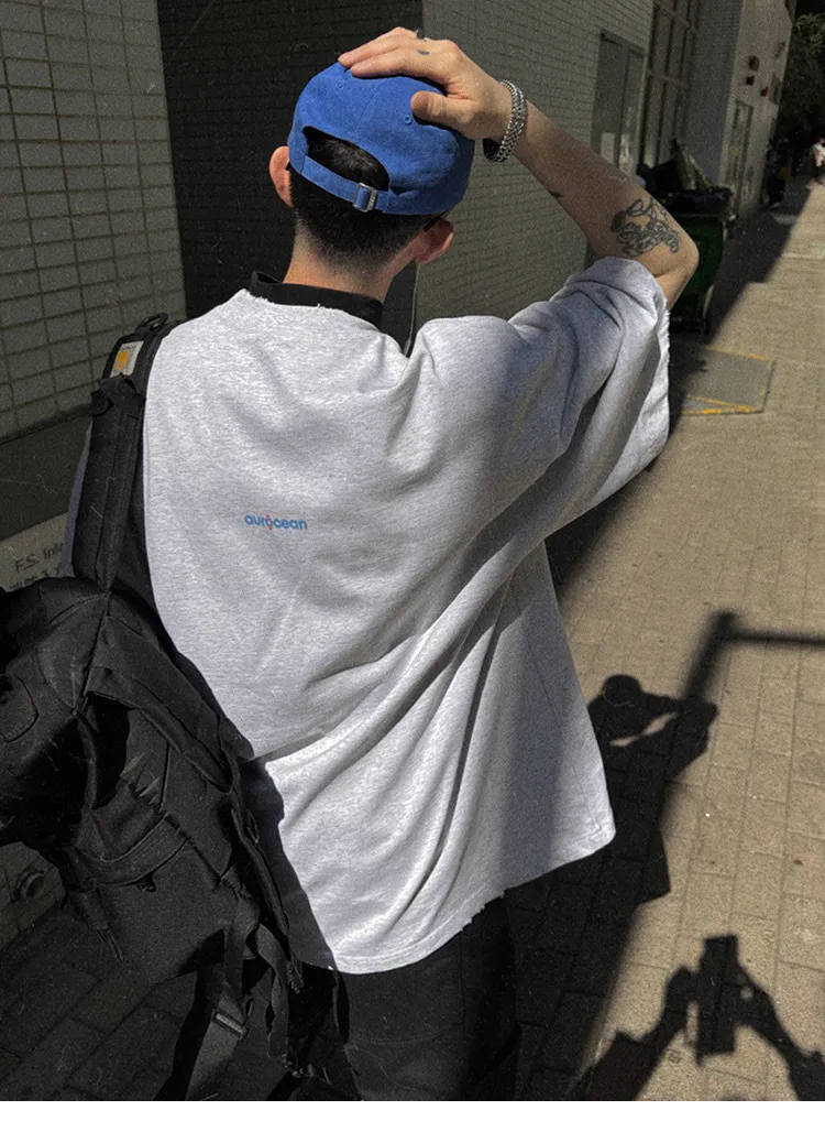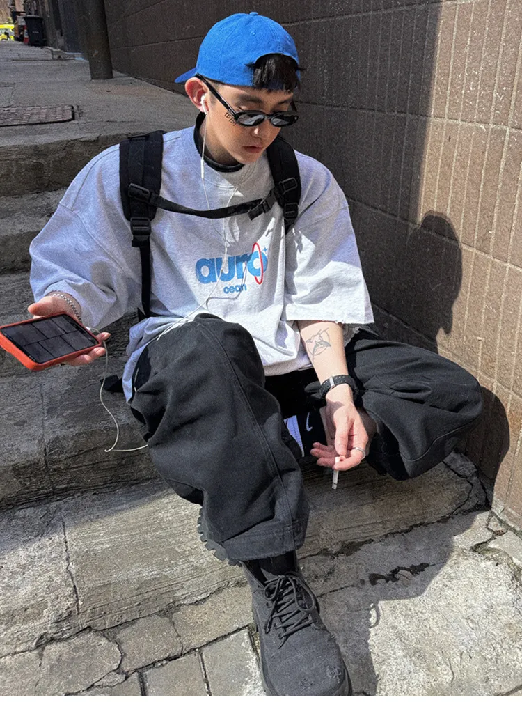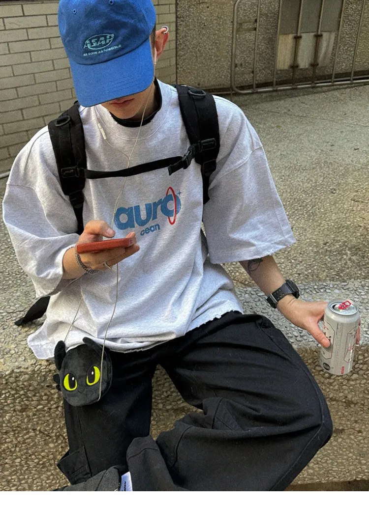 AUROCEAN 水洗做舊 油墨印花 OS 短袖(做舊黑)