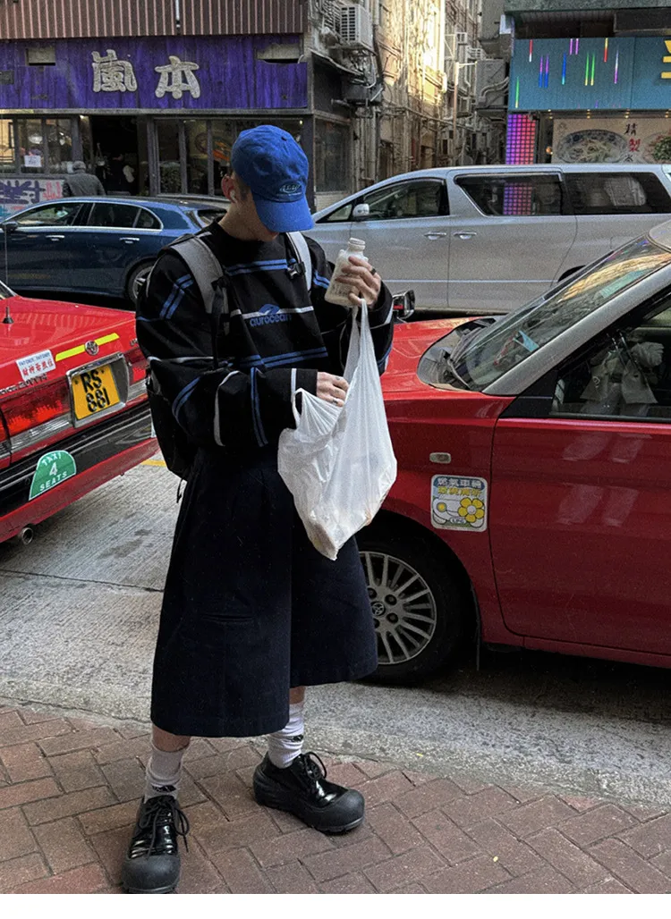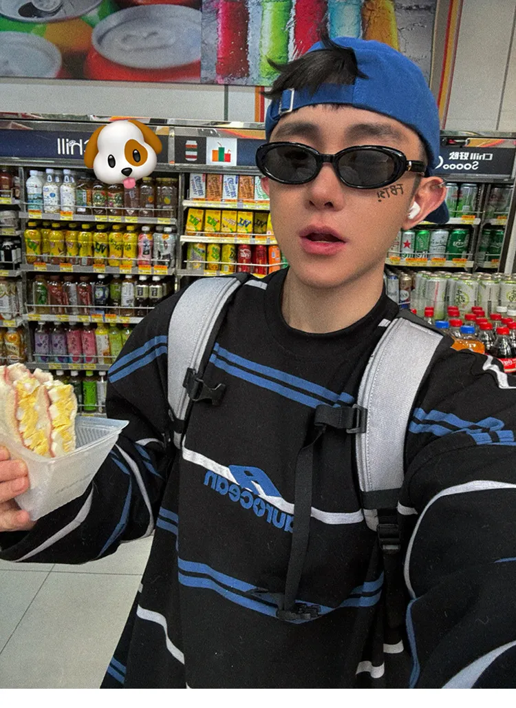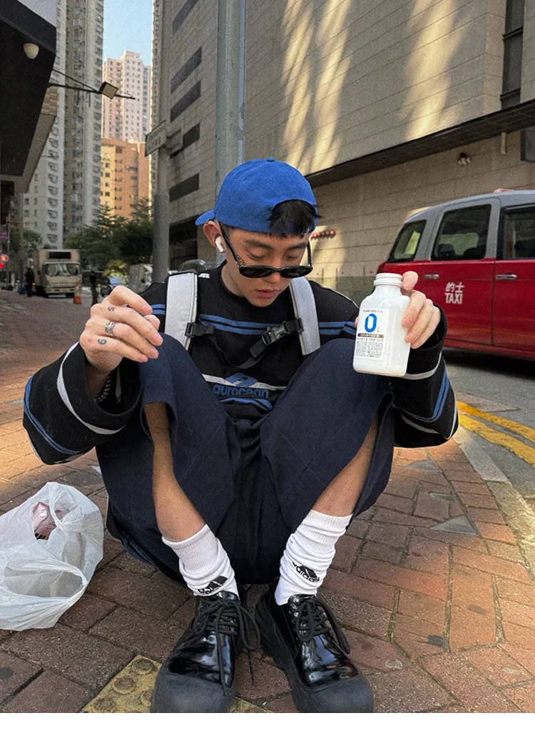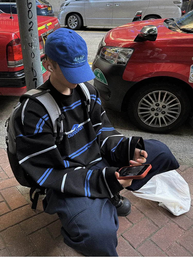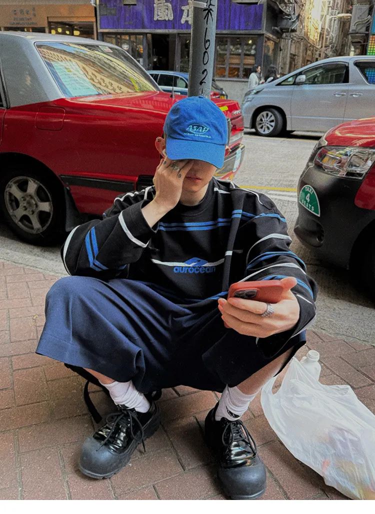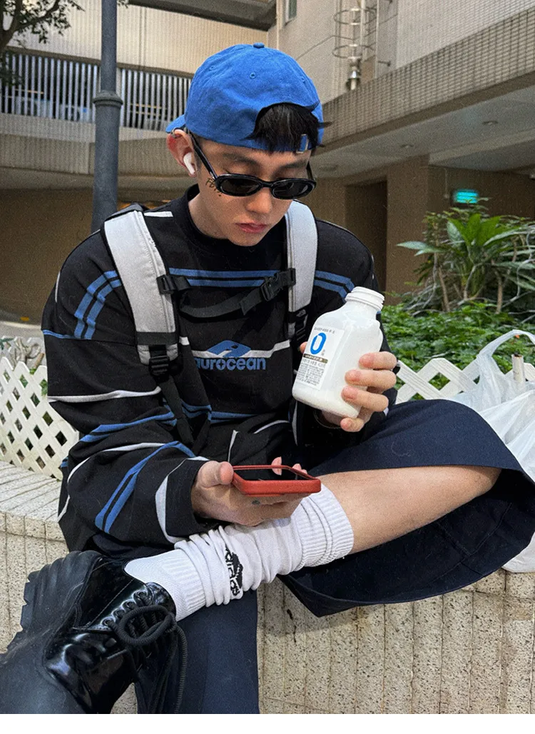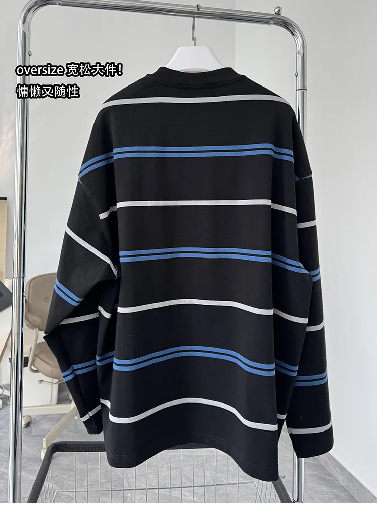 AUROCEAN 奶藍條紋 日系少年 OS 長袖(黑色)