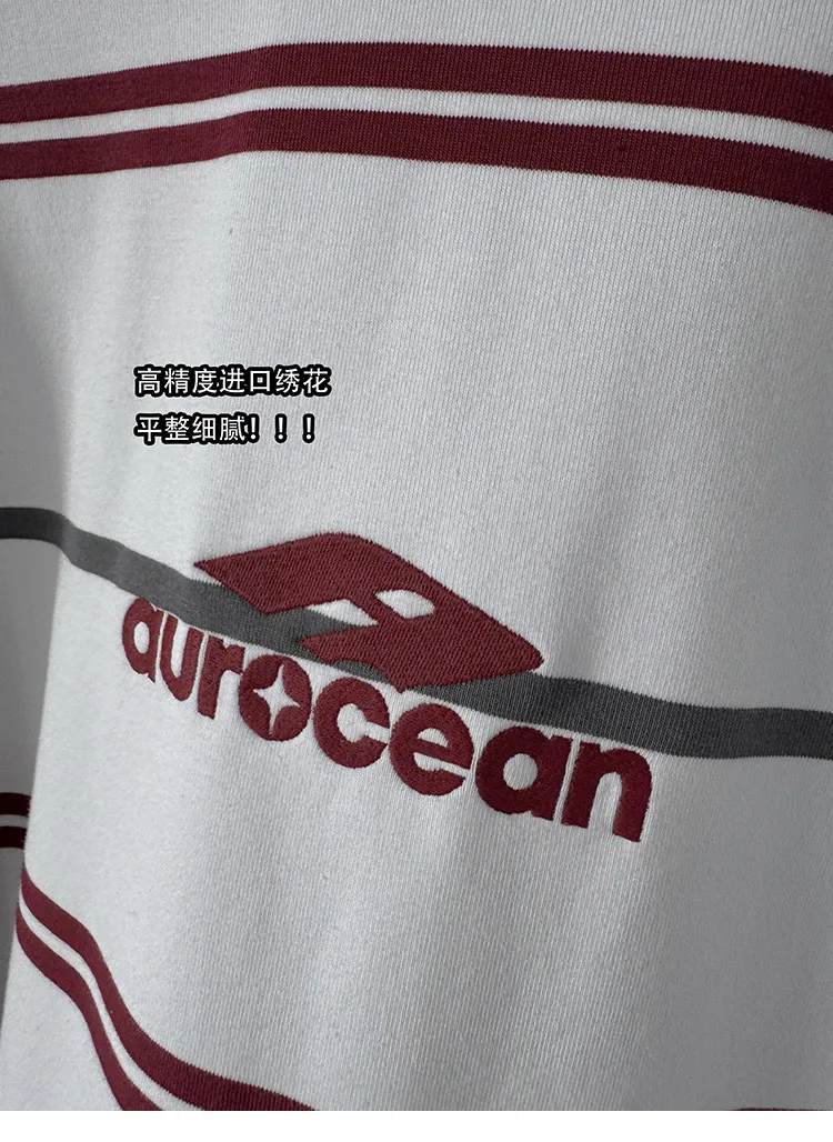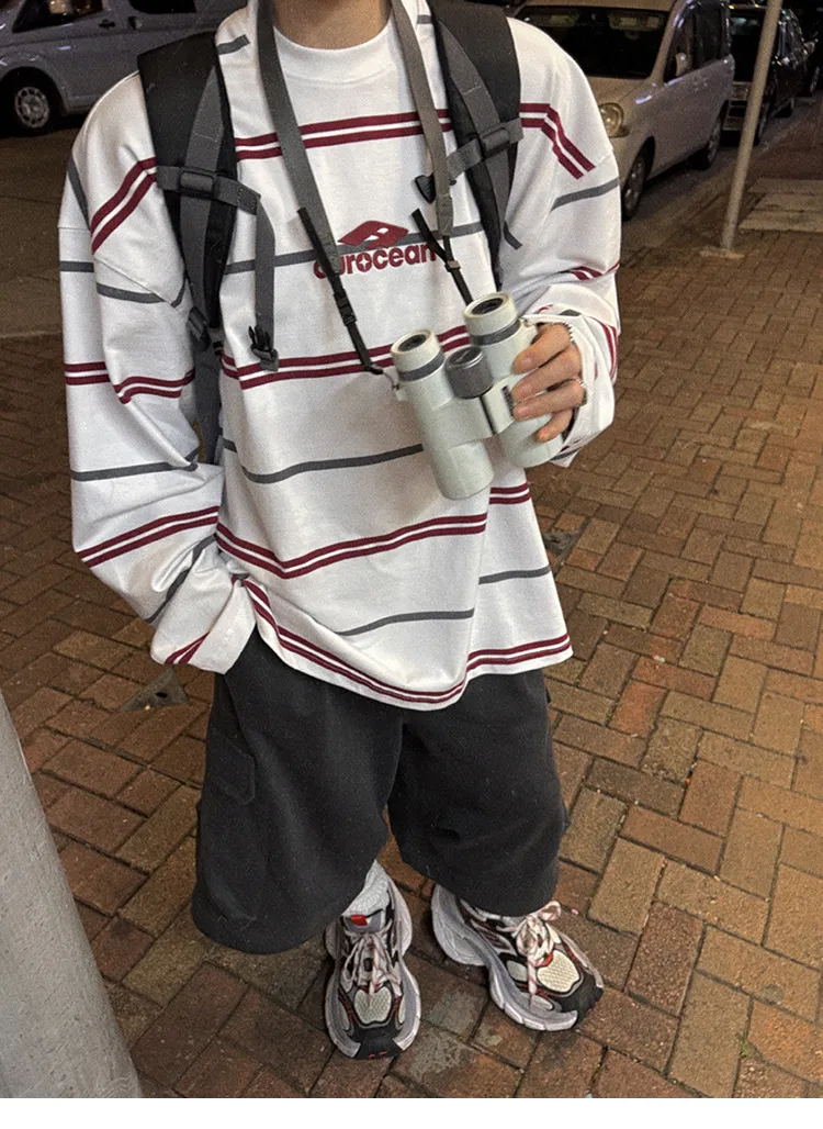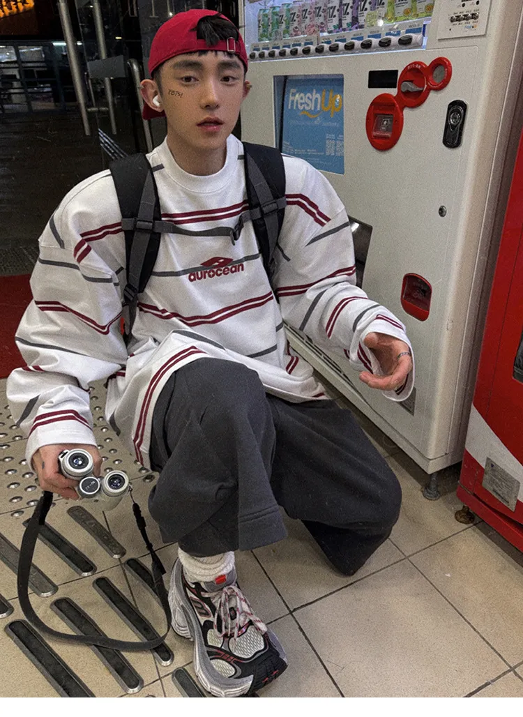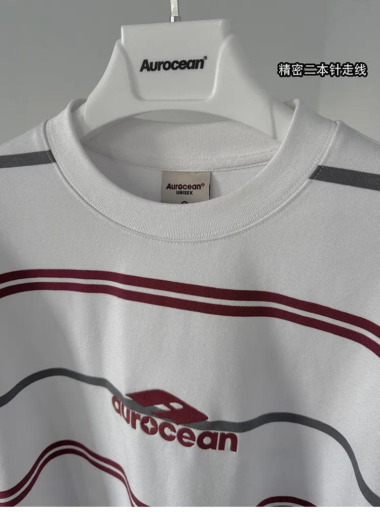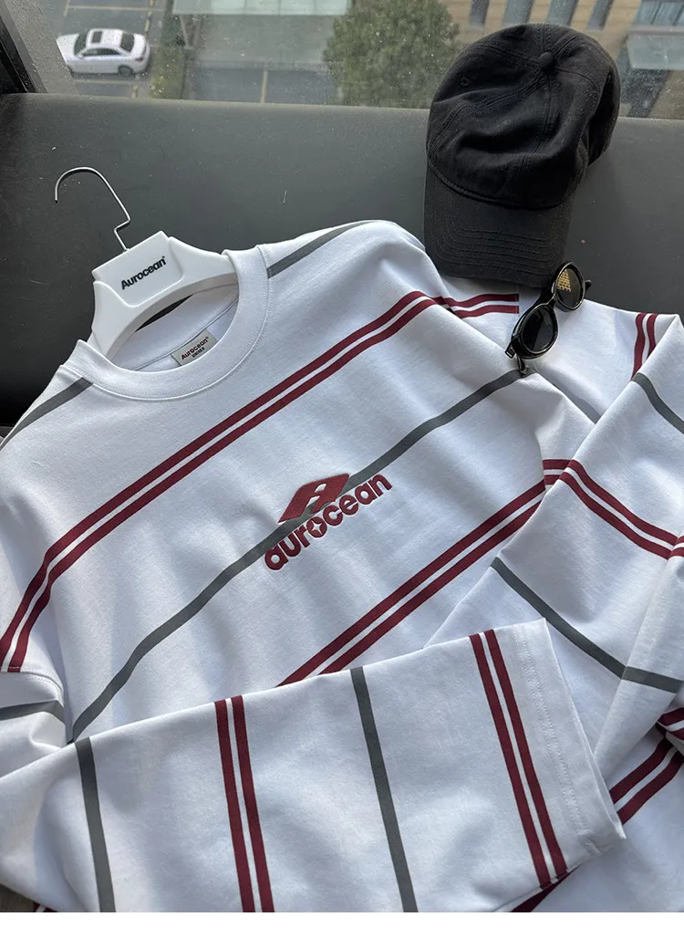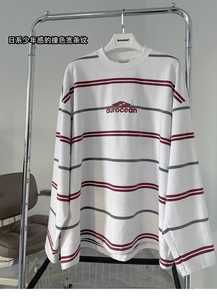 AUROCEAN 撞色條紋 日系少年 OS 長袖(白色)