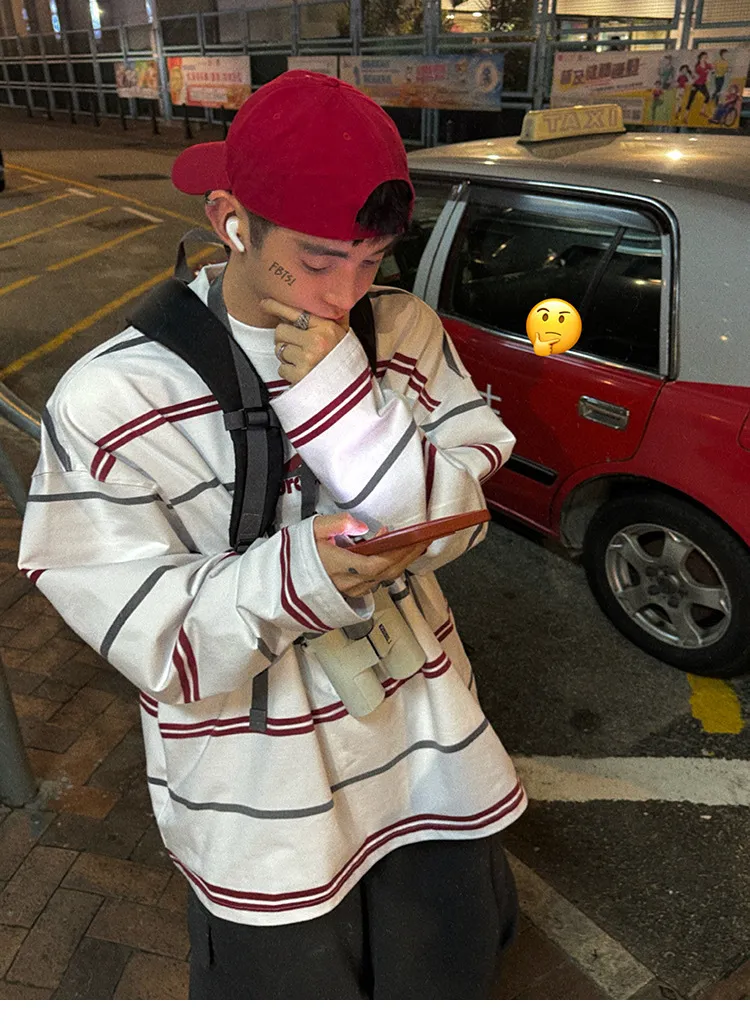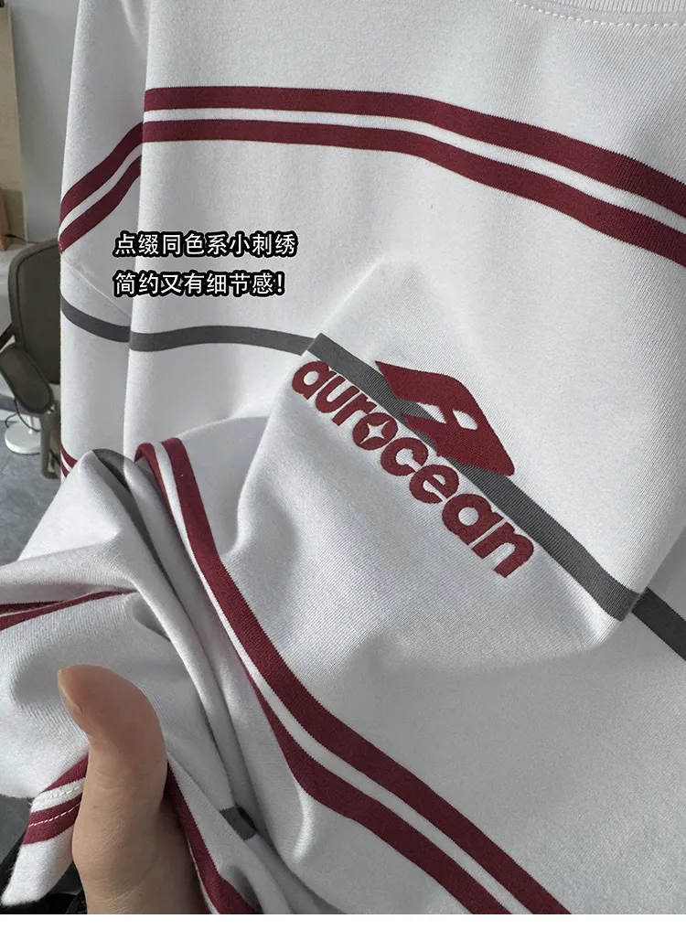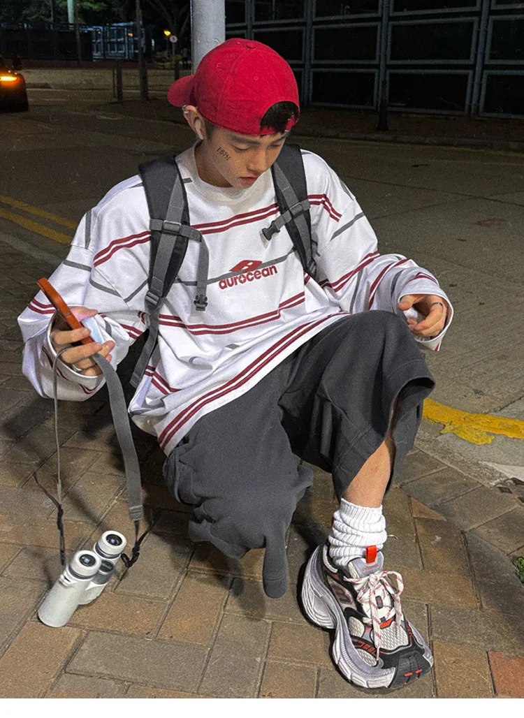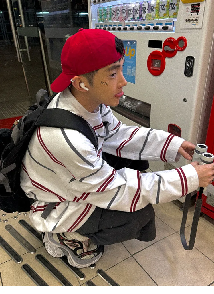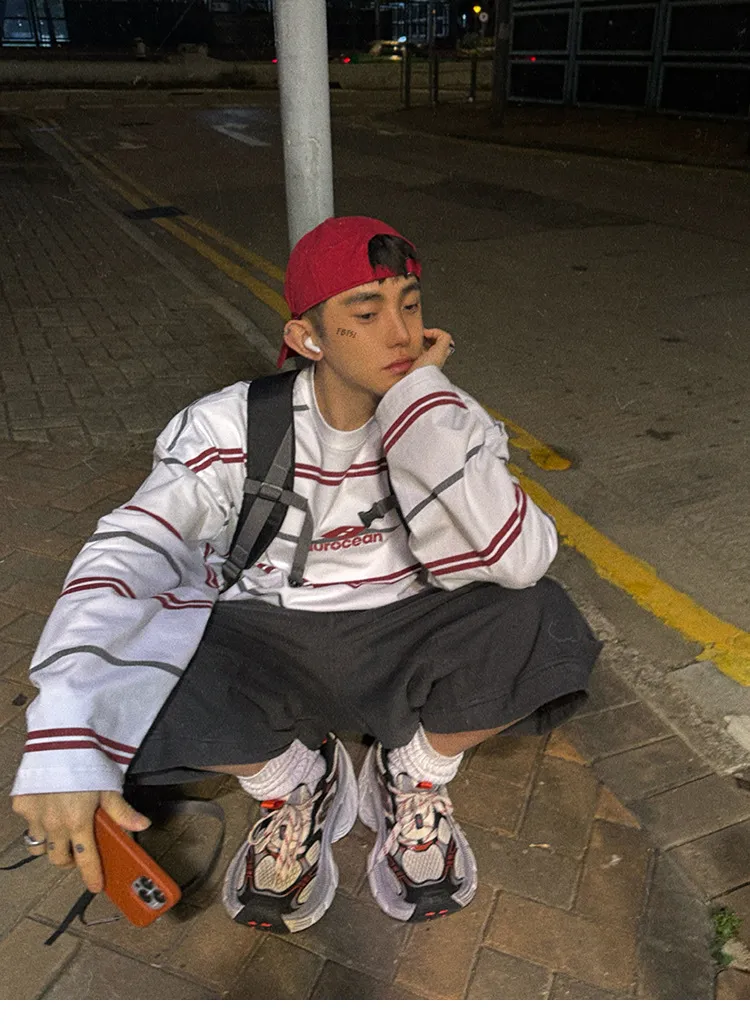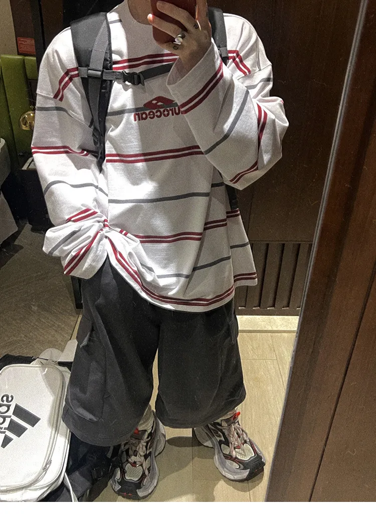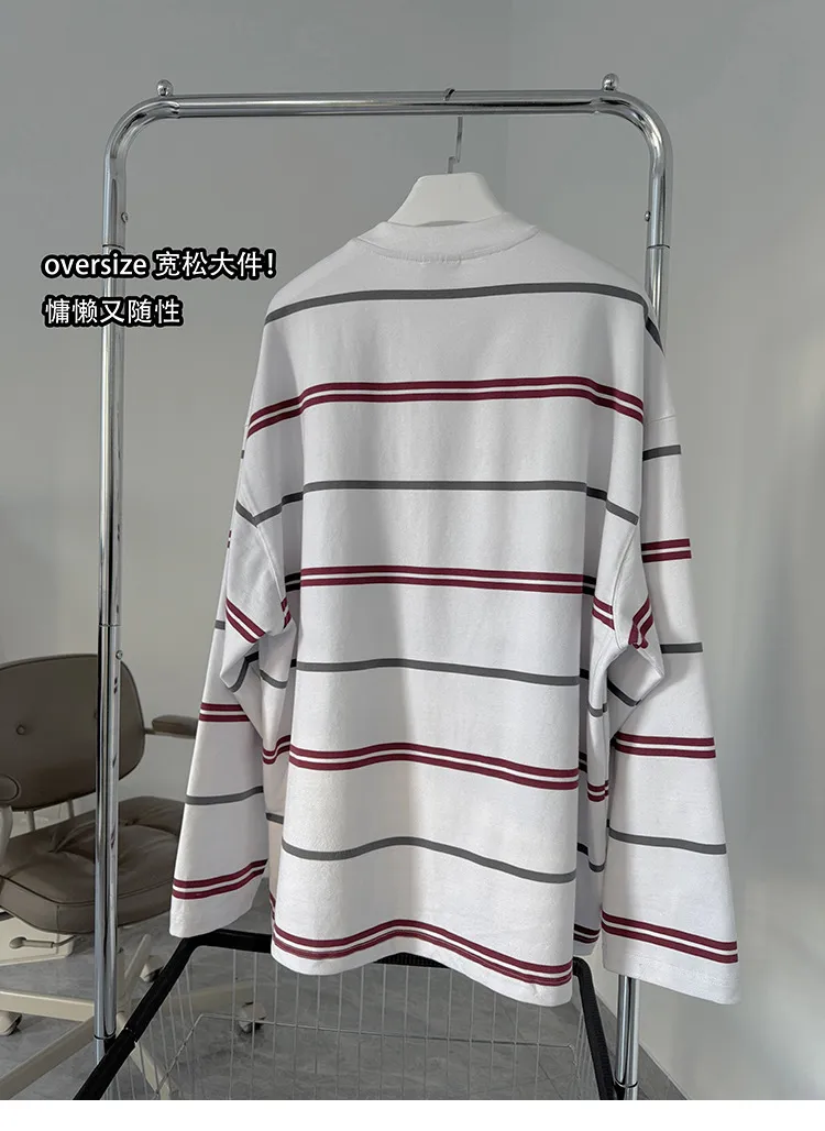 AUROCEAN 撞色條紋 日系少年 OS 長袖(白色)
