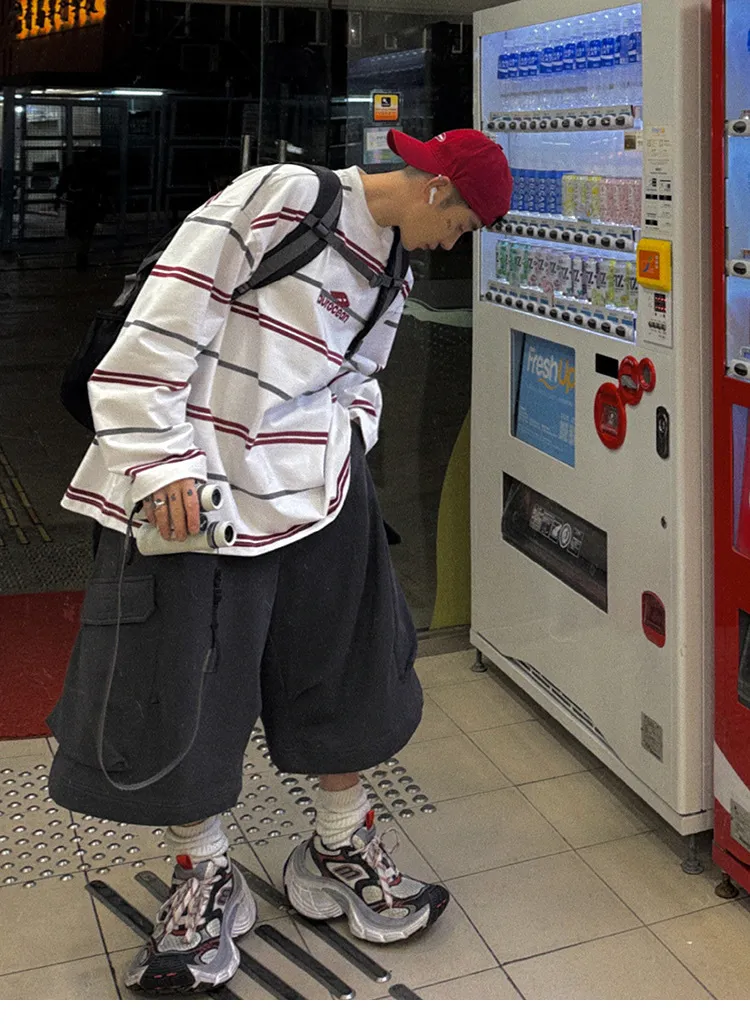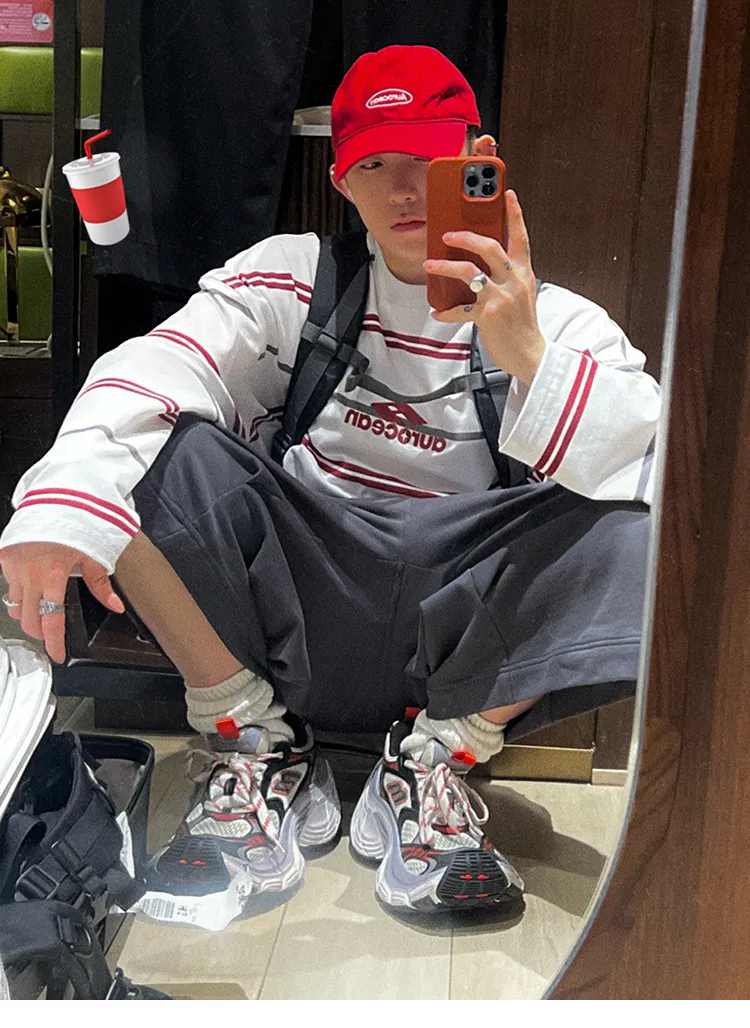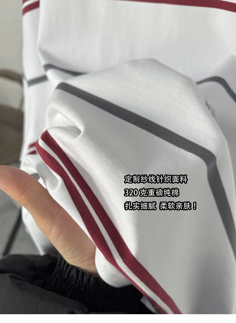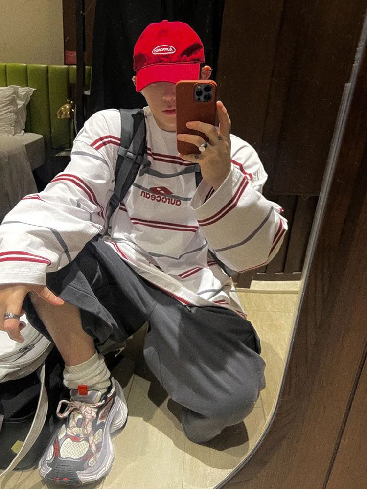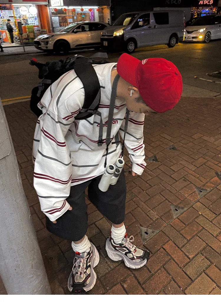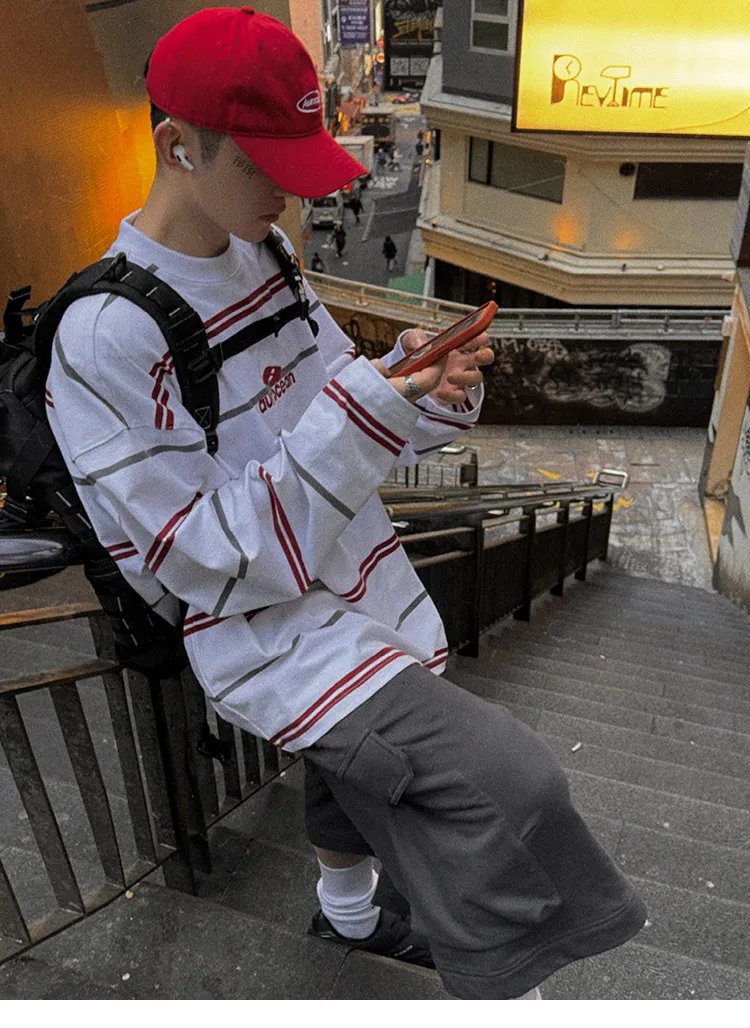 AUROCEAN 撞色條紋 日系少年 OS 長袖(白色)