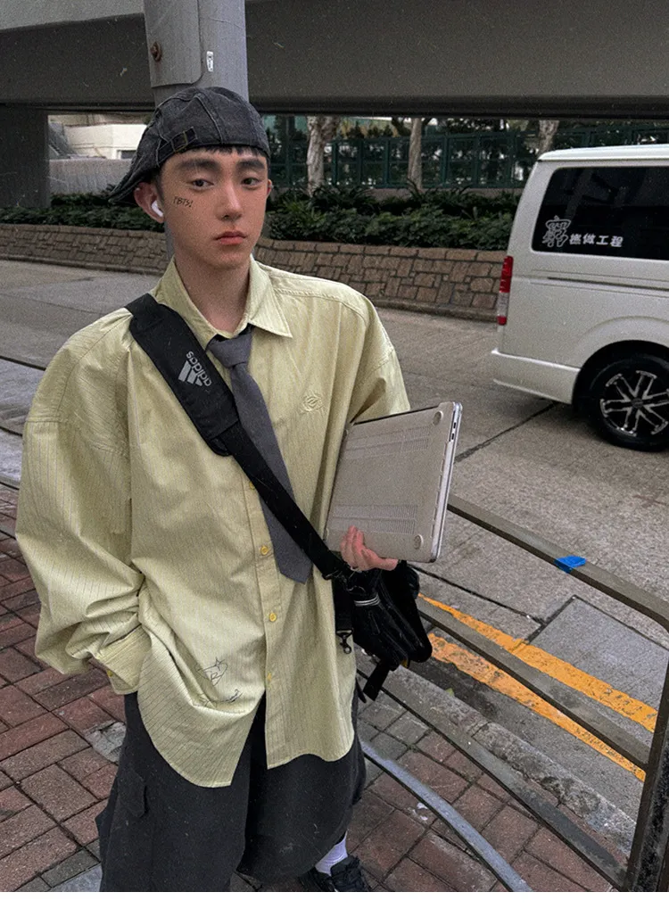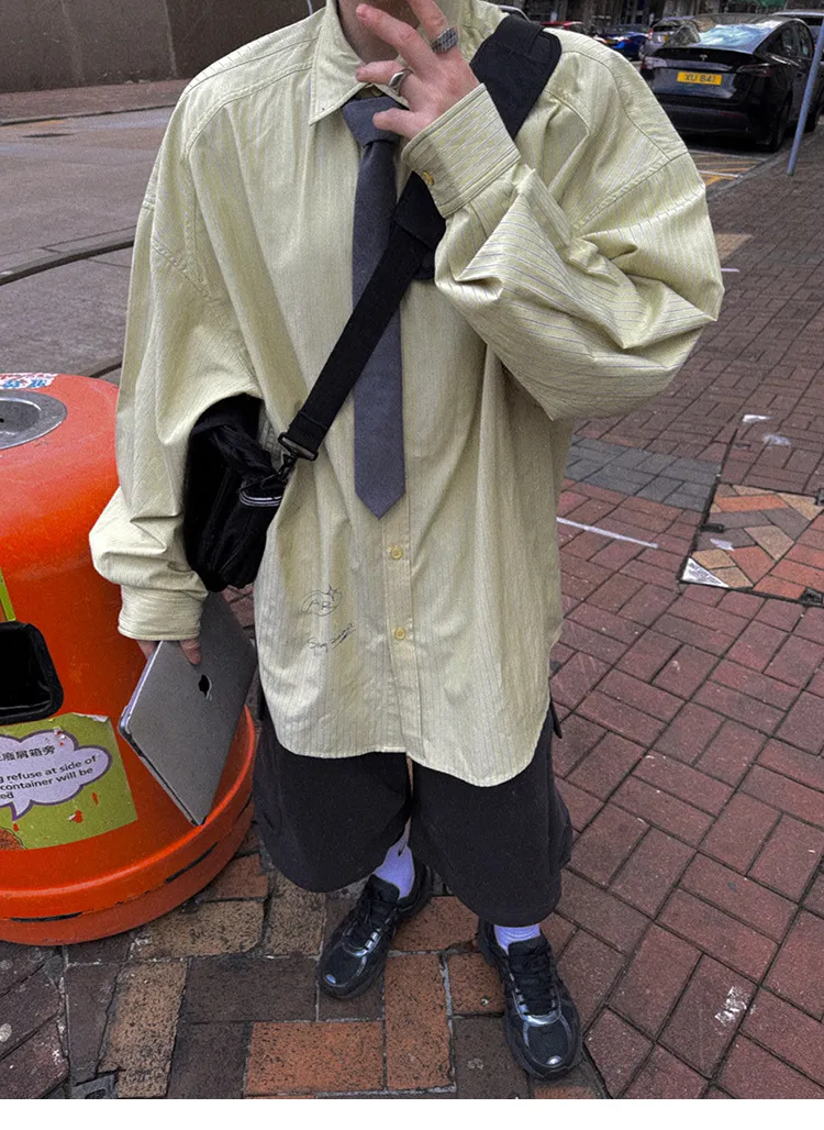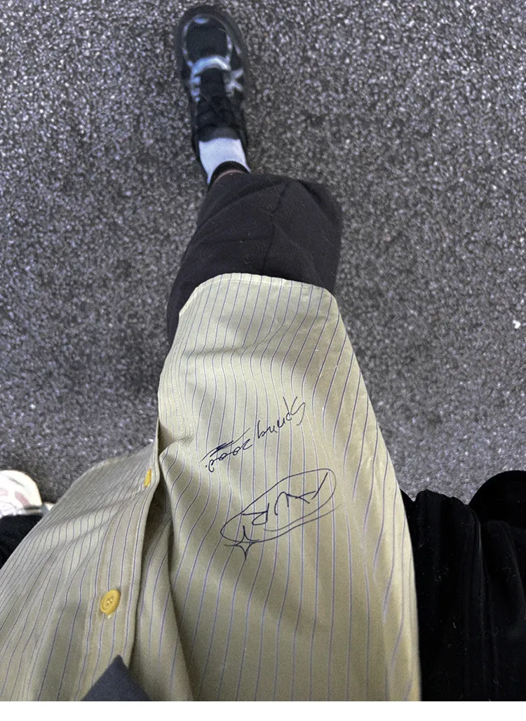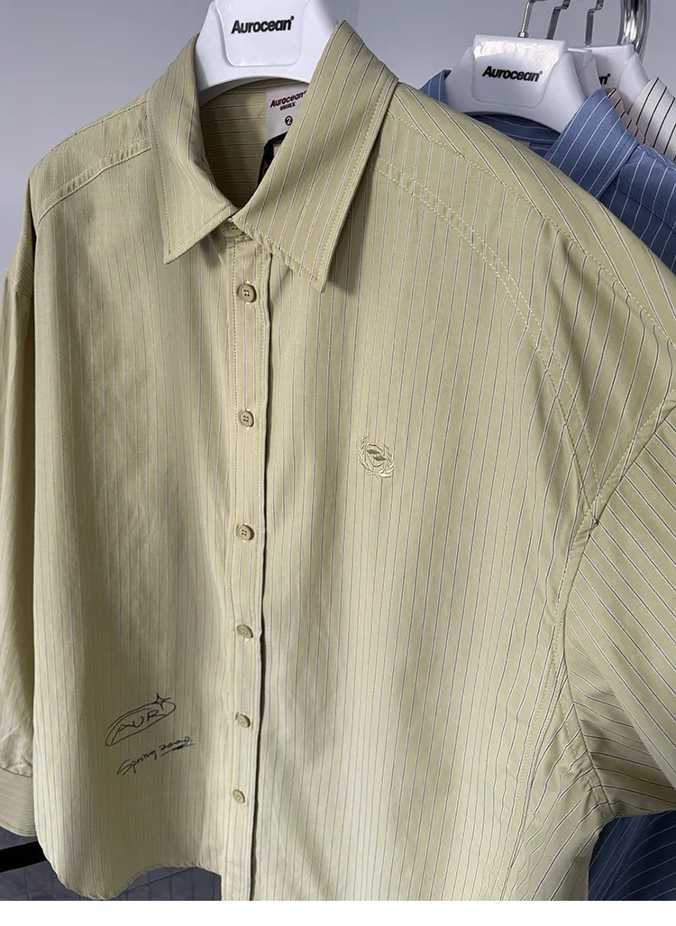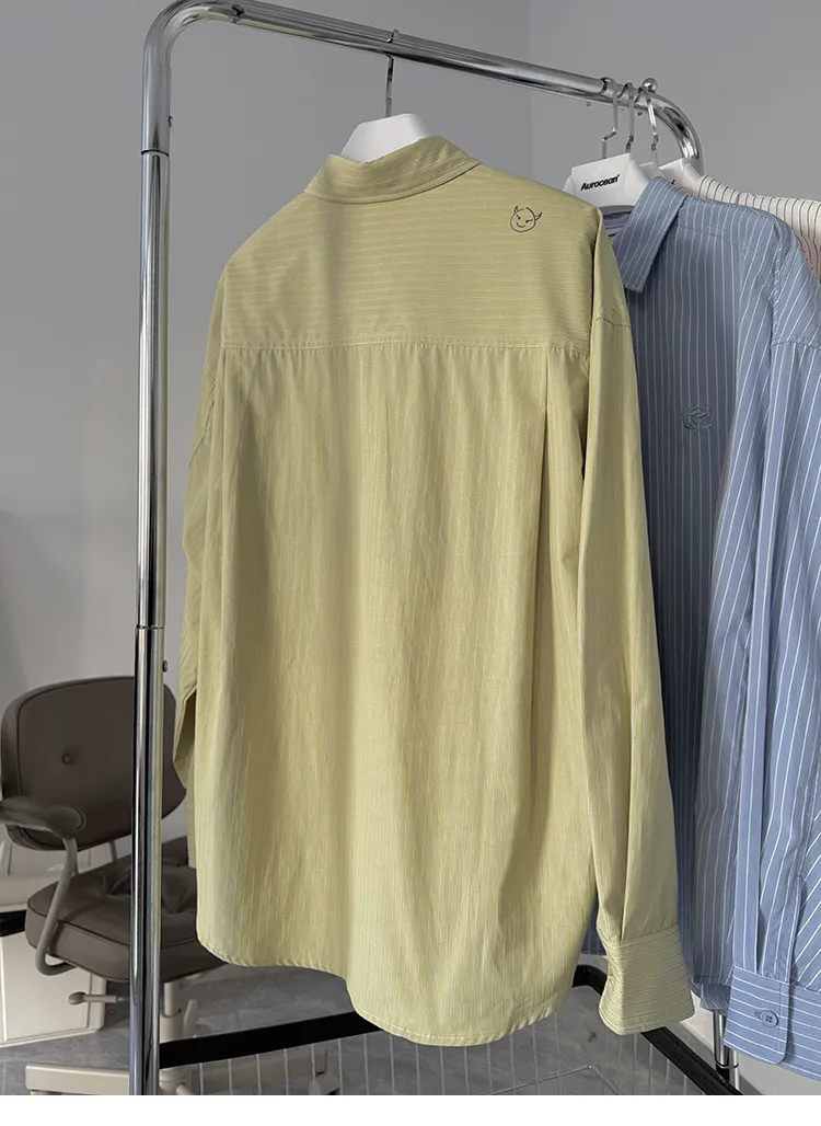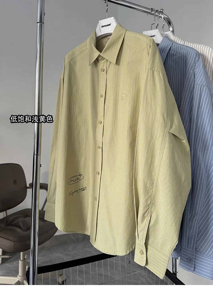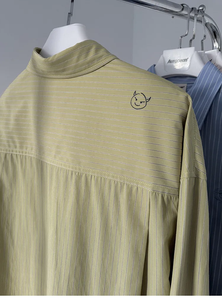 AUROCEAN 學院條紋 手繪塗鴉 OS 襯衫(淺黃色)