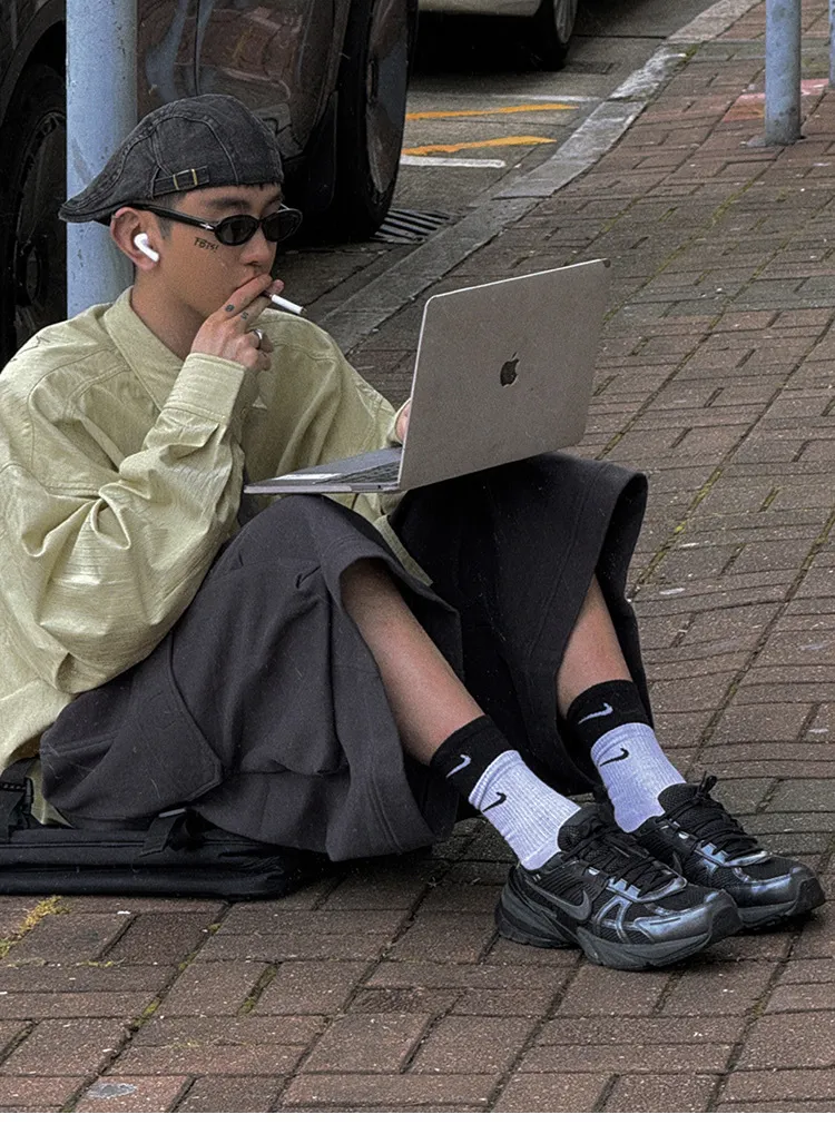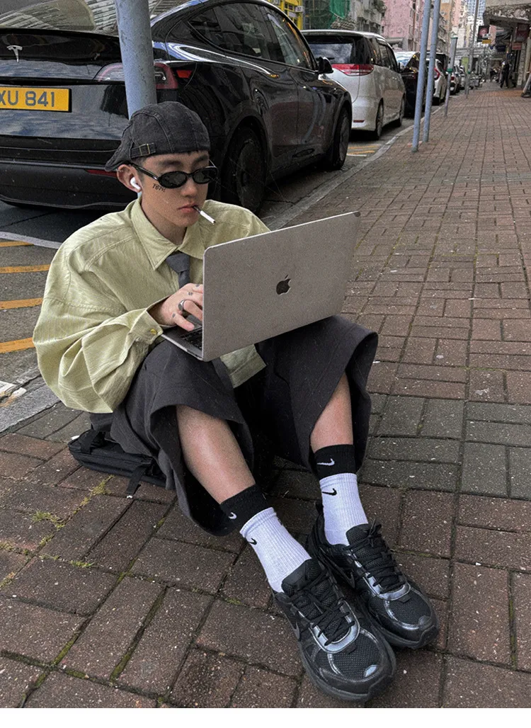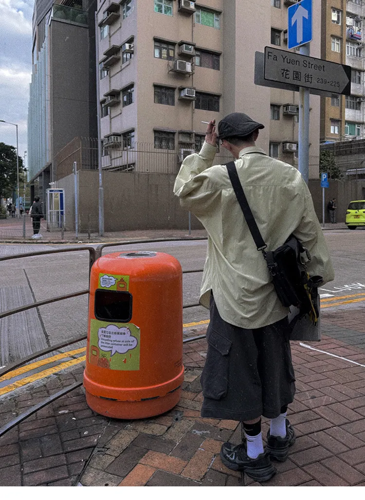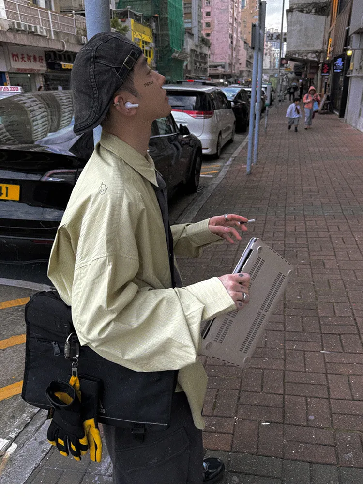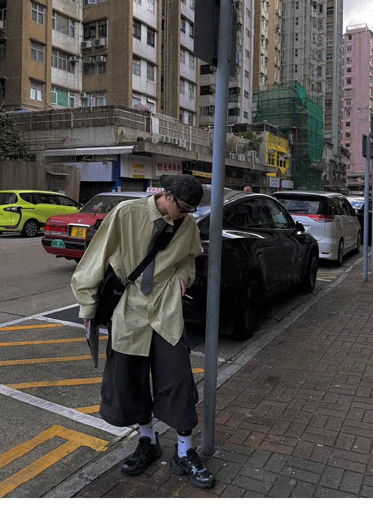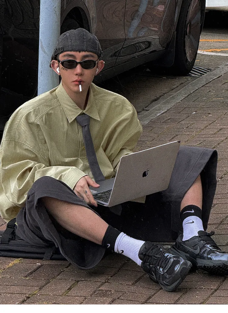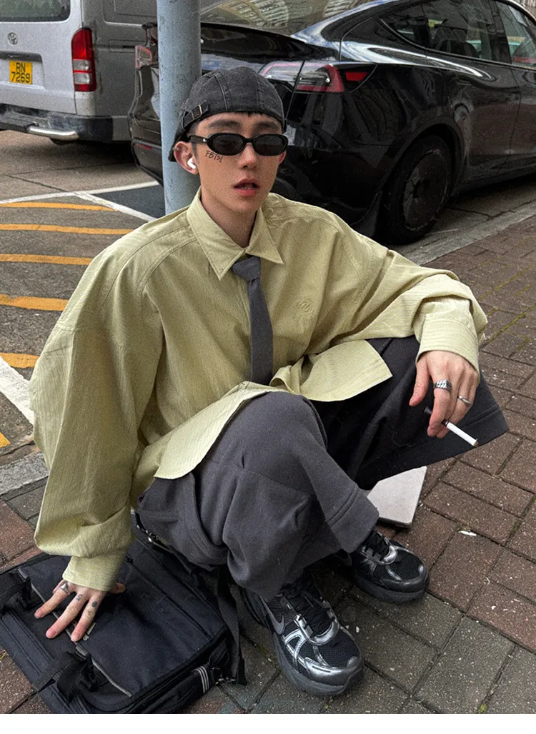AUROCEAN 學院條紋 手繪塗鴉 OS 襯衫(淺黃色)