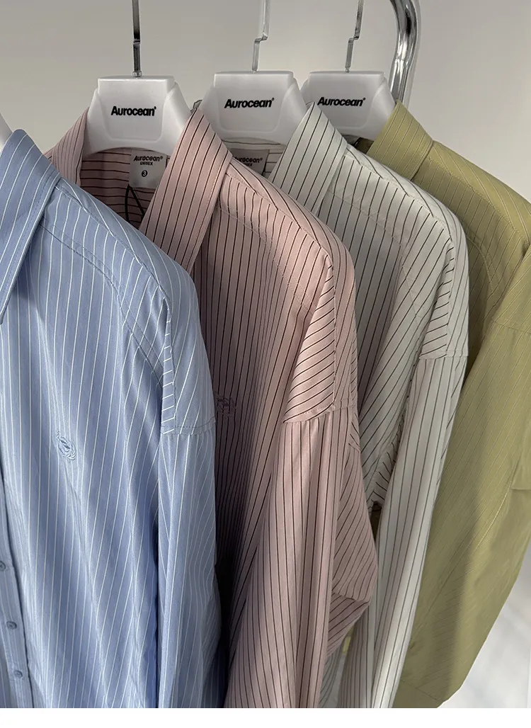 AUROCEAN 學院條紋 手繪塗鴉 OS 襯衫(淺粉色)