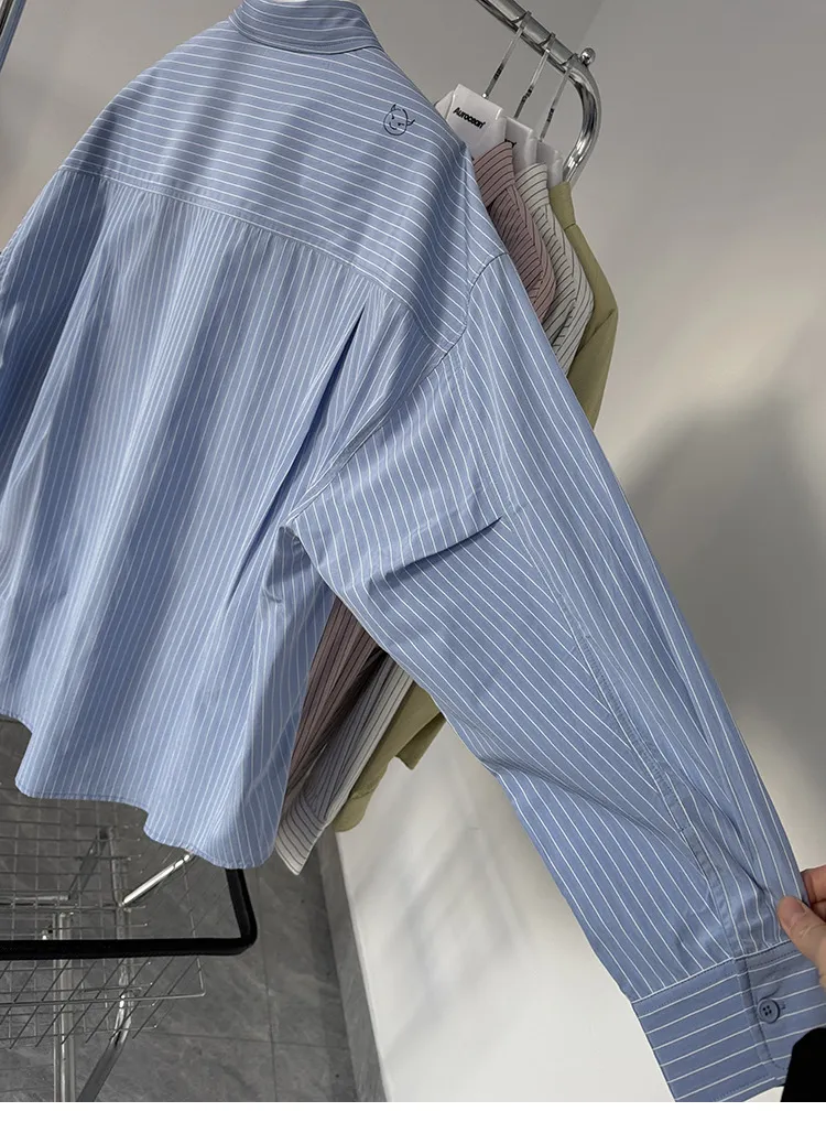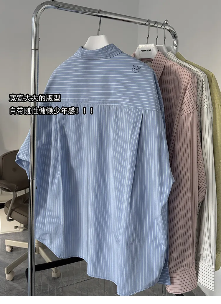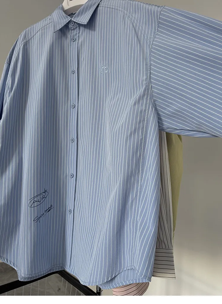 AUROCEAN 學院條紋 手繪塗鴉 OS 襯衫(淺藍色)