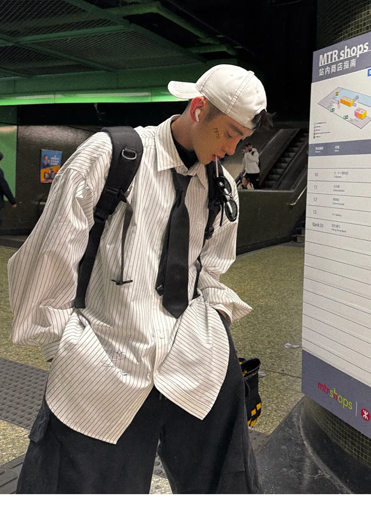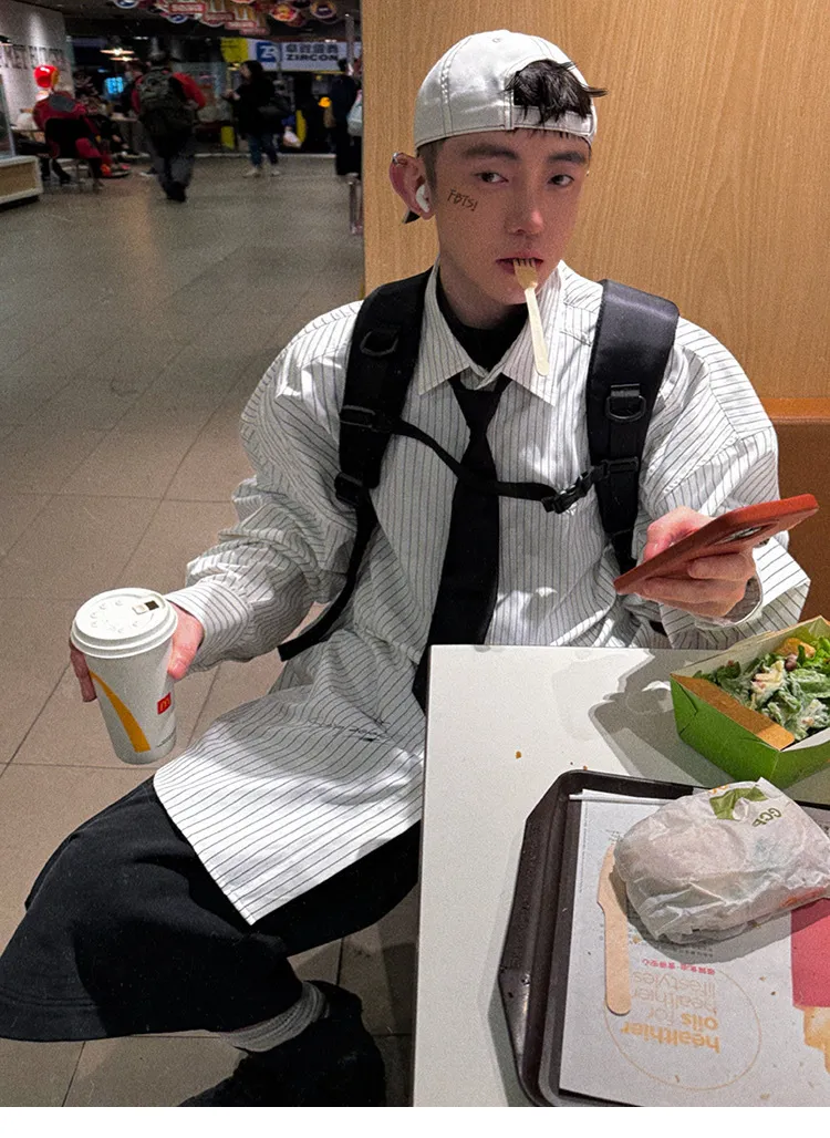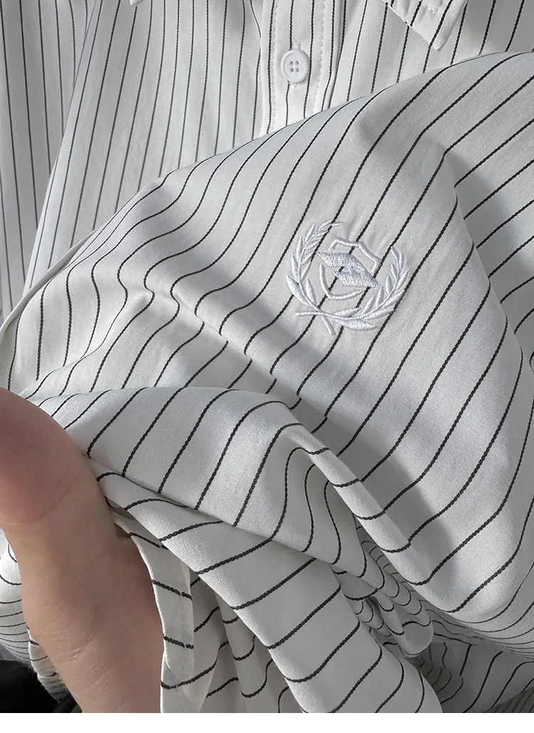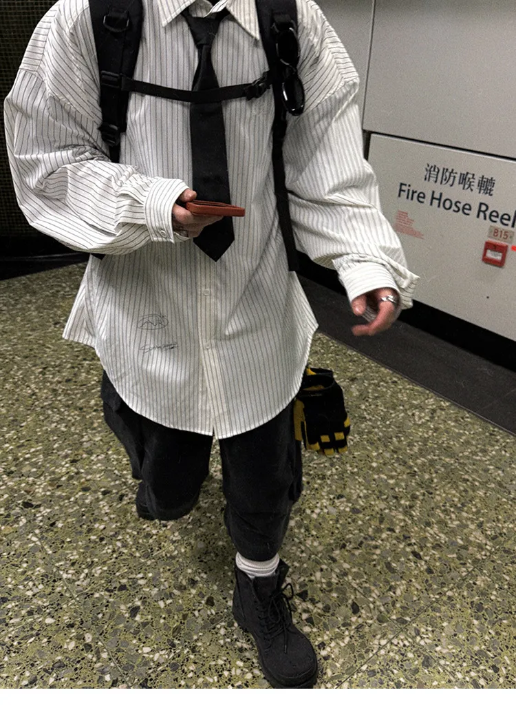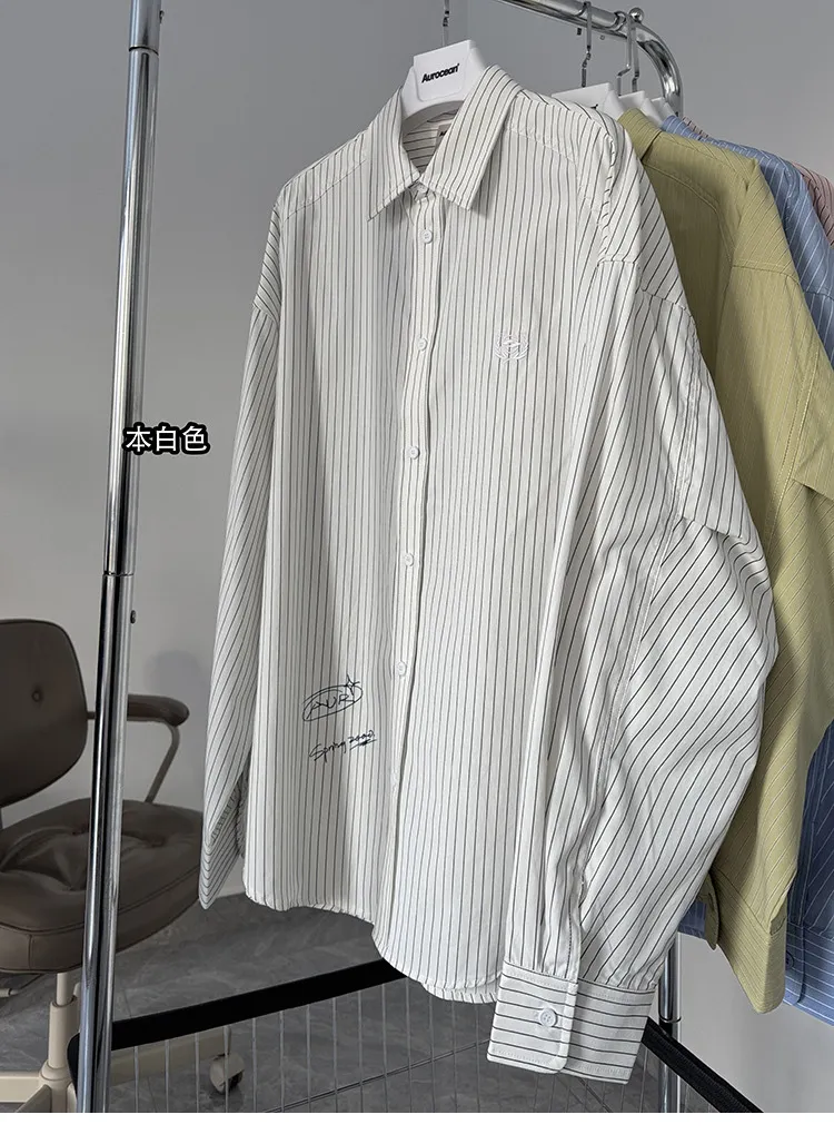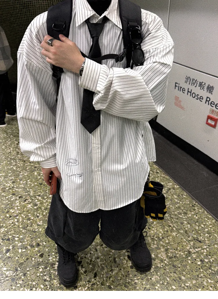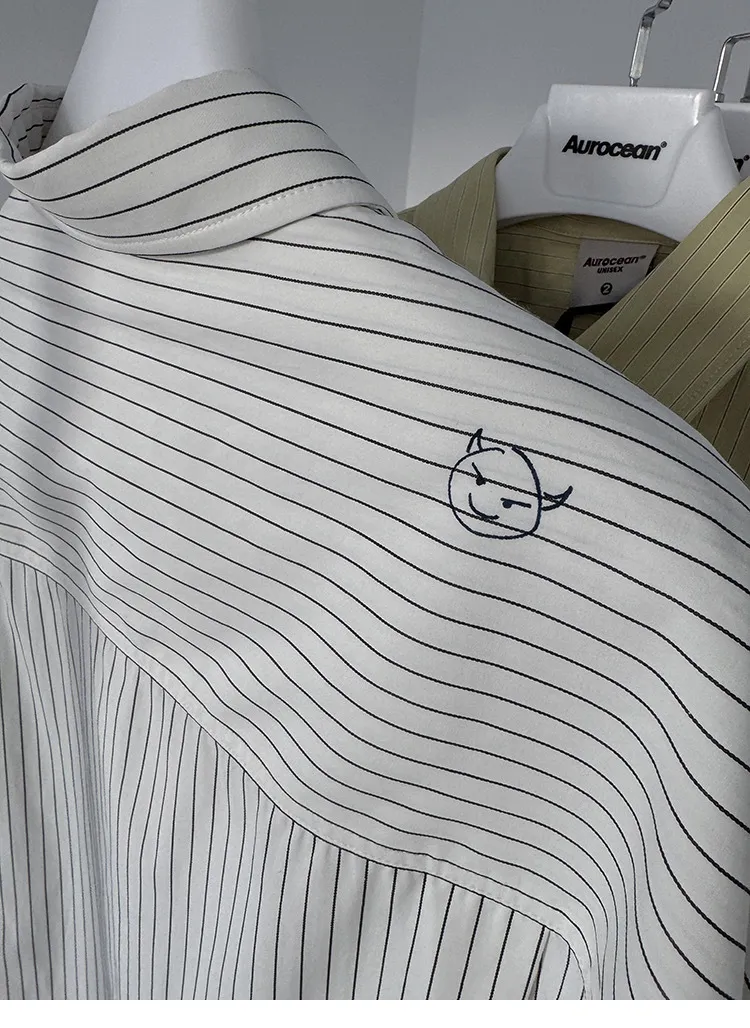 AUROCEAN 學院條紋 手繪塗鴉 OS 襯衫(白色)