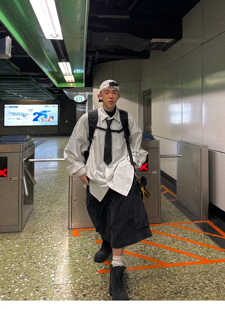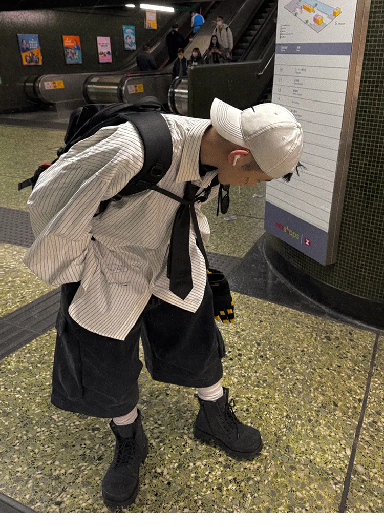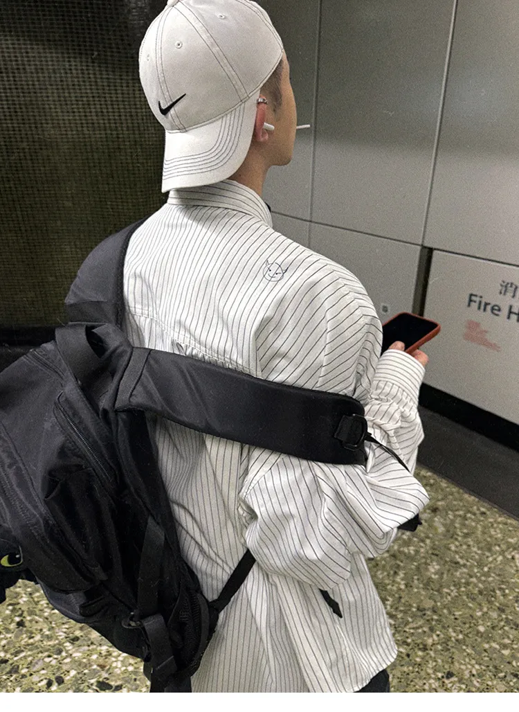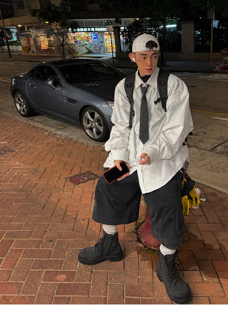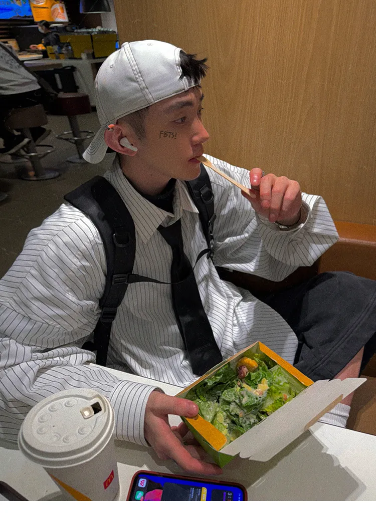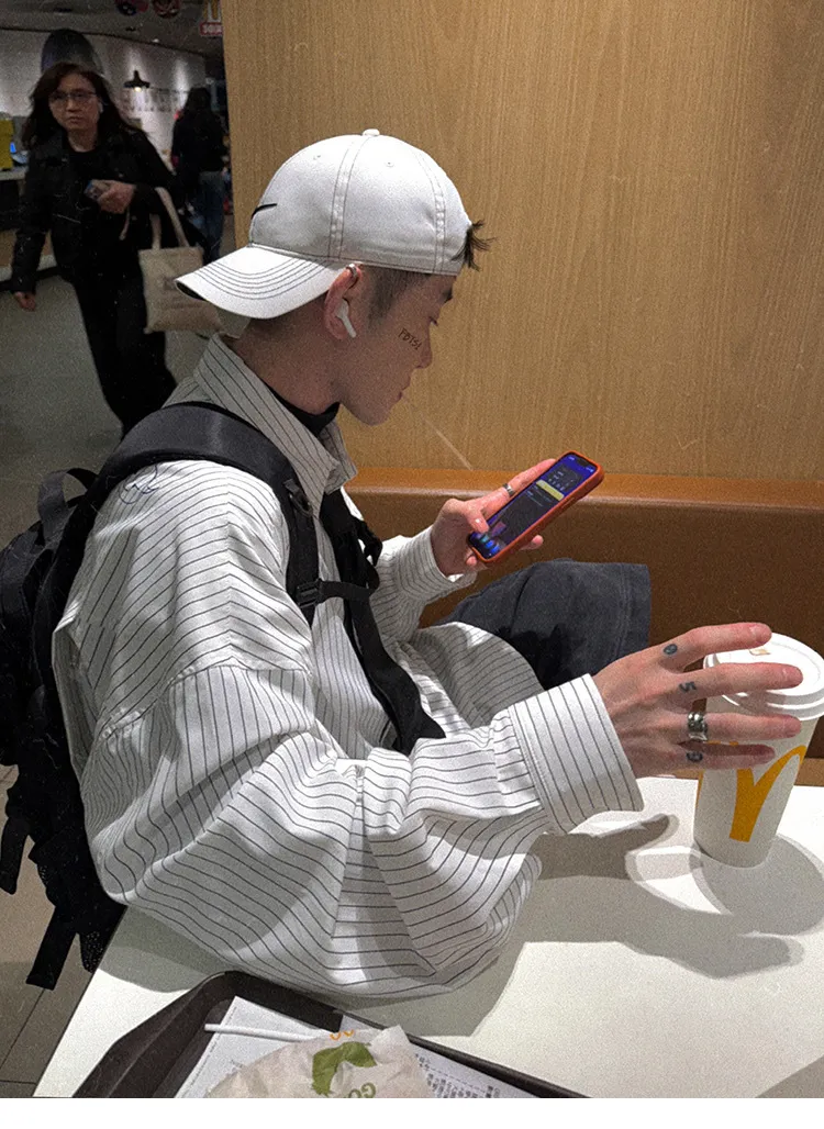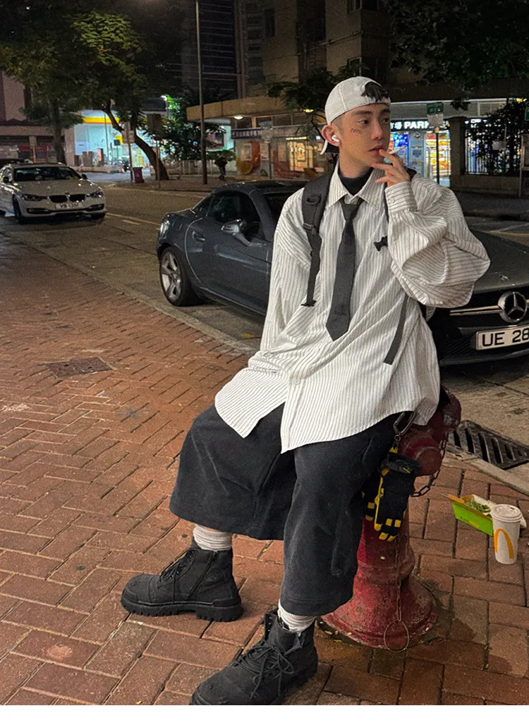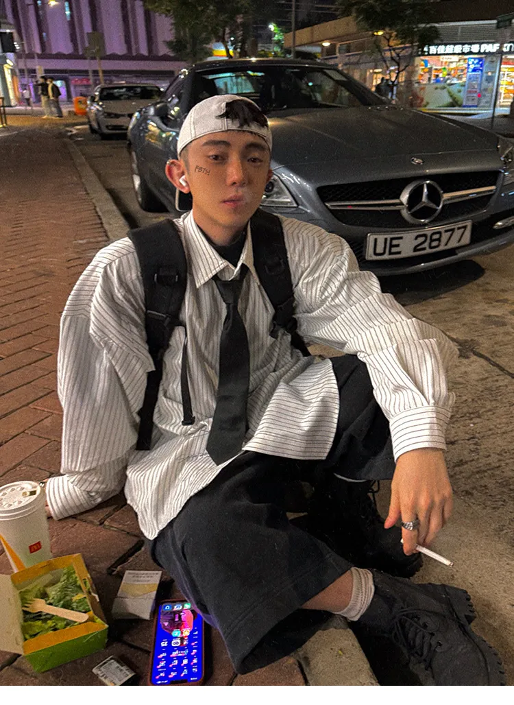 AUROCEAN 學院條紋 手繪塗鴉 OS 襯衫(白色)