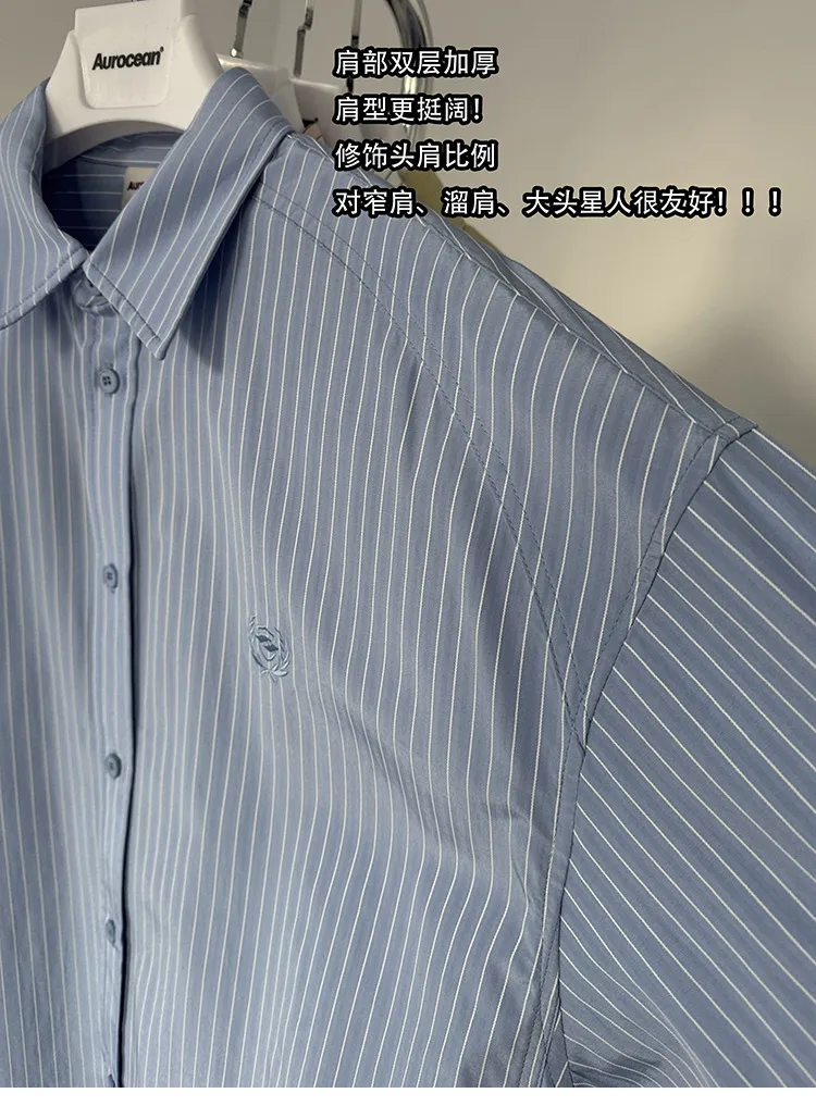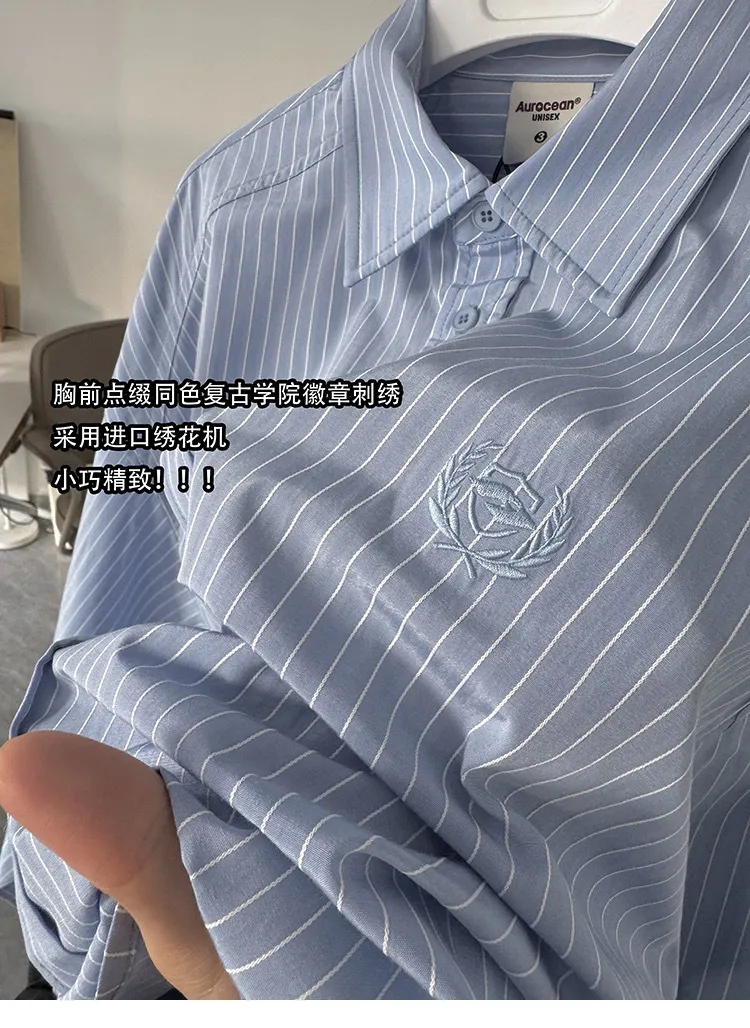 AUROCEAN 學院條紋 手繪塗鴉 OS 襯衫(淺藍色)