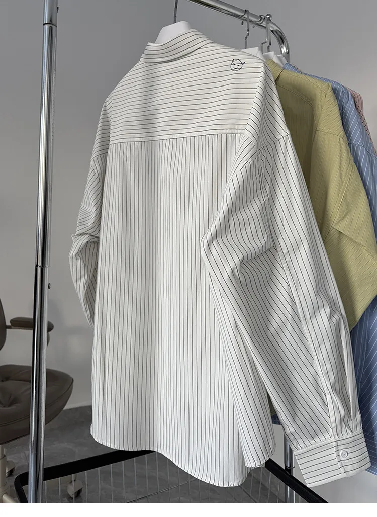 AUROCEAN 學院條紋 手繪塗鴉 OS 襯衫(淺黃色)