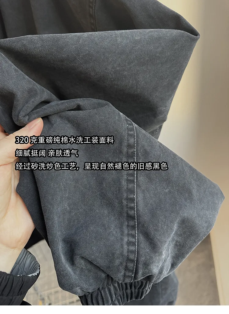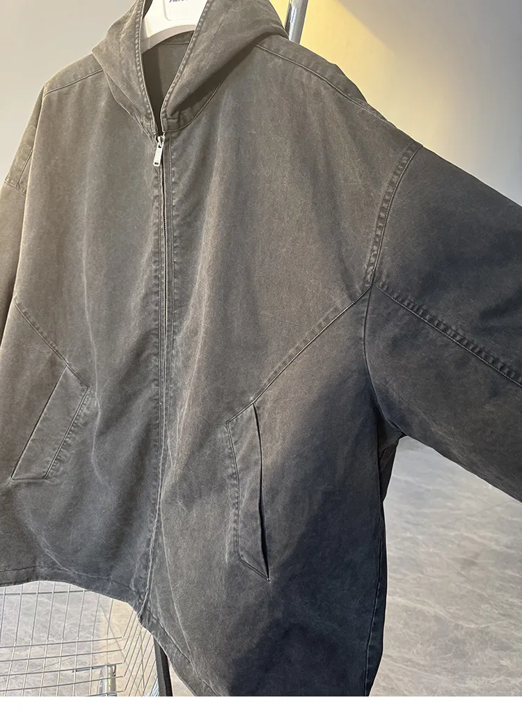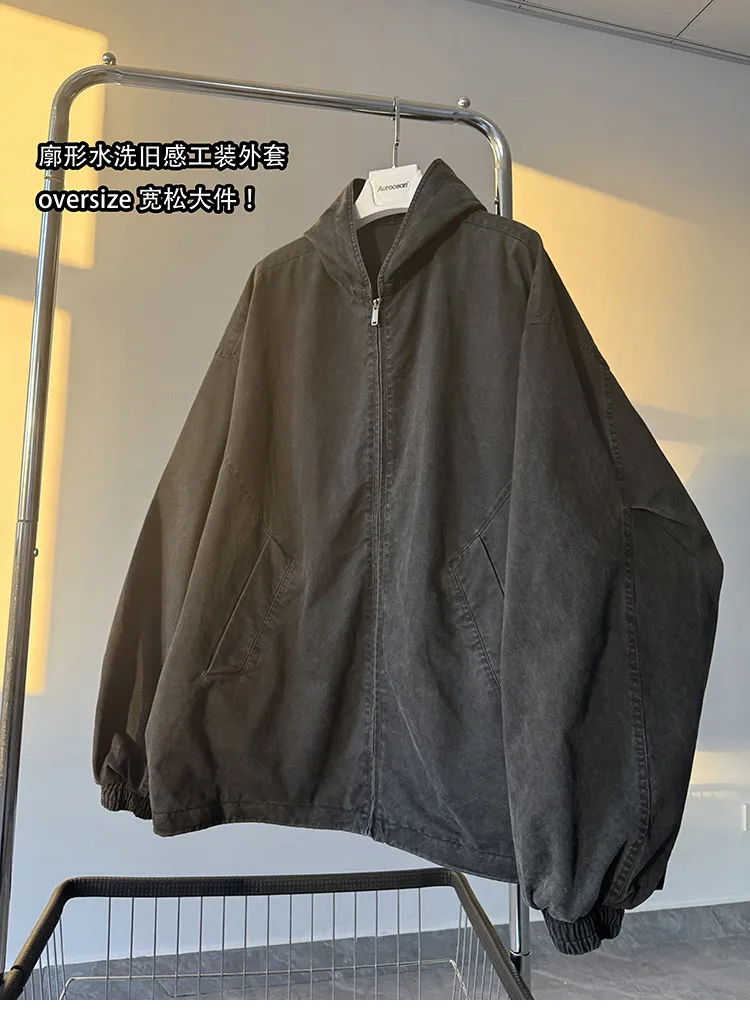 AUROCEAN 水洗舊感 廓形 純棉 外套(深灰色)