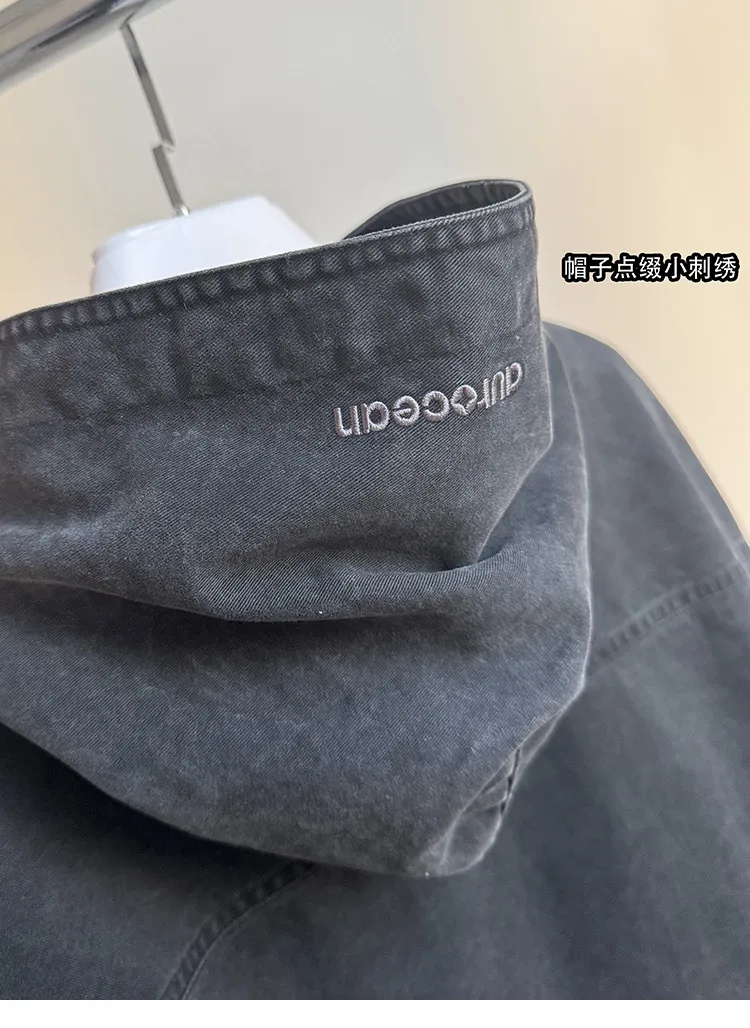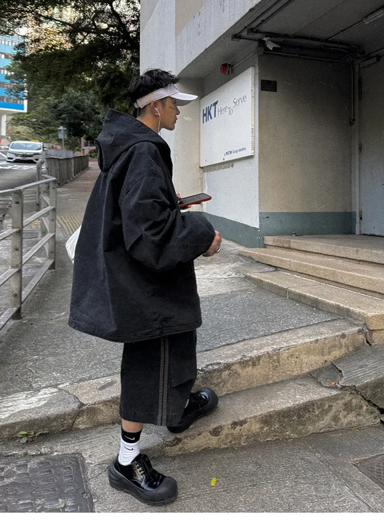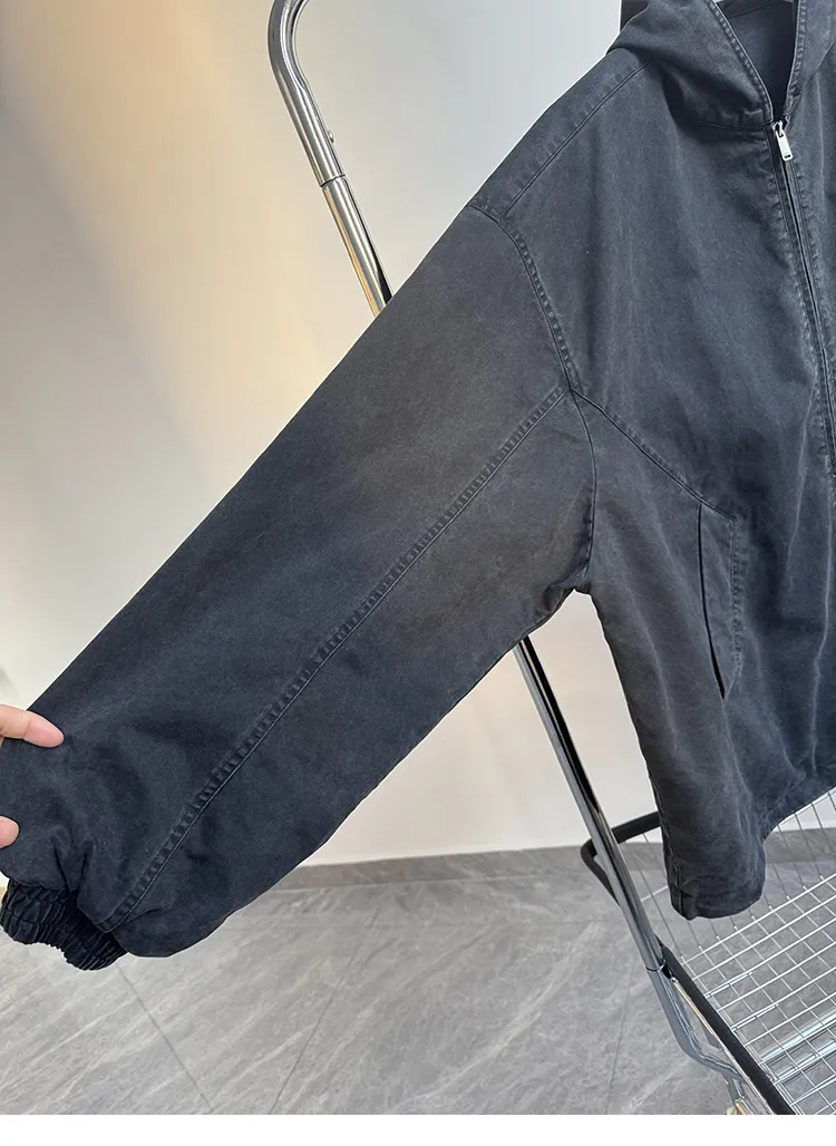 AUROCEAN 水洗舊感 工裝連帽 防風 外套(黑色)