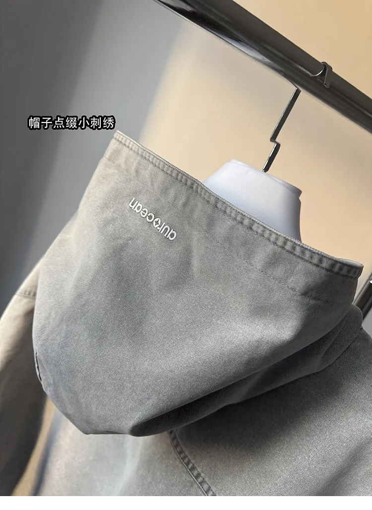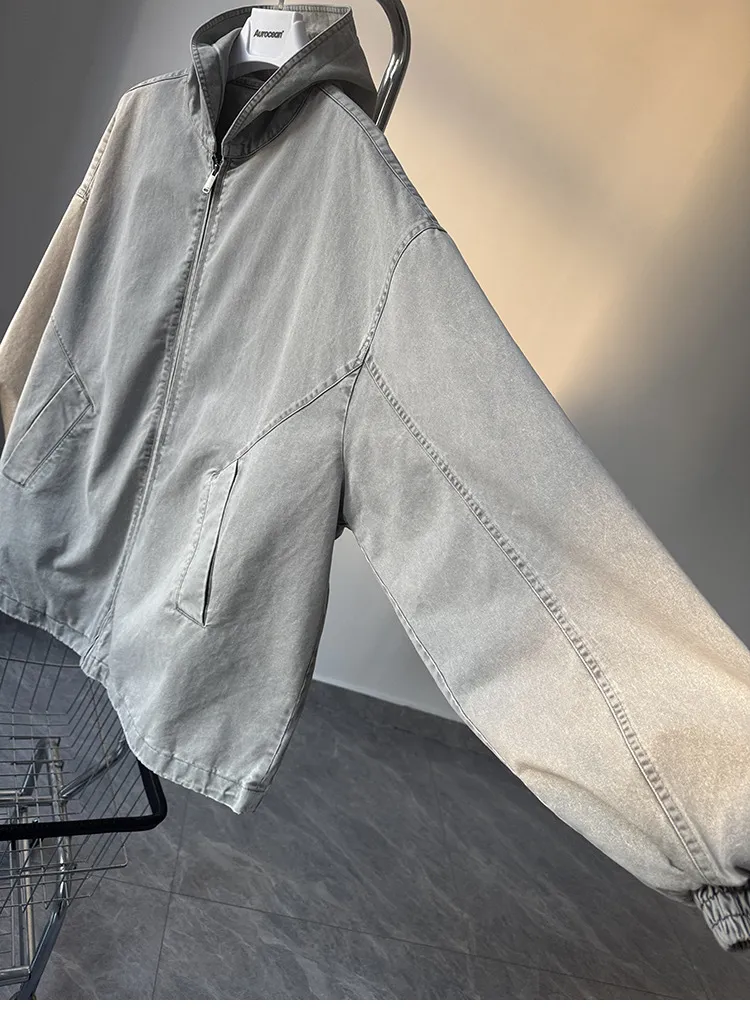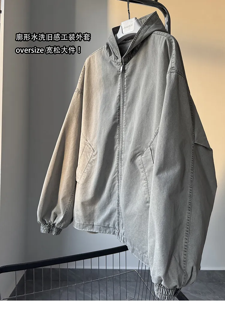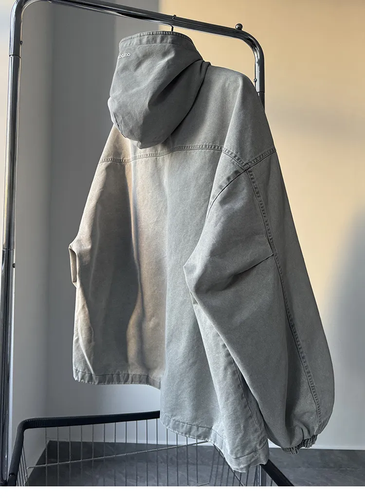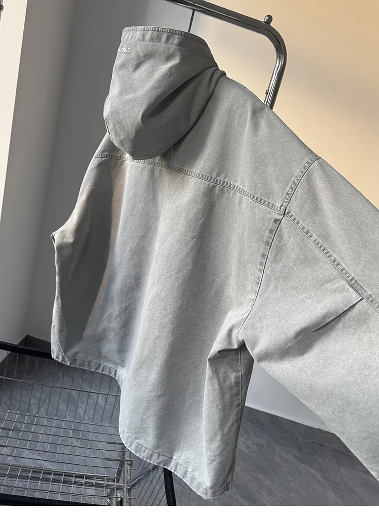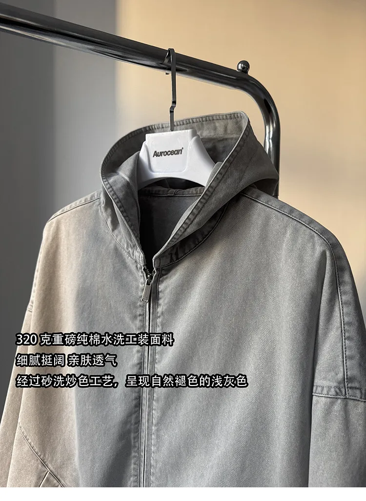 AUROCEAN 水洗舊感 工裝連帽 防風 外套(淺灰色)