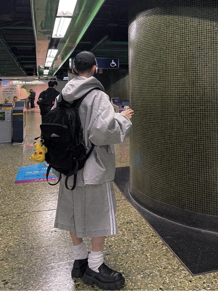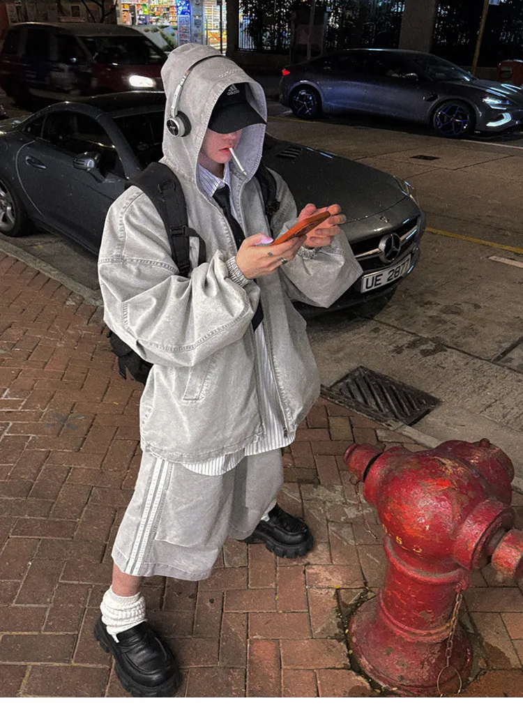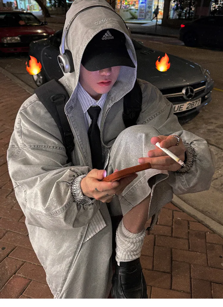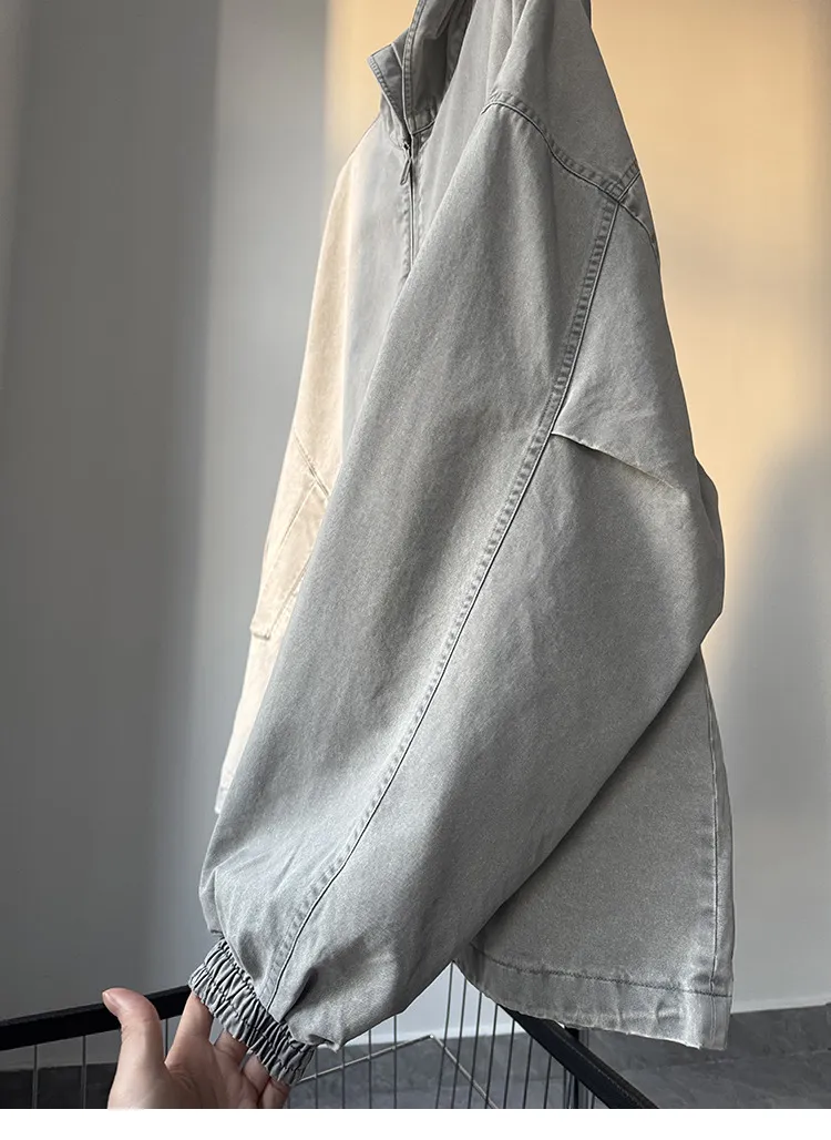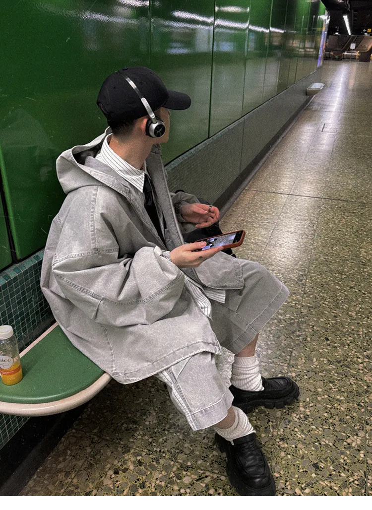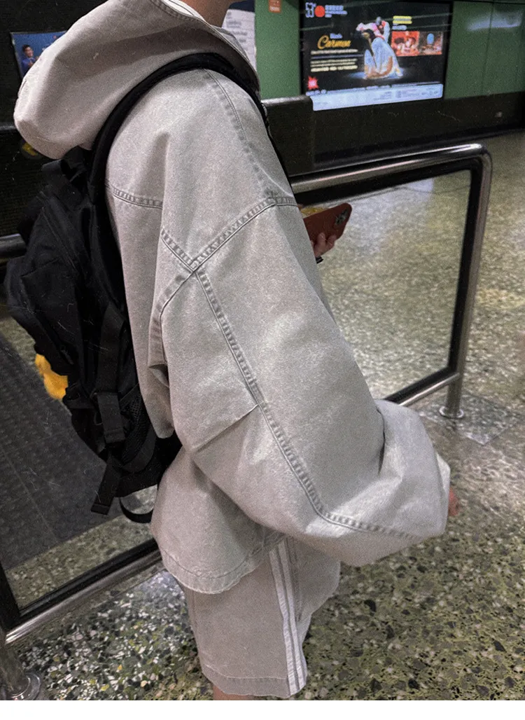 AUROCEAN 水洗舊感 工裝連帽 防風 外套(淺灰色)