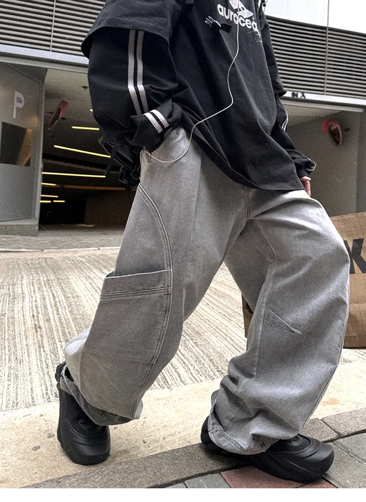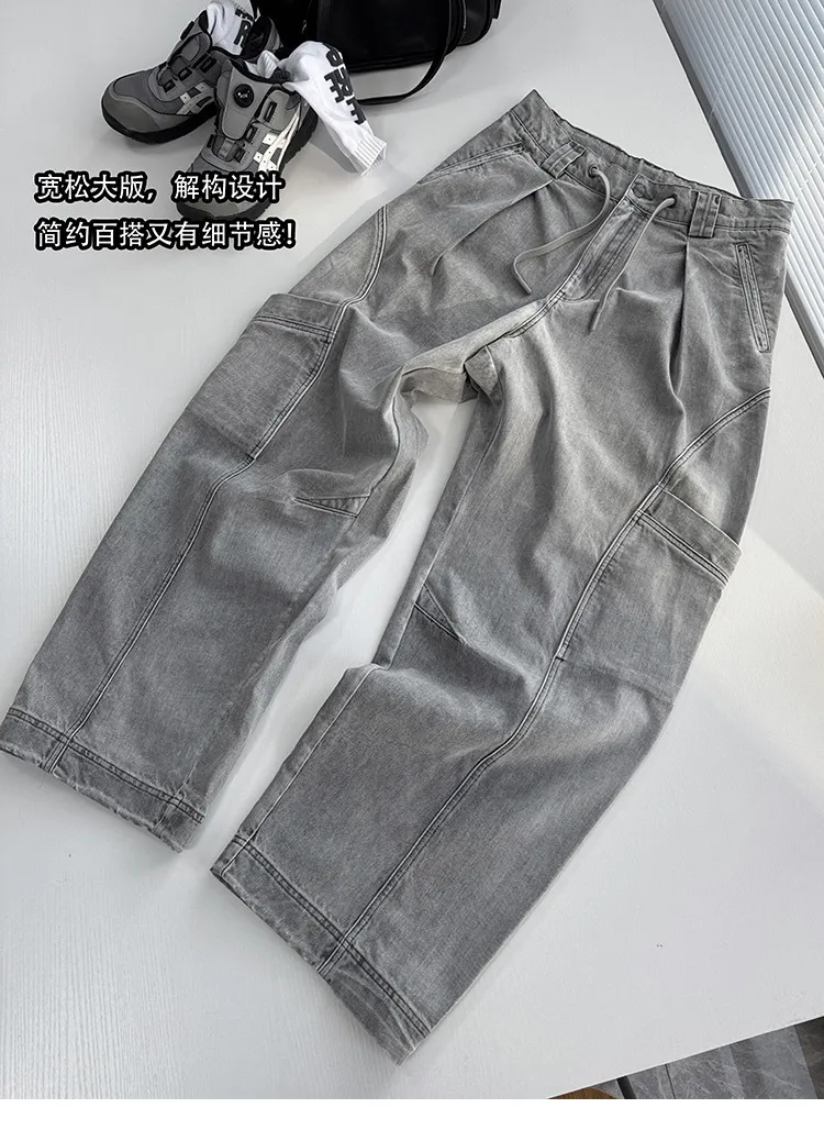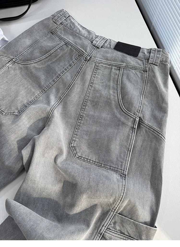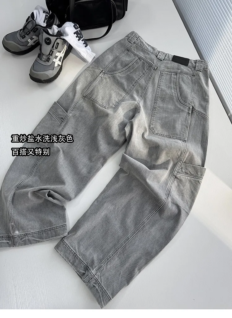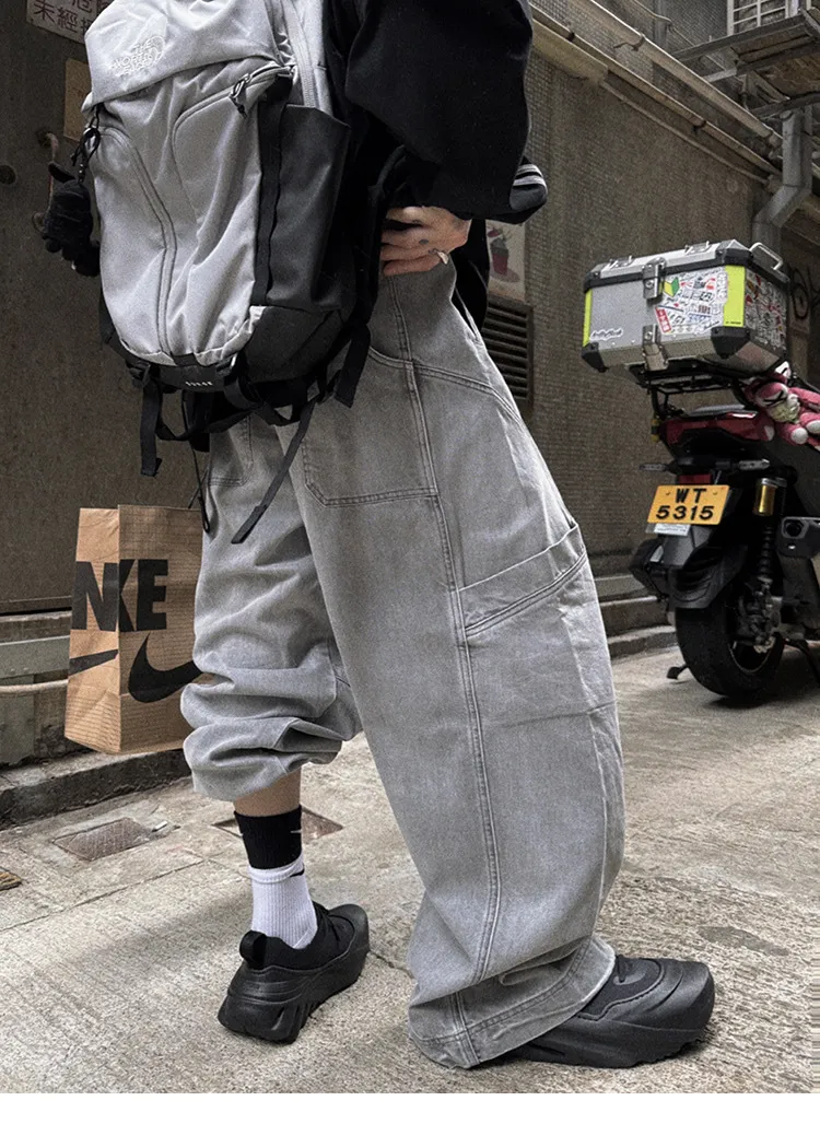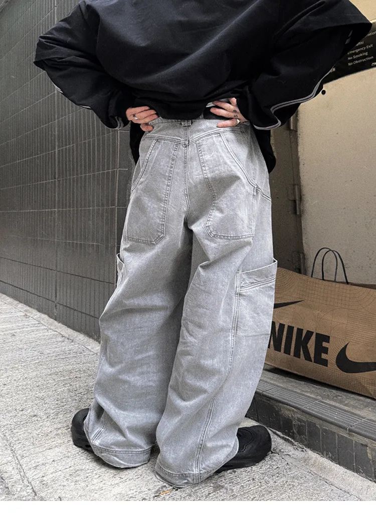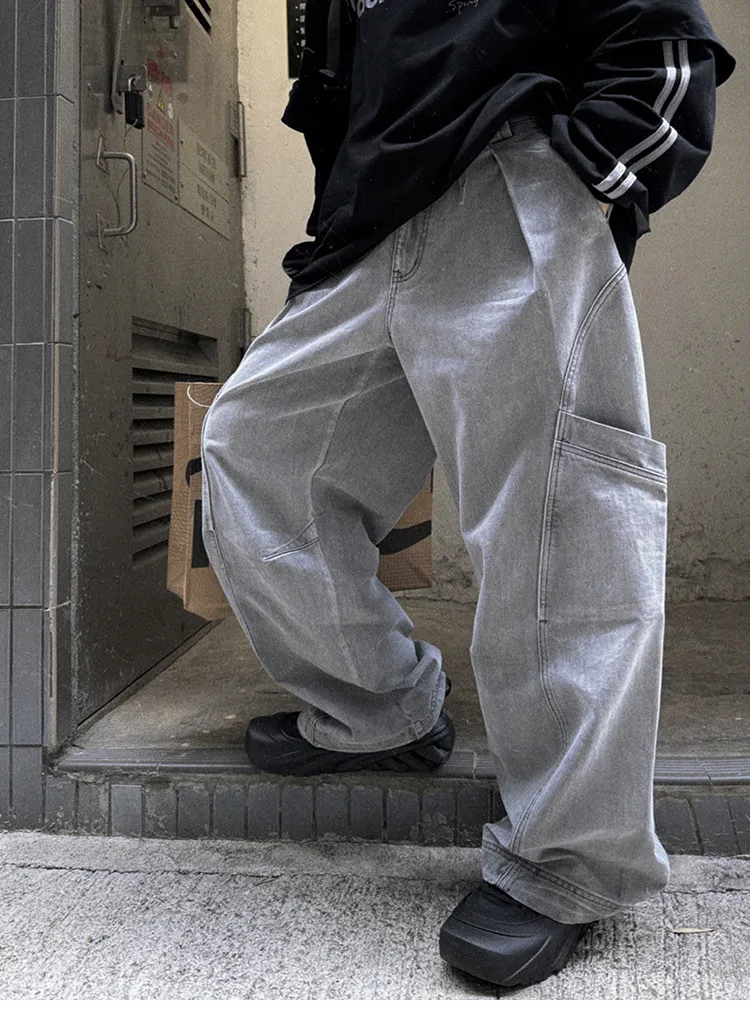 AUROCEAN 370G 水洗灰 大口袋 工裝 長褲(灰色)