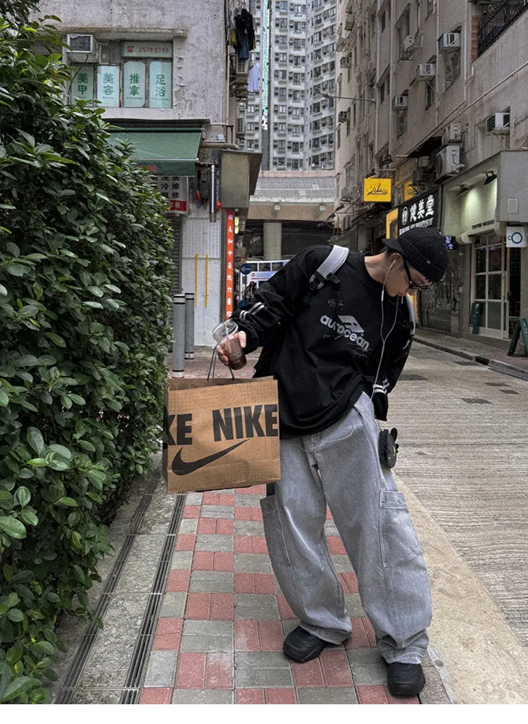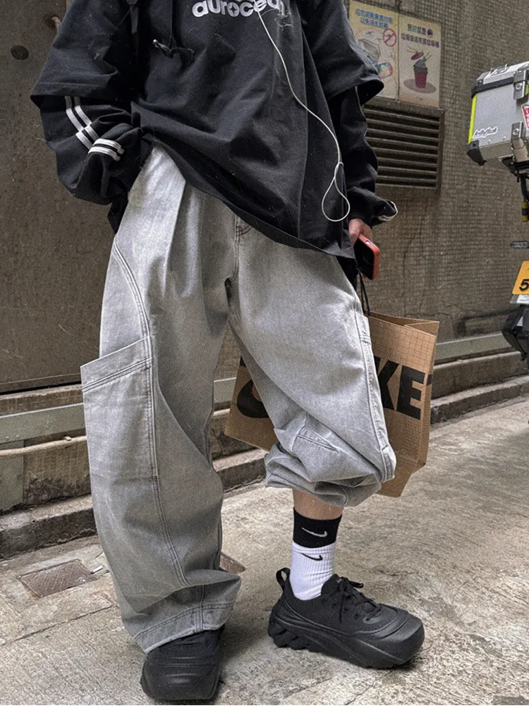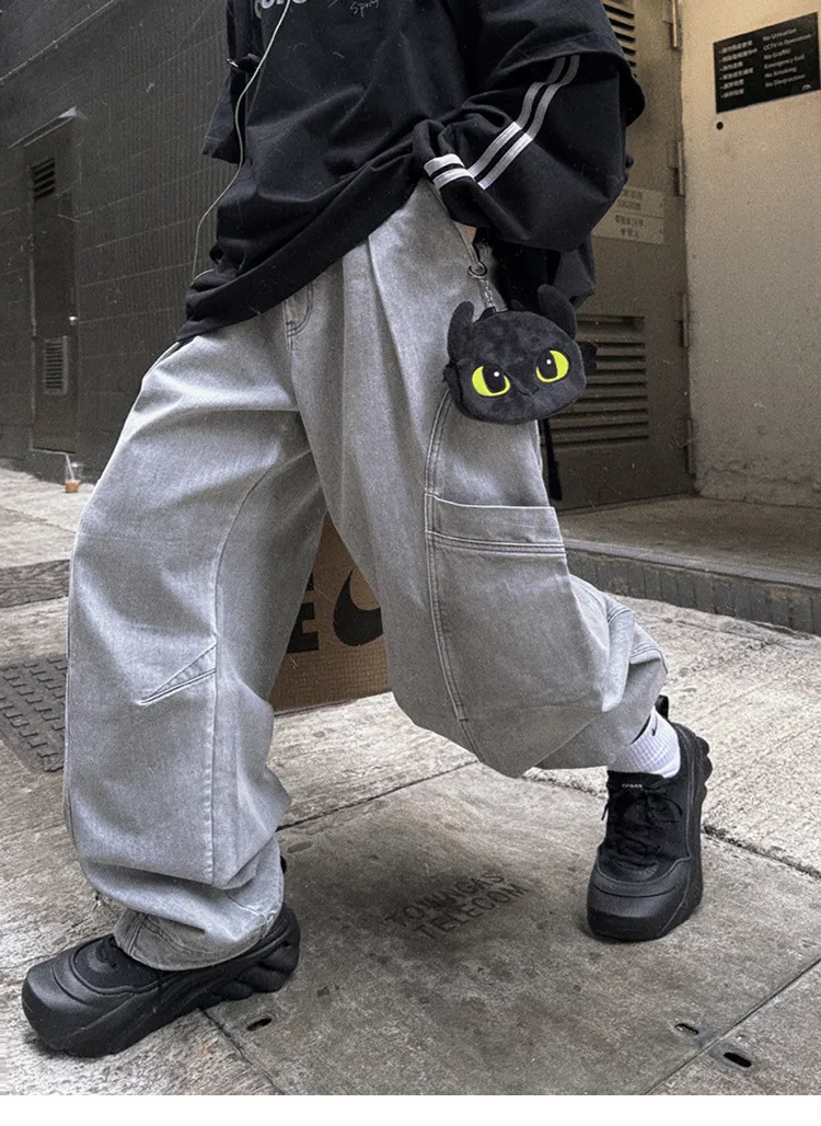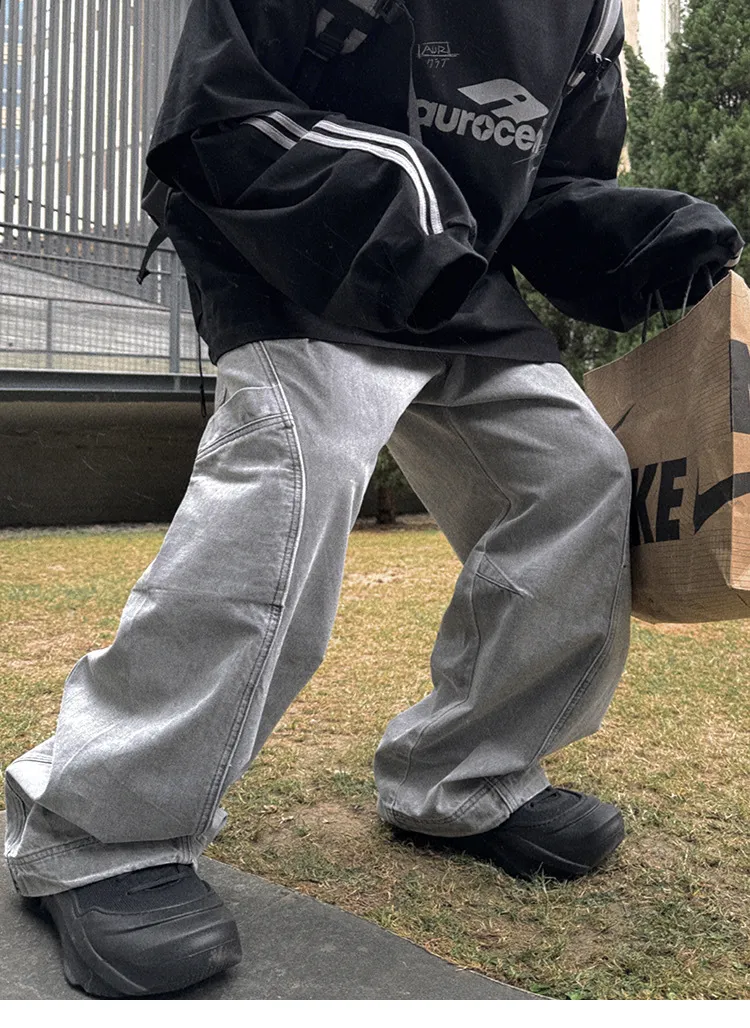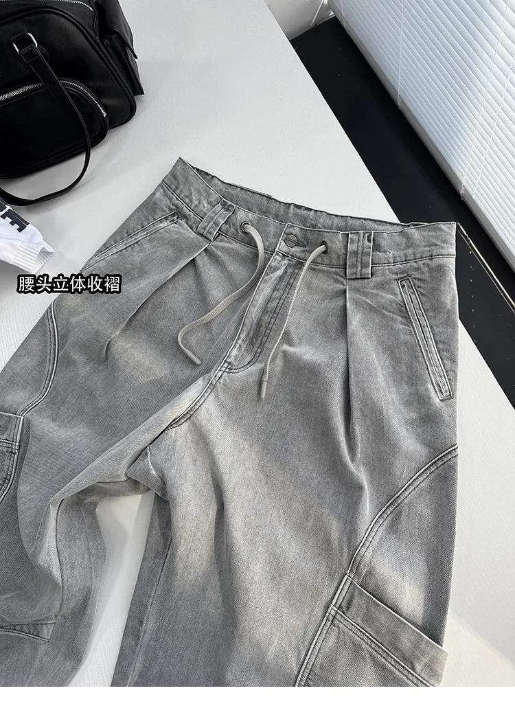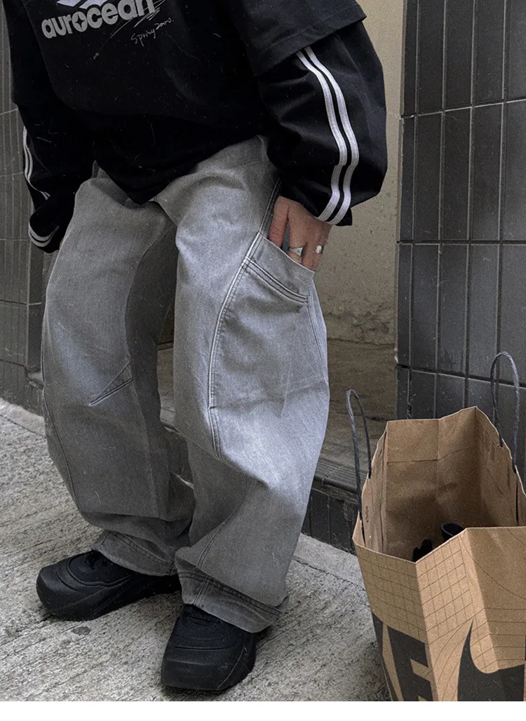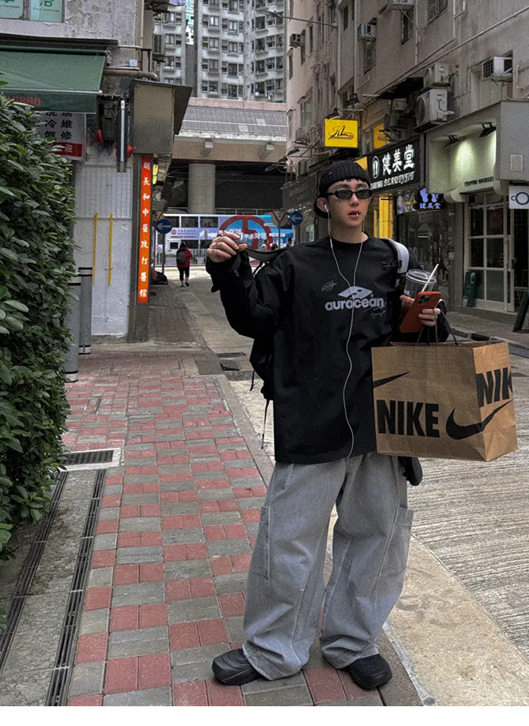 AUROCEAN 370G 水洗灰 大口袋 工裝 長褲(灰色)