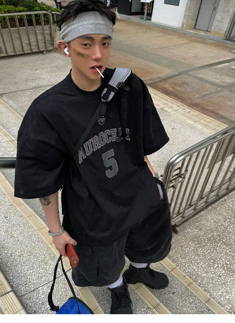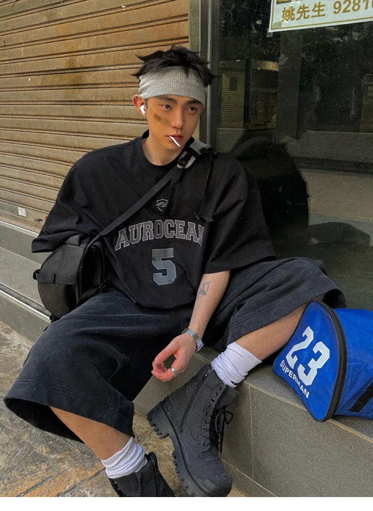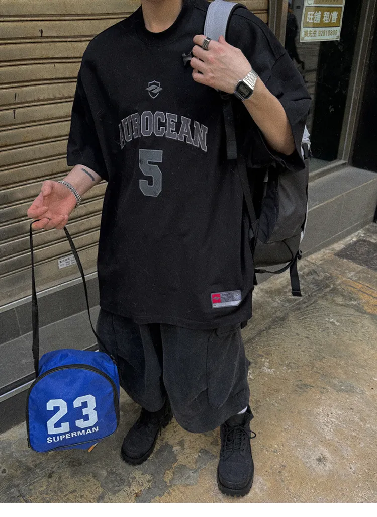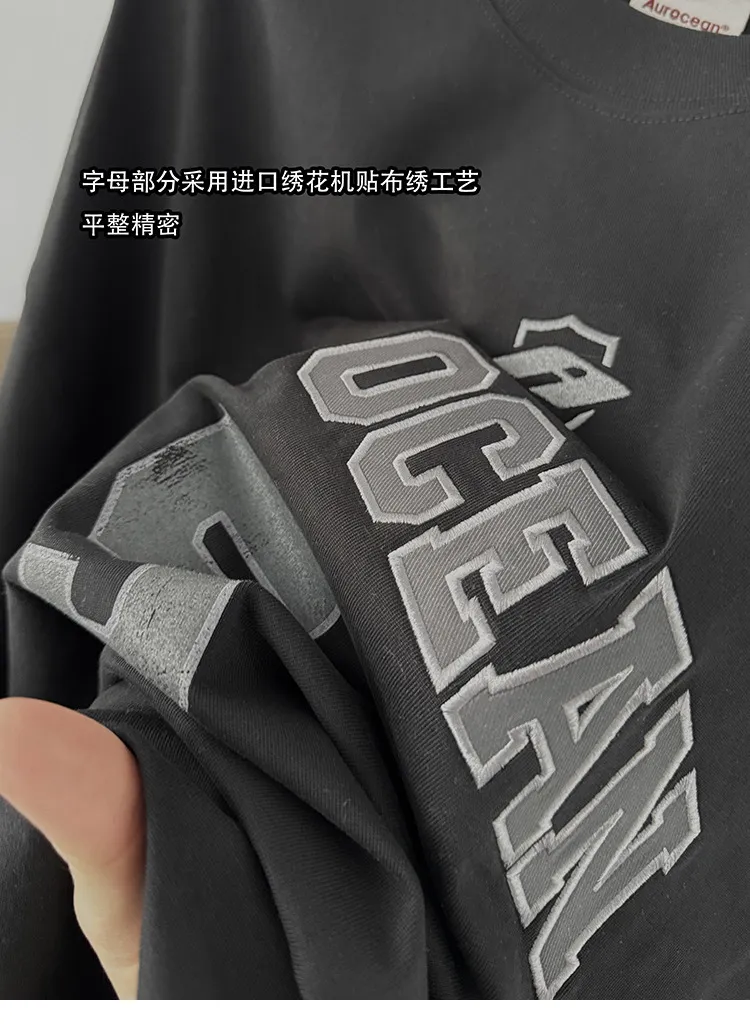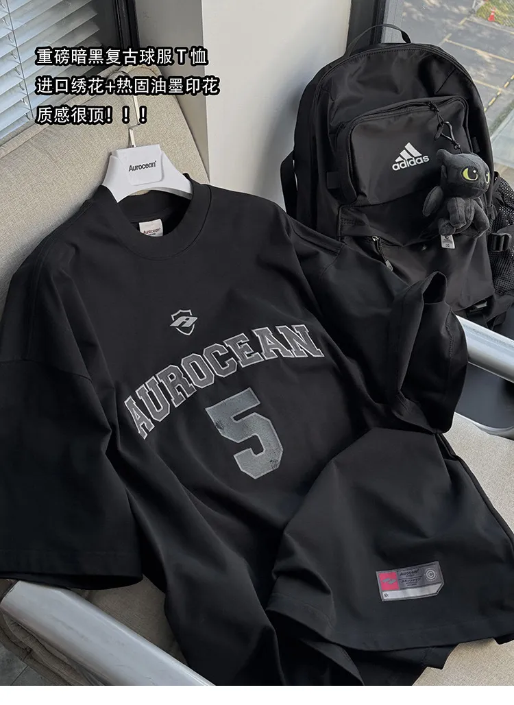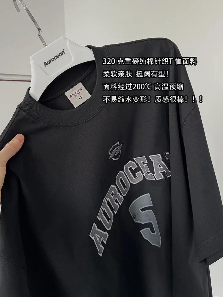 AUROCEAN 巴黎平替 OS重磅 刺繡球衣 短袖(黑色)