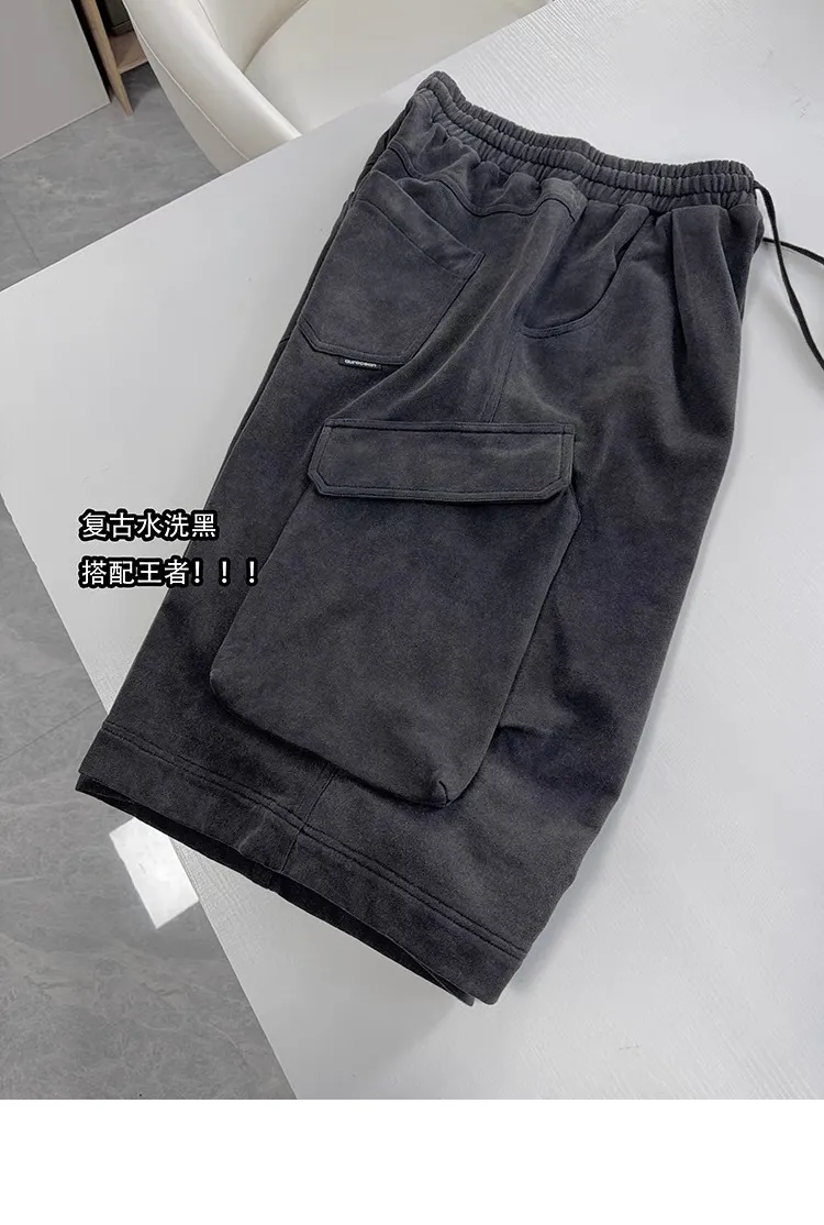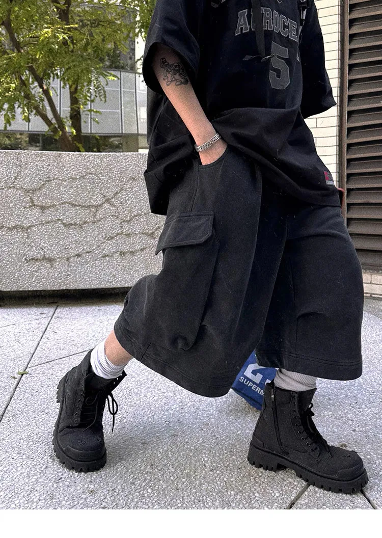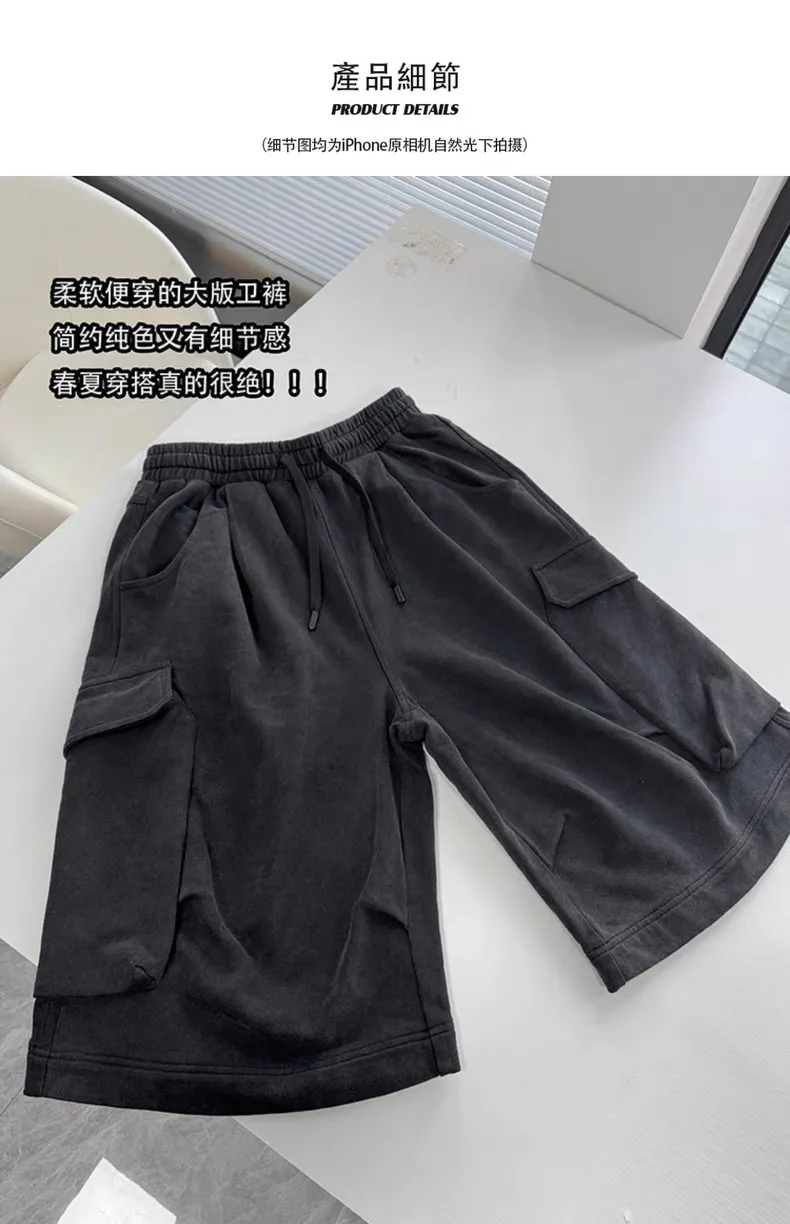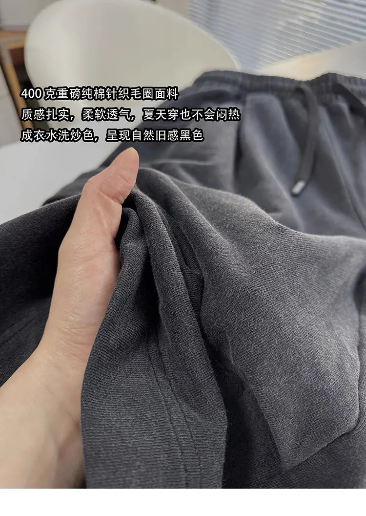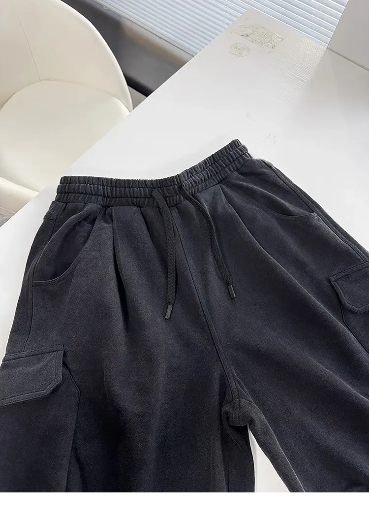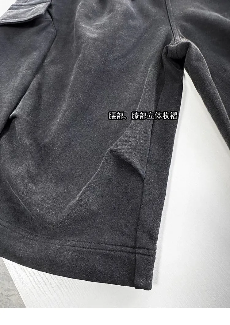 AUROCEAN 搭配王者 重磅純棉 立體收褶 七分褲 (水洗黑色)