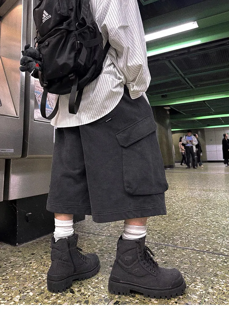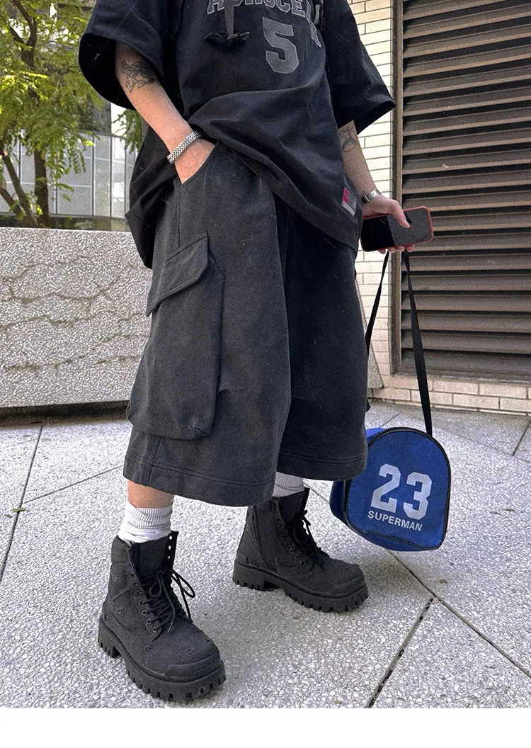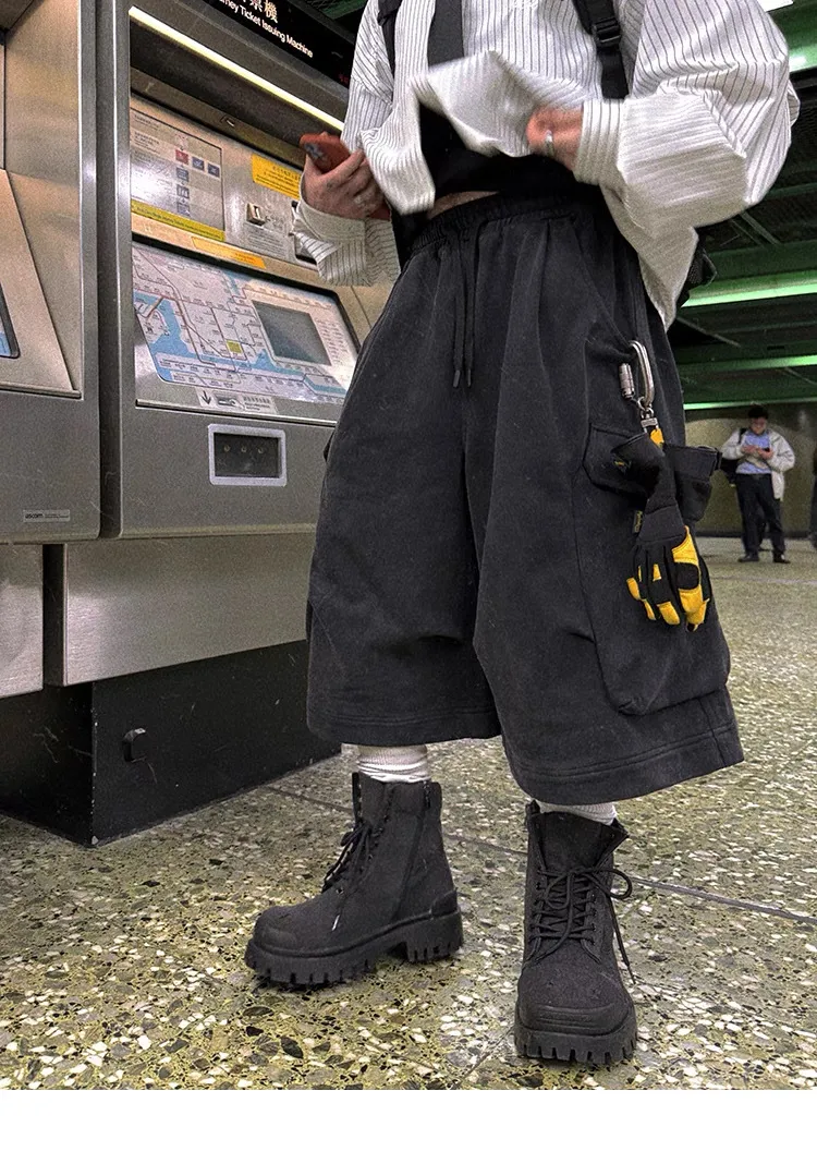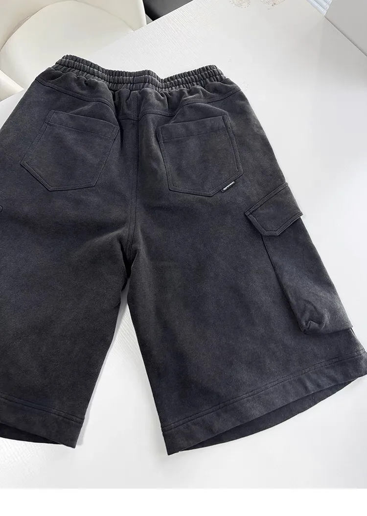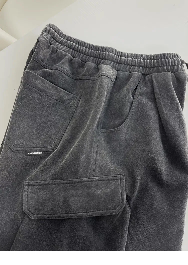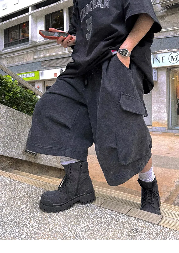 AUROCEAN 搭配王者 重磅純棉 立體收褶 七分褲 (水洗黑色)