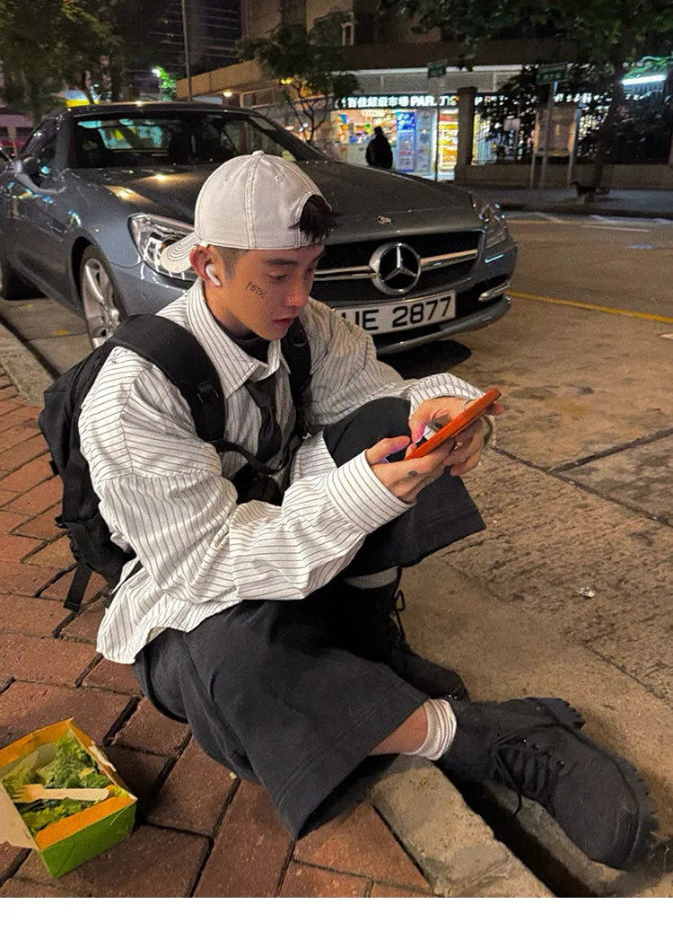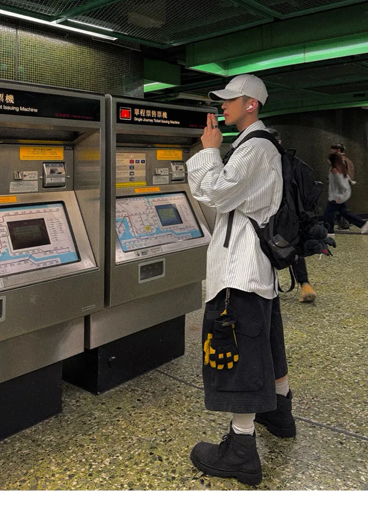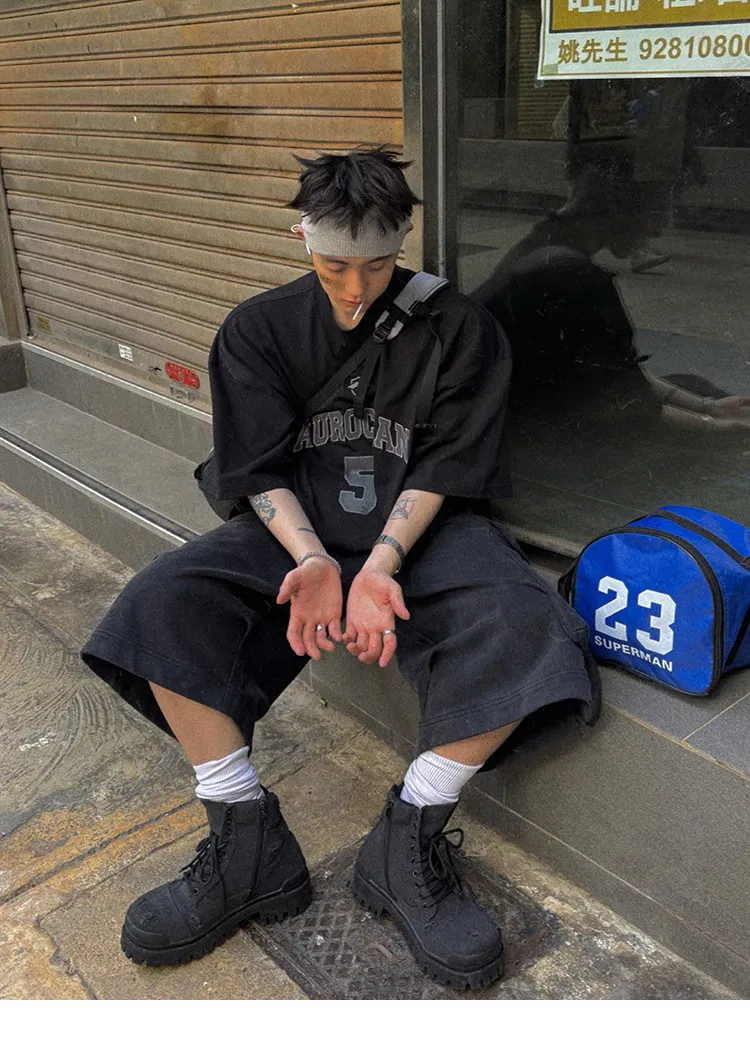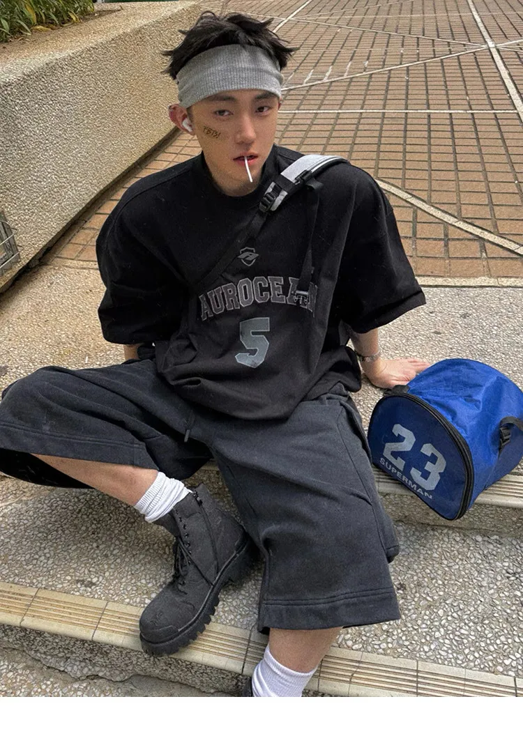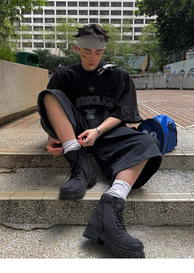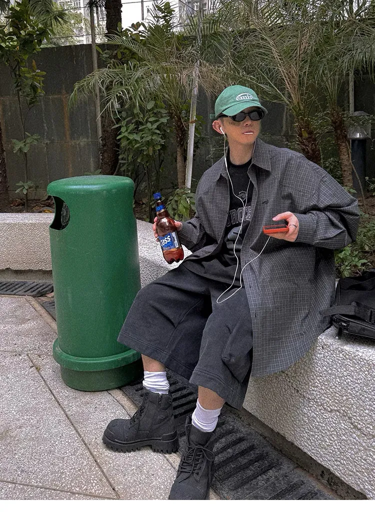 AUROCEAN 搭配王者 重磅純棉 立體收褶 七分褲 (水洗黑色)