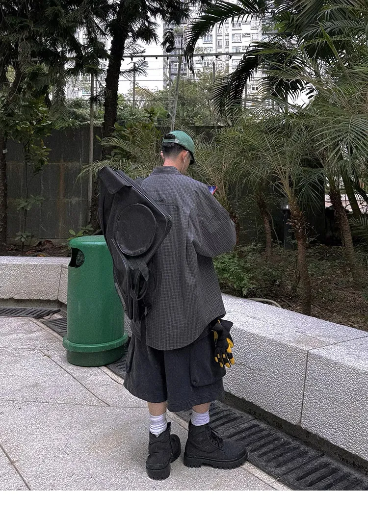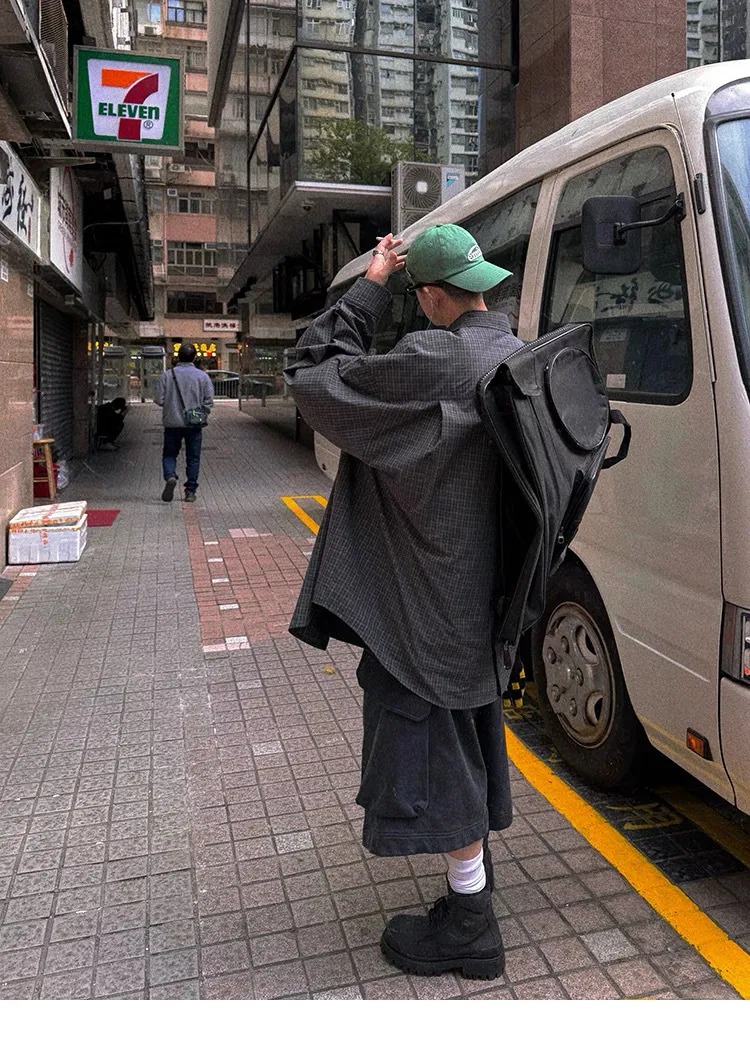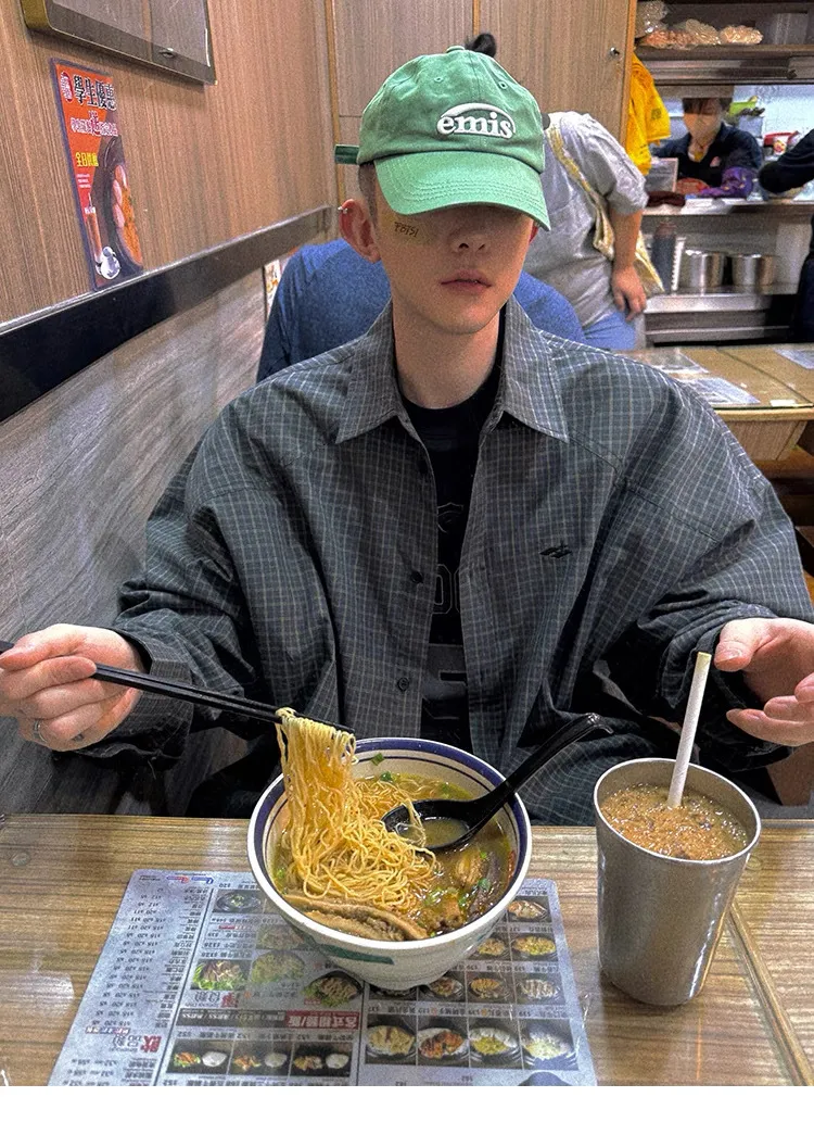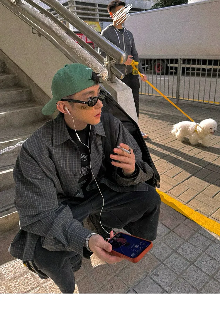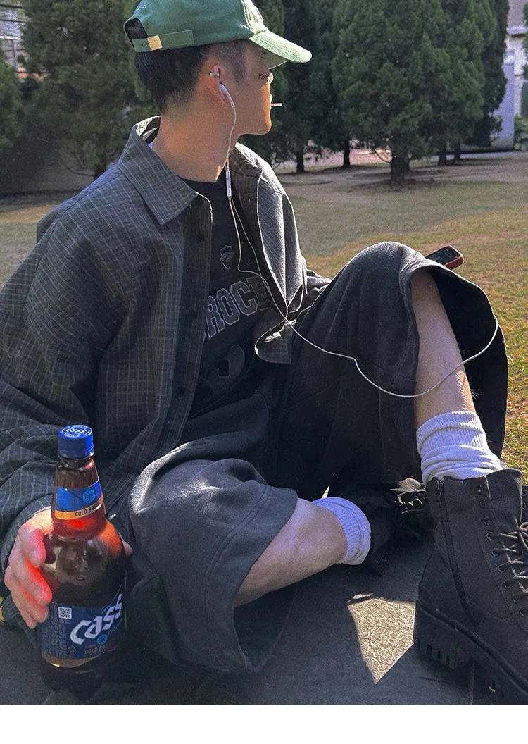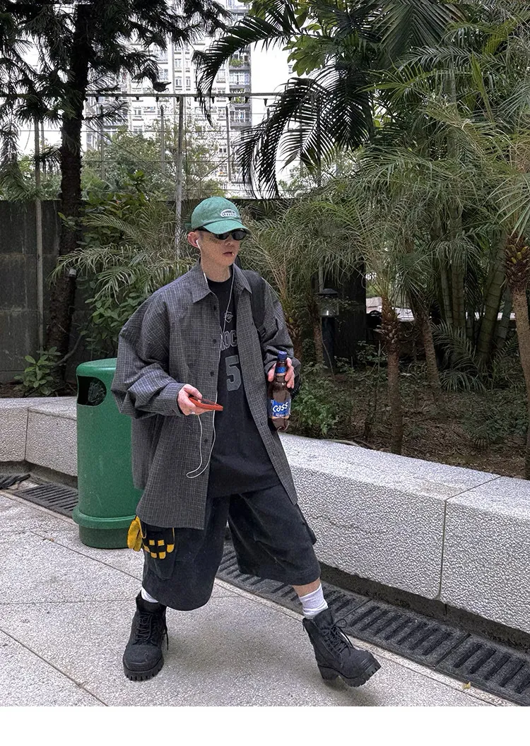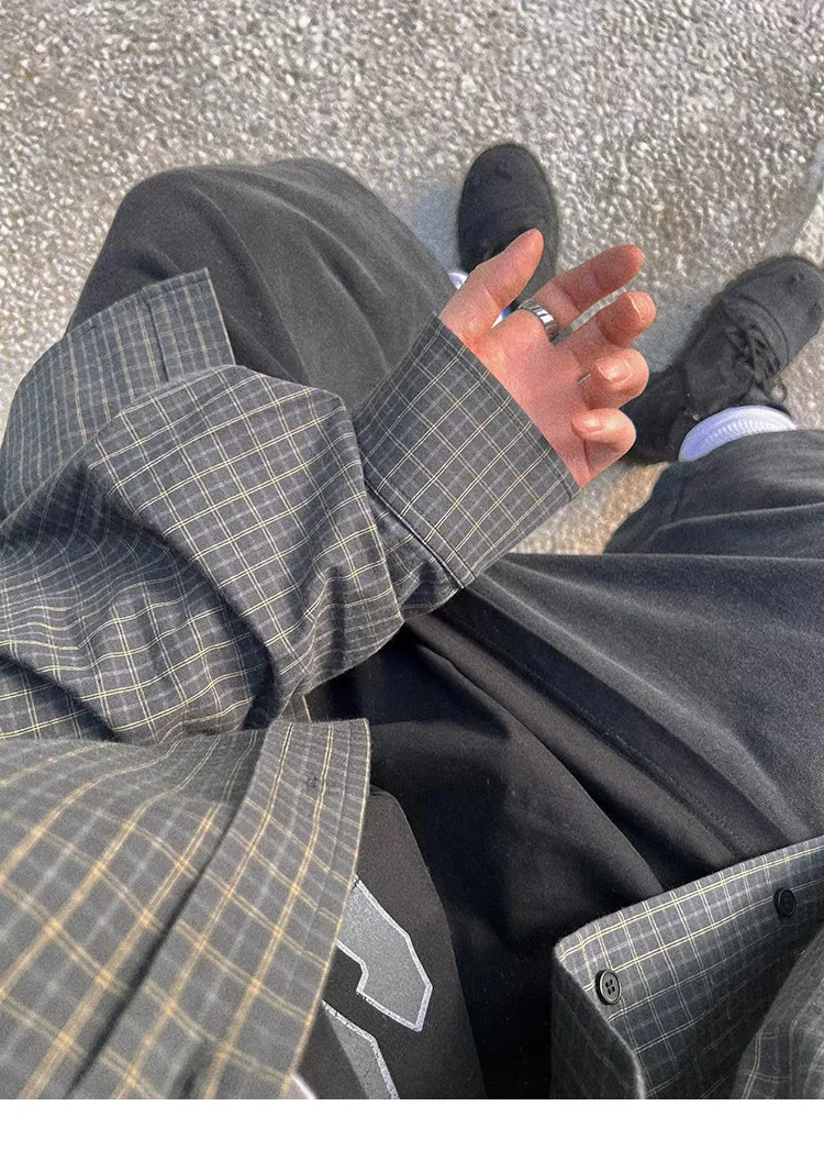 AUROCEAN 港風少年 寬肩闊型 撞色格紋 襯衫(灰綠色)