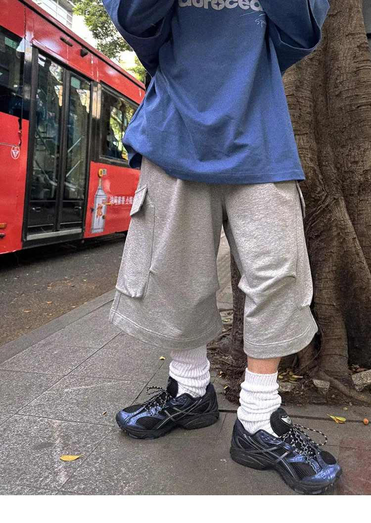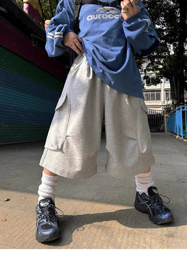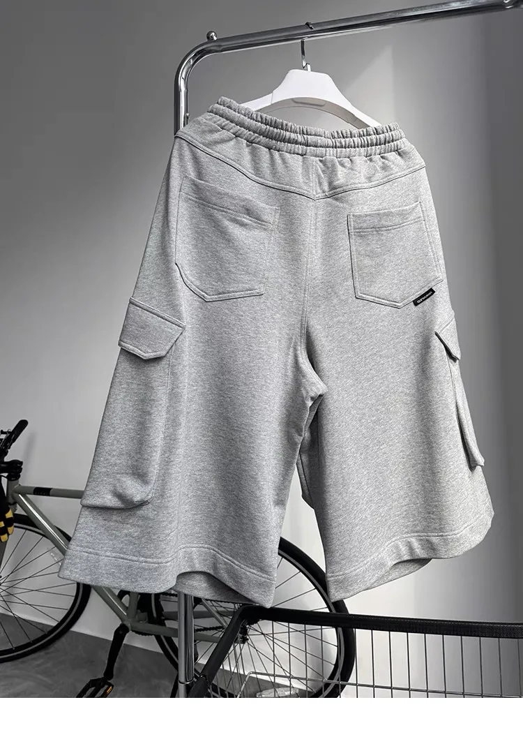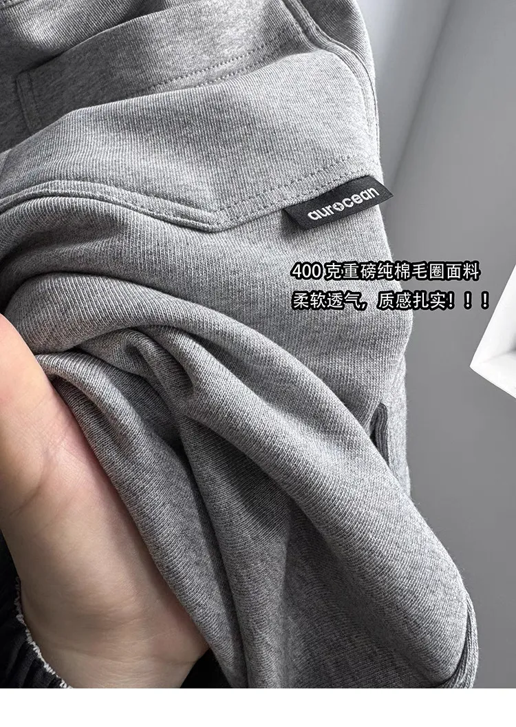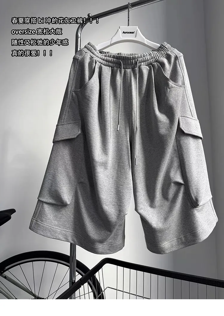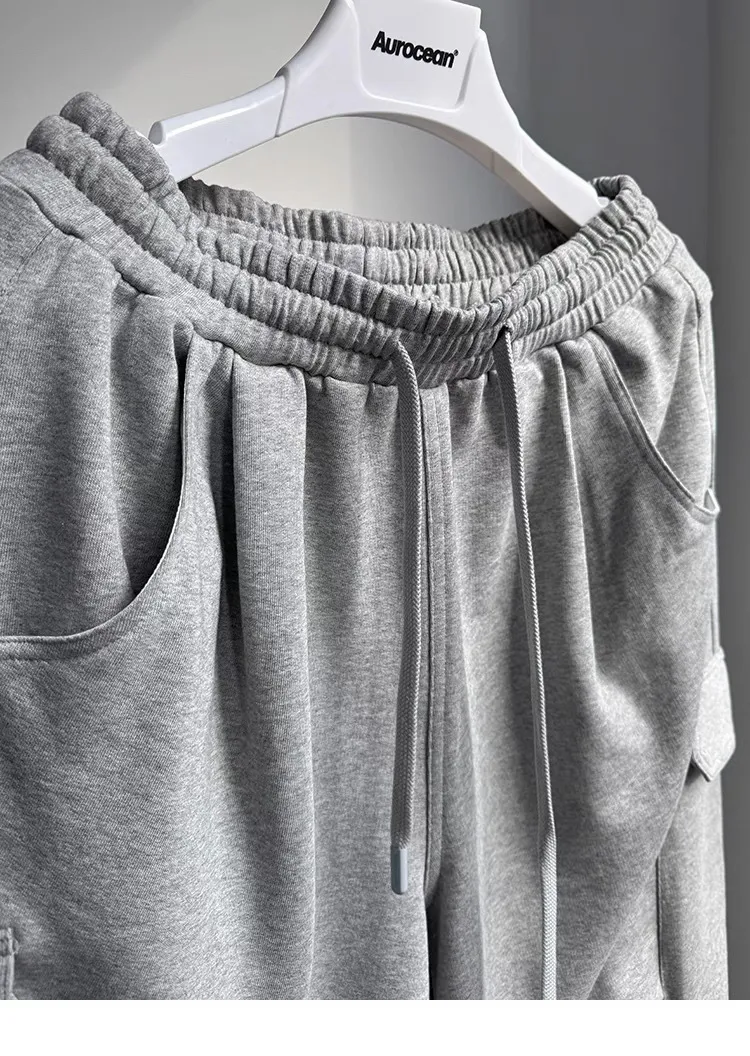 AUROCEAN 搭配王者 重磅純棉 立體收褶 七分褲(花灰色)