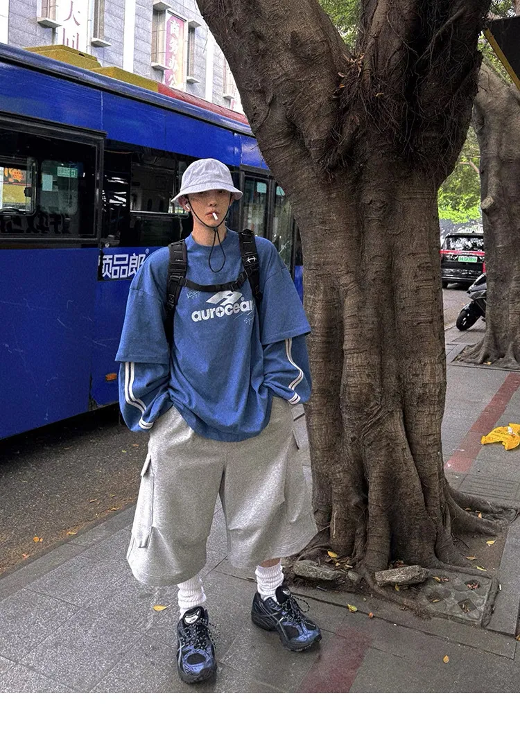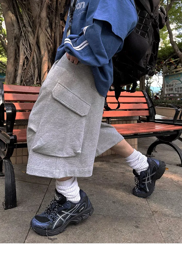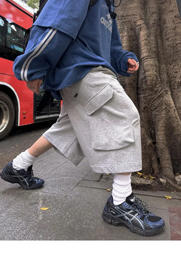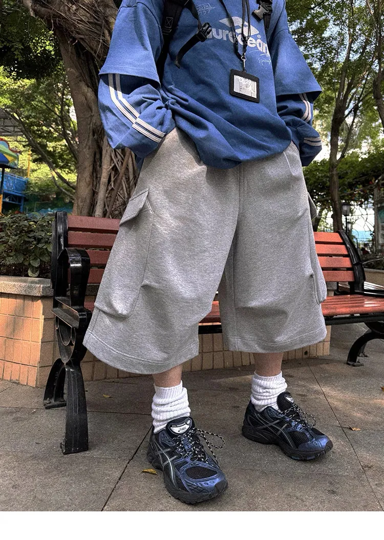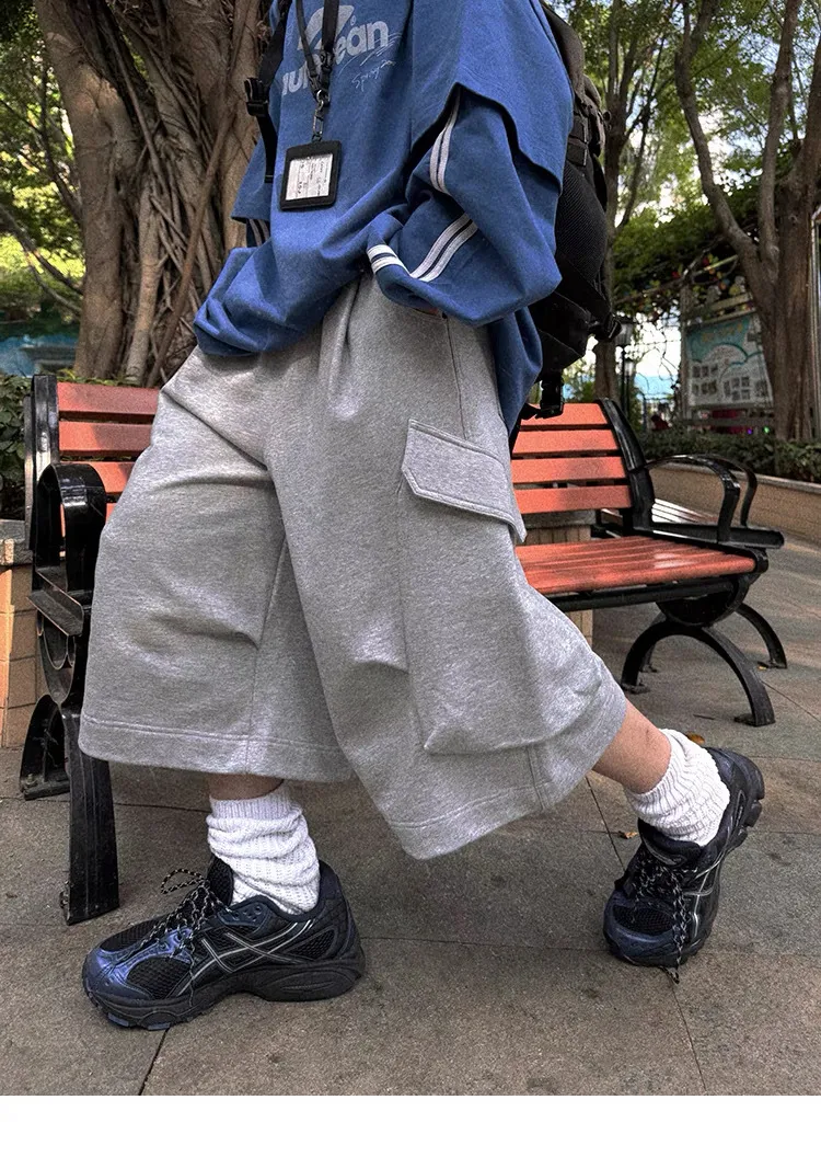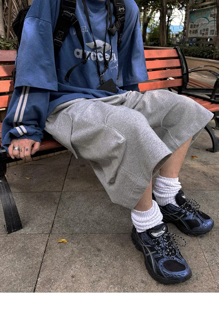 AUROCEAN 搭配王者 重磅純棉 立體收褶 七分褲(花灰色)
