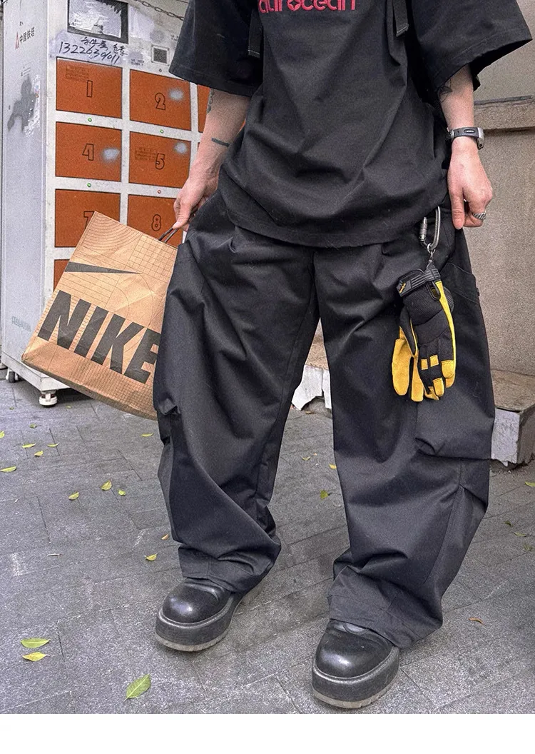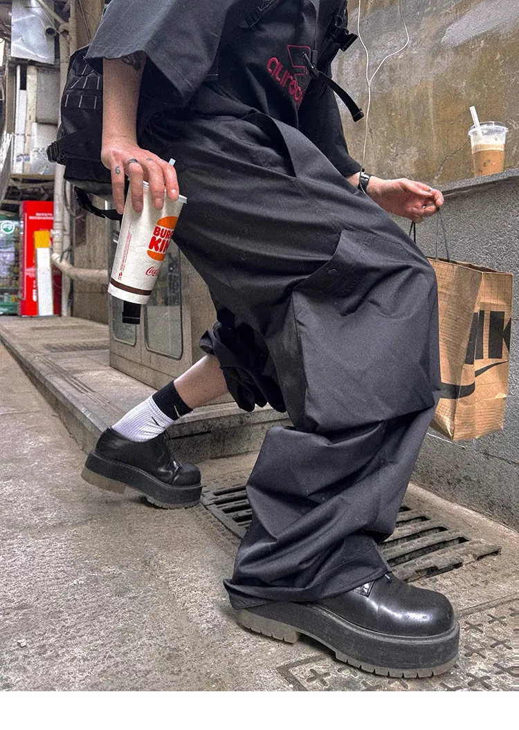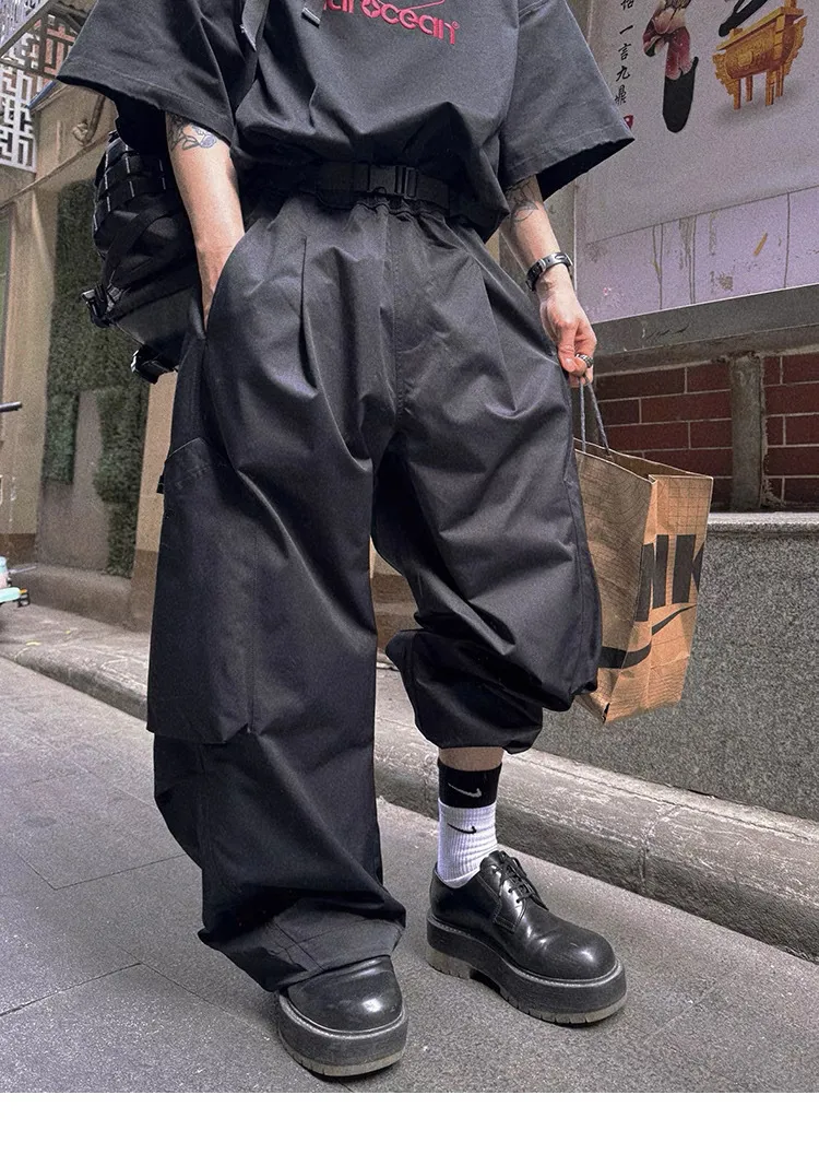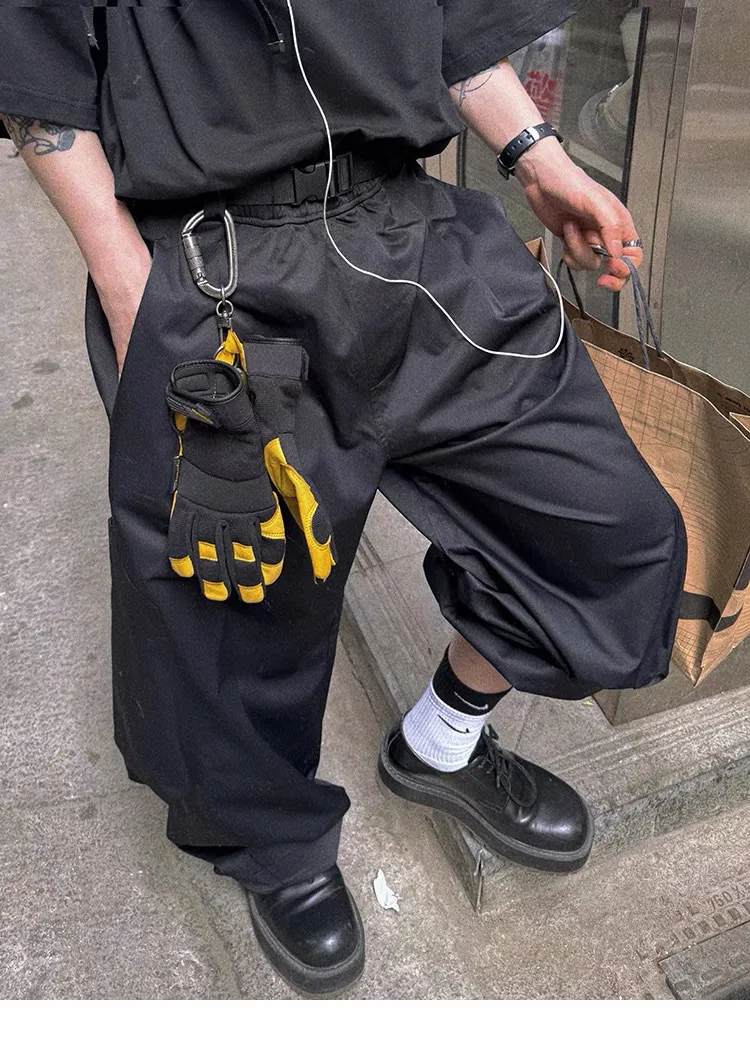 AUROCEAN 搭配王者 重磅純棉 立體收褶 七分褲 (水洗黑色)