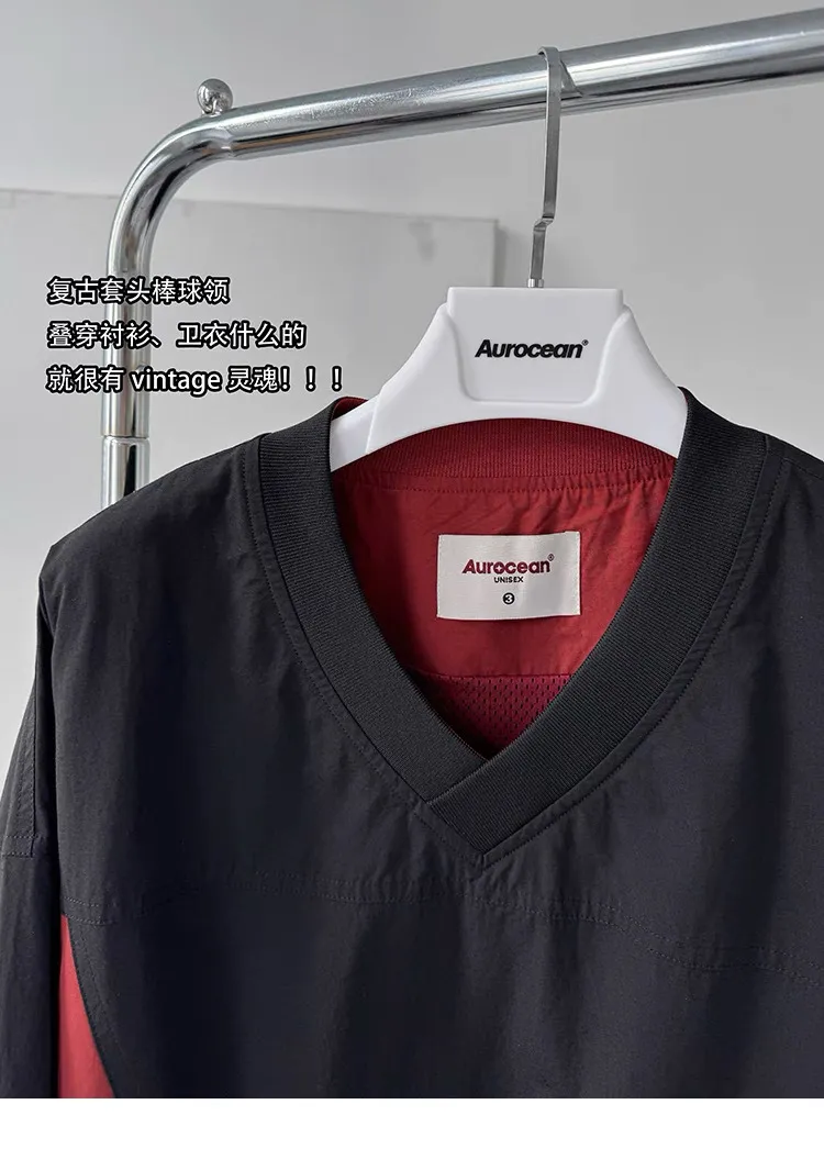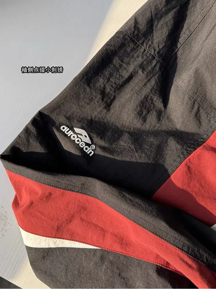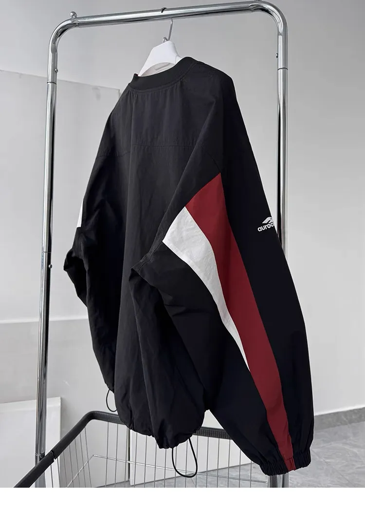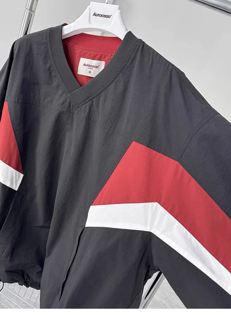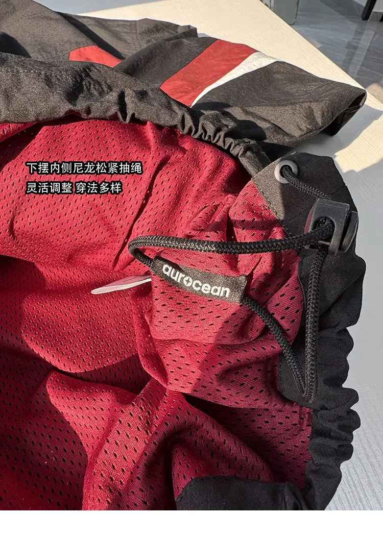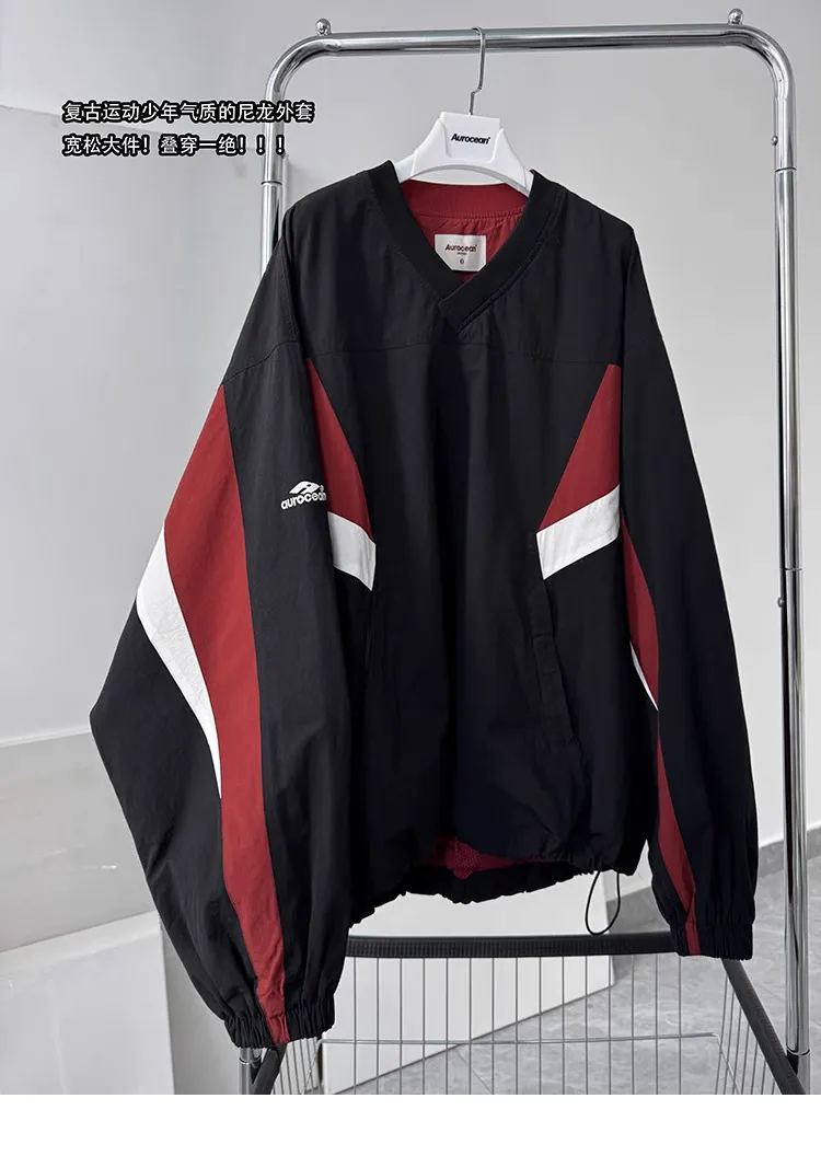 AUROCEAN 衝鋒少年 撞色拼接 尼龍 長袖(黑色)