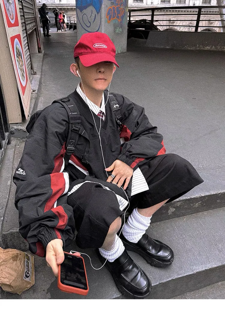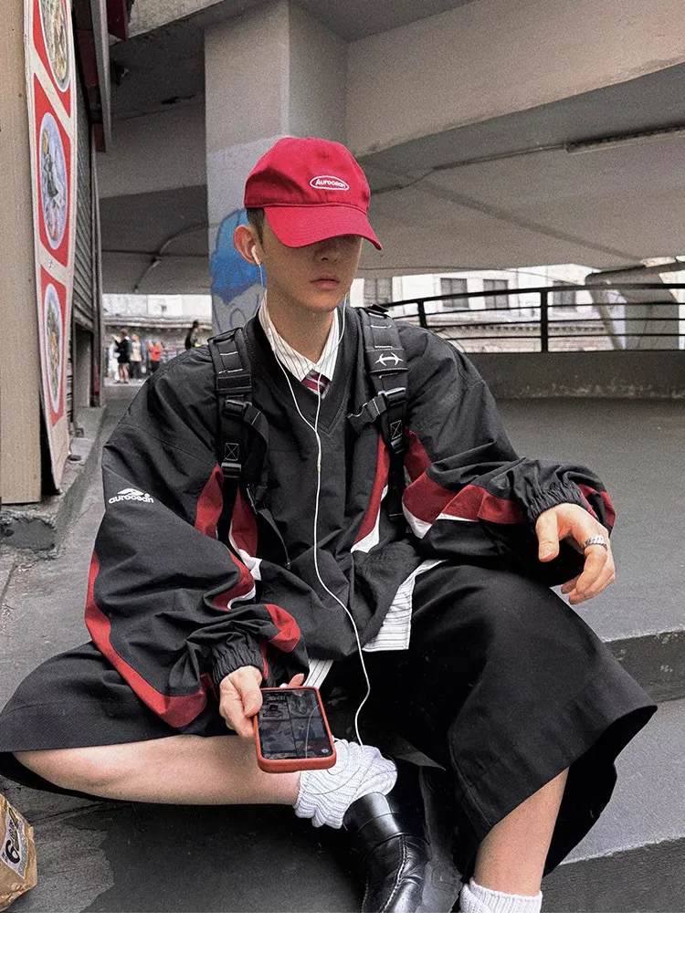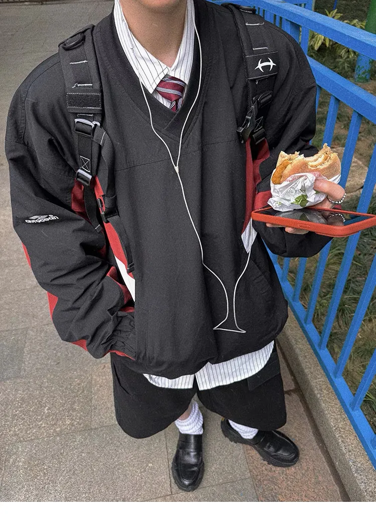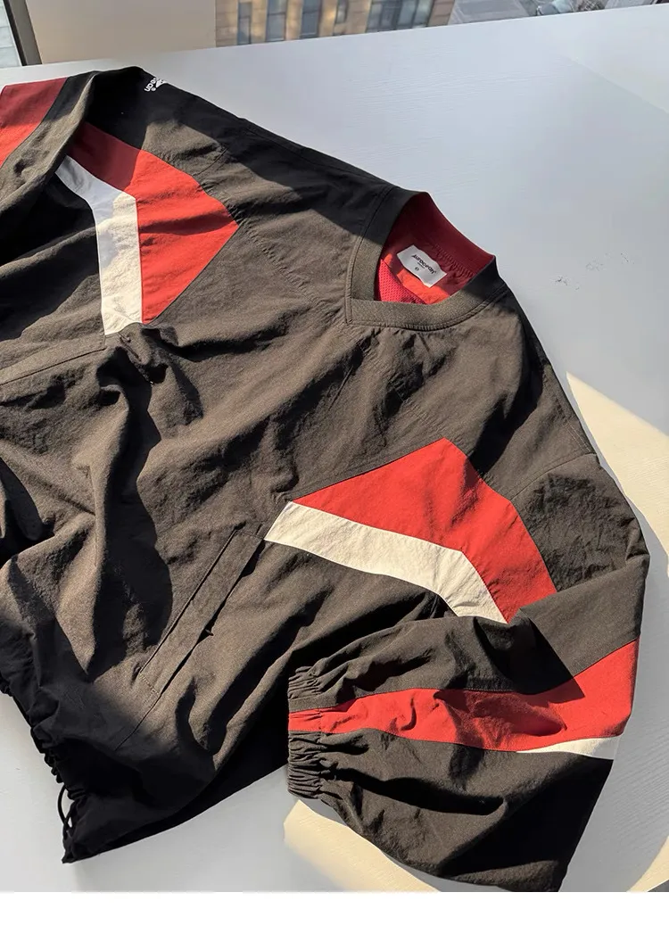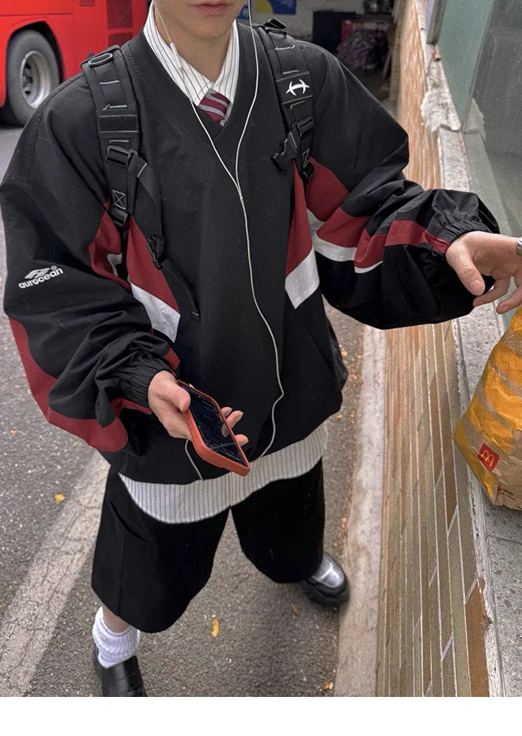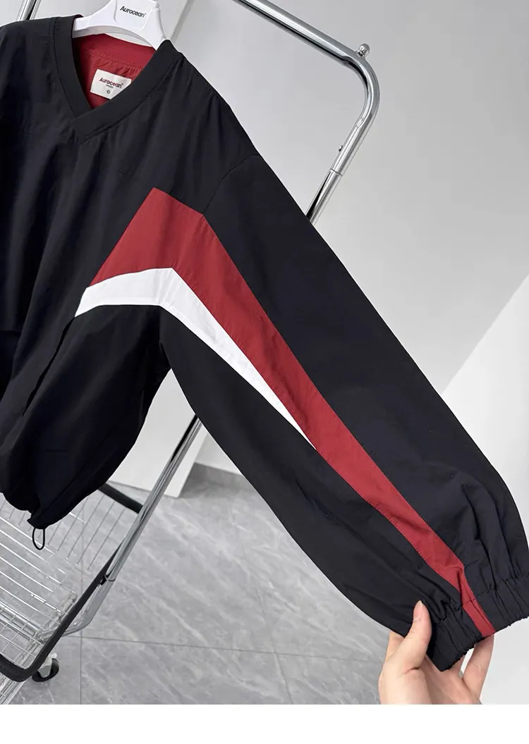 AUROCEAN 衝鋒少年 撞色拼接 尼龍 長袖(黑色)