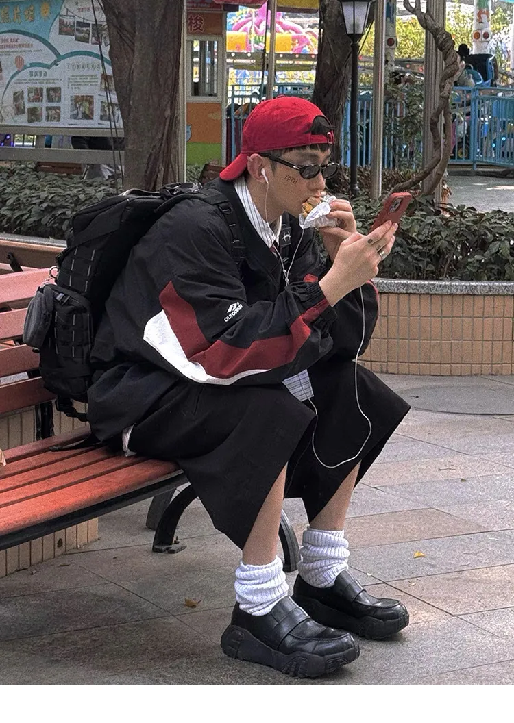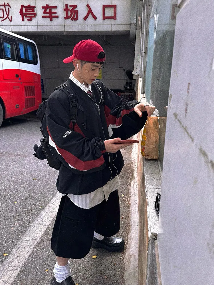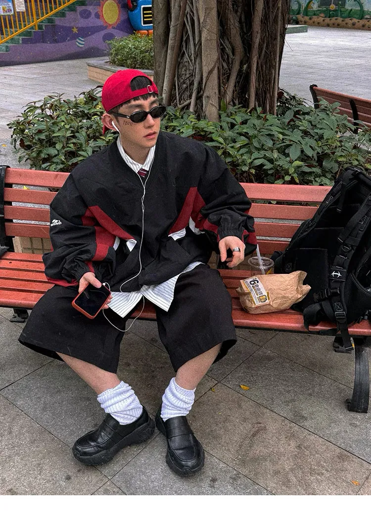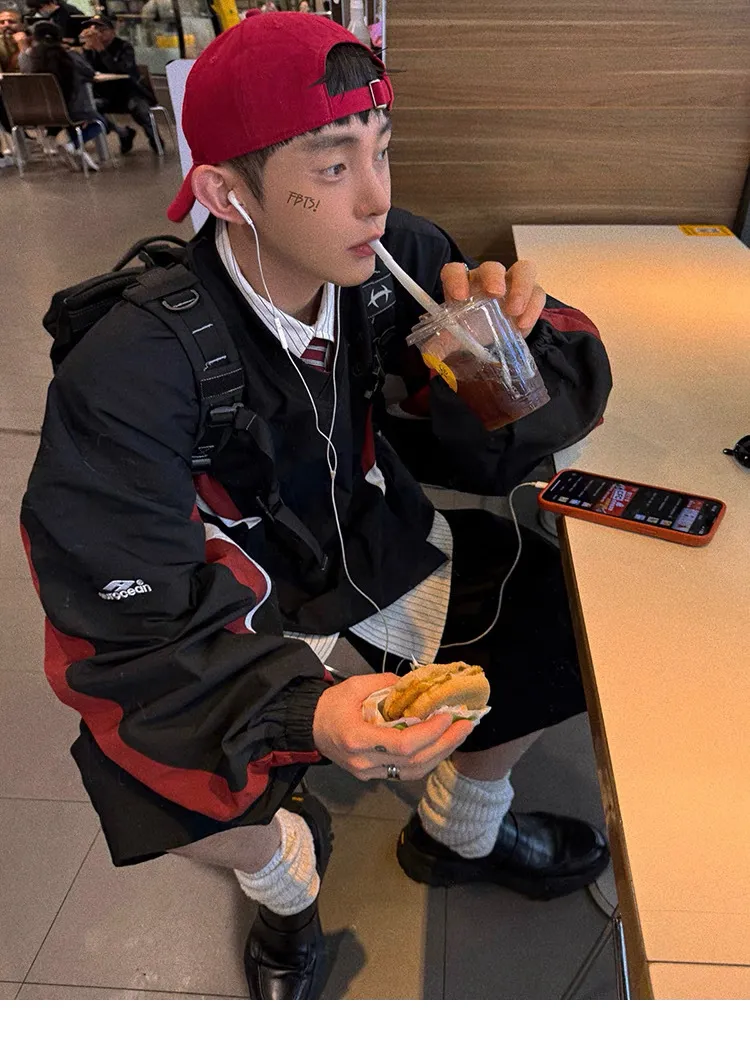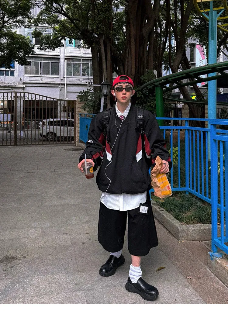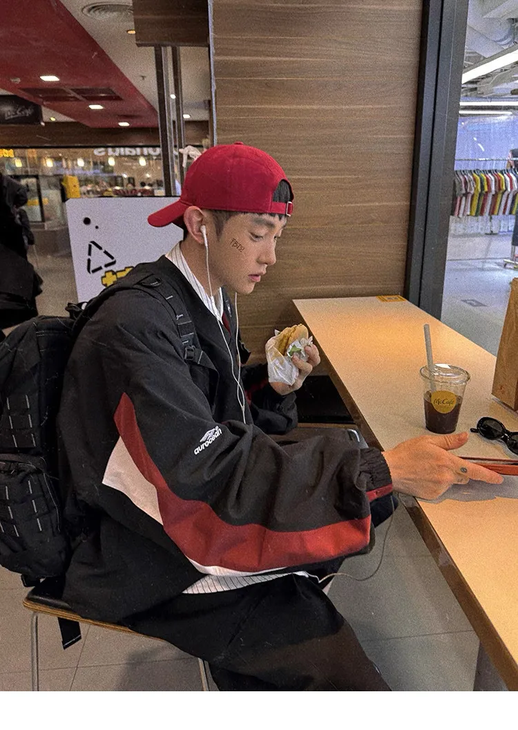 AUROCEAN 衝鋒少年 撞色拼接 尼龍 長袖(黑色)