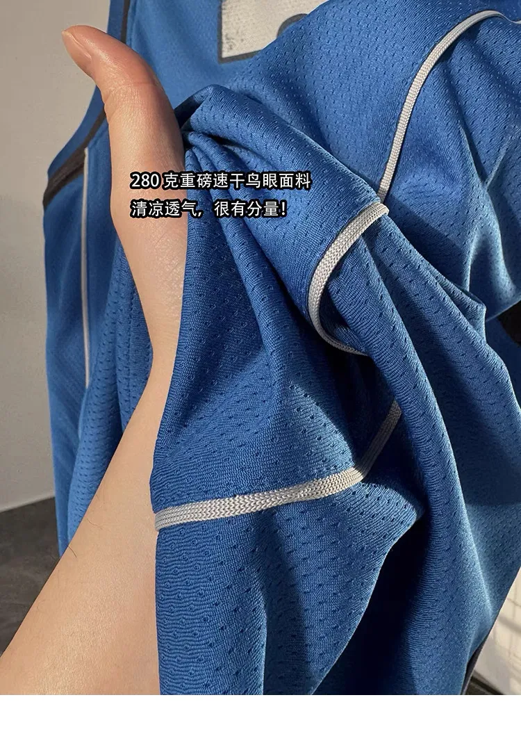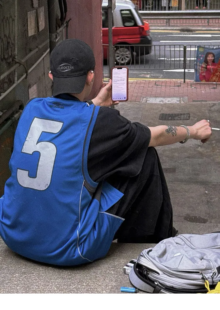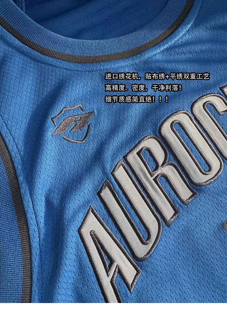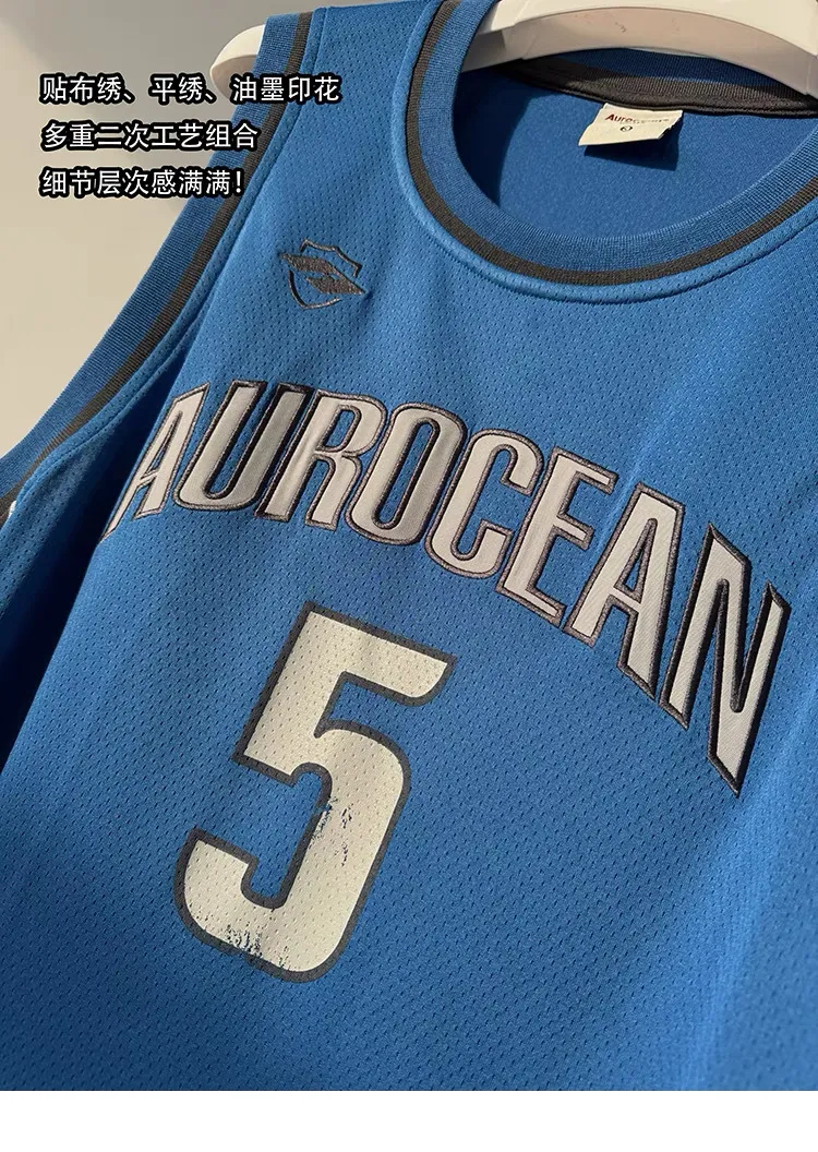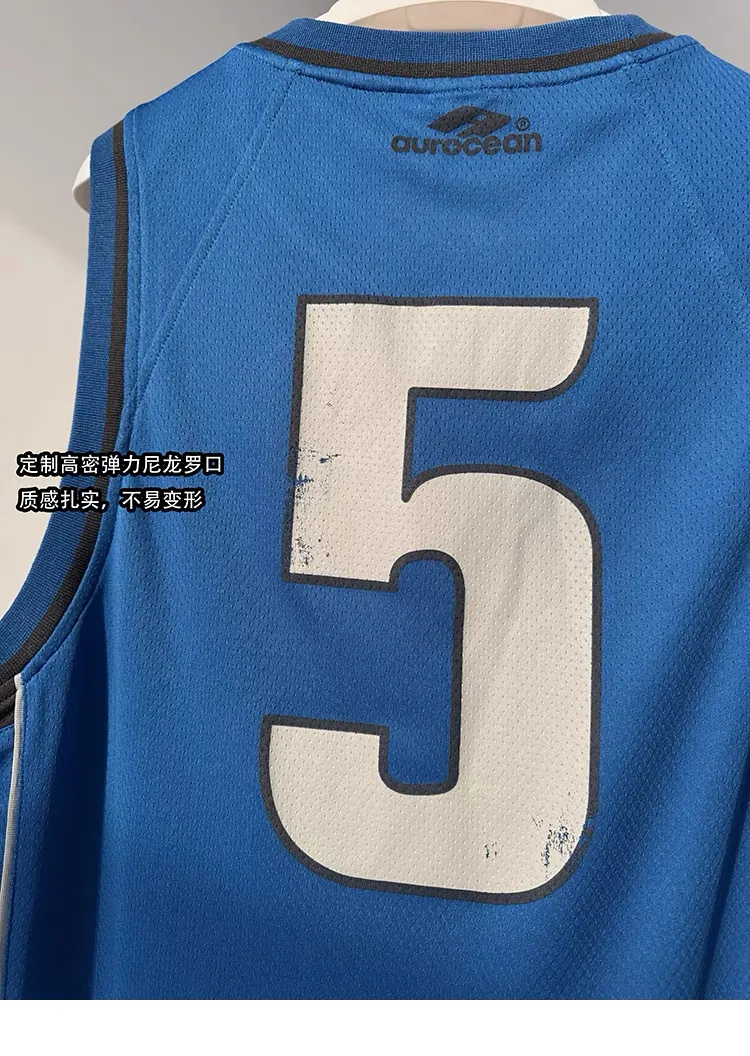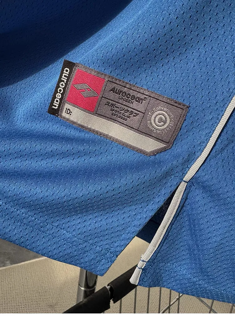 AUROCEAN 拼色復古 超大件 刺繡 球衣 背心(藍色)