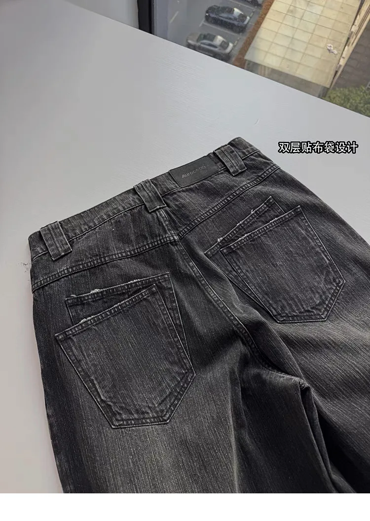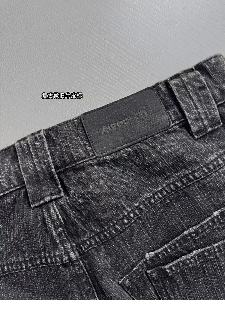 AUROCEAN 雙口袋 做舊破壞 廓形工裝 七分褲(銀灰色)