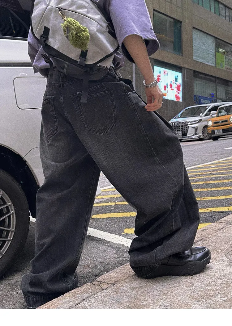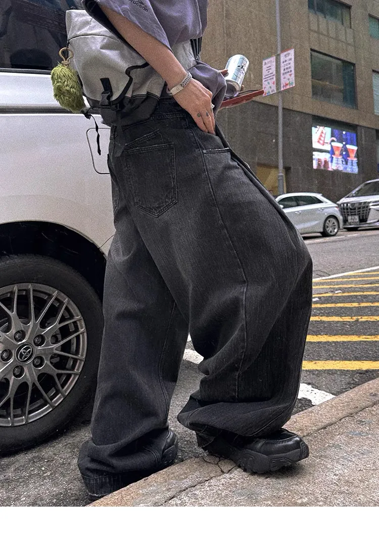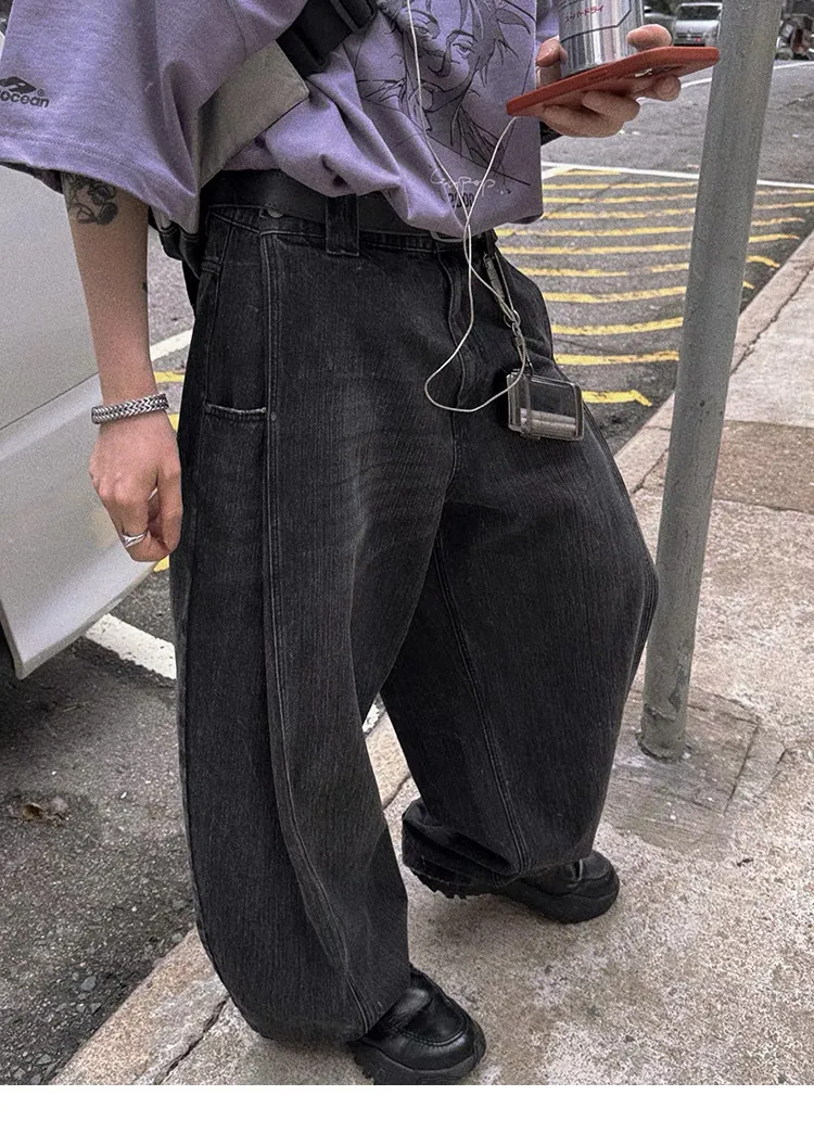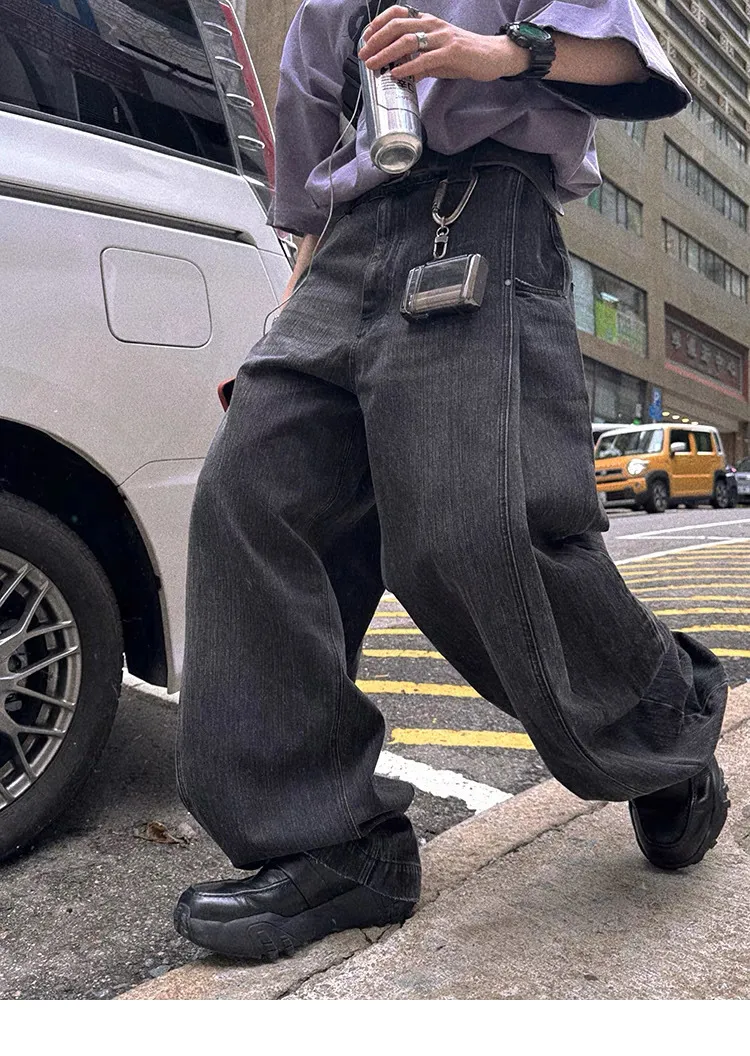 水洗漸層 潑漆 彎刀褲 牛仔褲(水洗灰色)