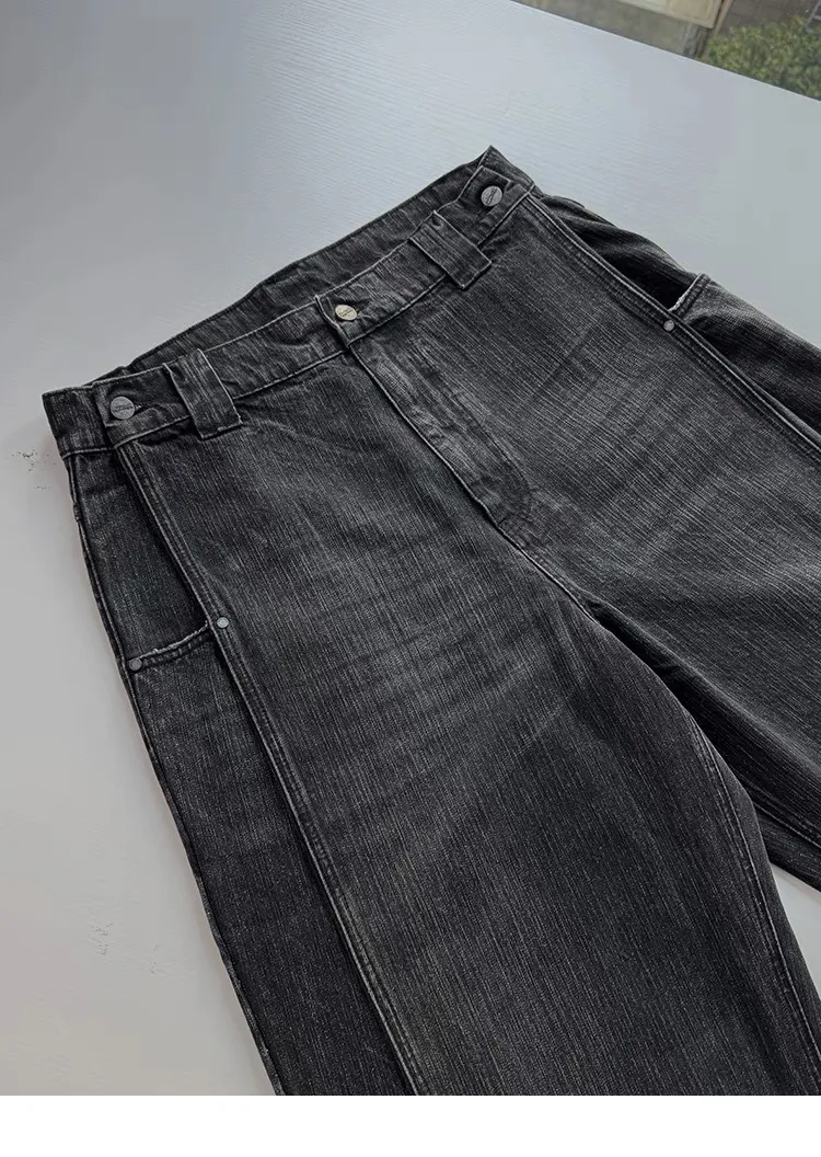 AUROCEAN 雙口袋 水洗做舊 寬大 七分褲(水洗黑色)
