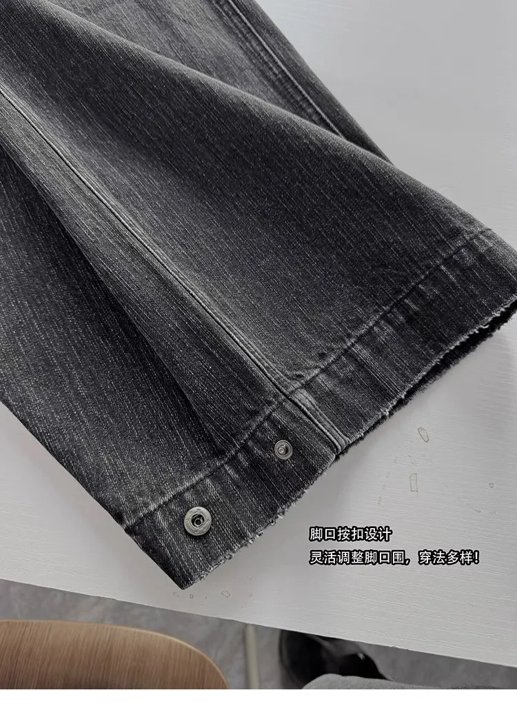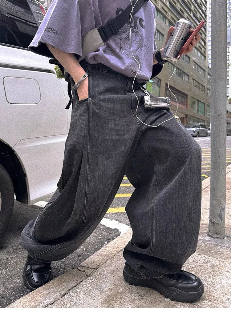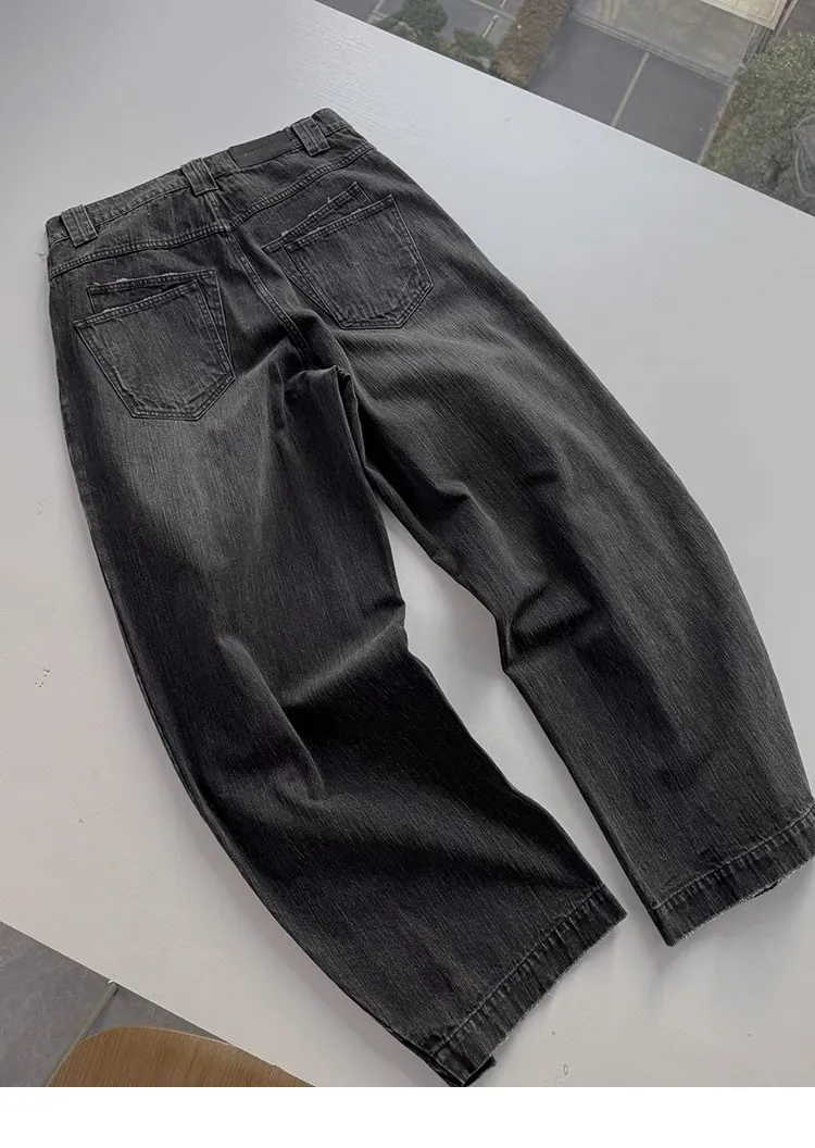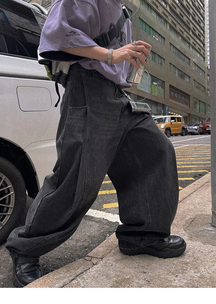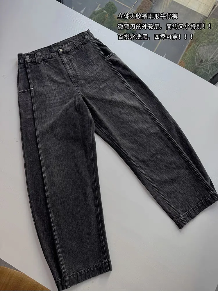AUROCEAN 收腰廓形 竹節紋 牛仔褲(黑色)